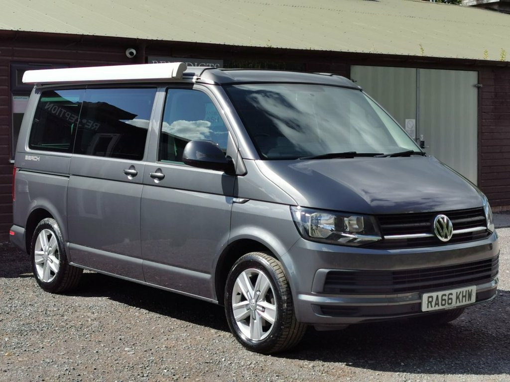 Presented in a sophisticated Indium Grey finish, this 2016 Volkswagen California Beach 2.0 TDI Automatic is the ultimate key to freedom and adventure. Having covered just 53,000 miles with only two previous owners, this well-loved and meticulously maintained camper van is ready to write its next chapter with you. Its excellent history includes five recorded services, with the most recent carried out in July 2025 at 52,175 miles by a Volkswagen Main Dealership, ensuring it is in fantastic mechanical order. Furthermore, it comes with the peace of mind of an MOT valid until September 2026 and is fully compliant with ULEZ and CAZ charges, making it practical for city use as well as countryside escapes. The sought-after Beach specification is packed with features designed for comfort and convenience. You will find alloy wheels, front and rear parking sensors, a practical awning, and the iconic pop-up roof that creates a comfortable sleeping area. Inside, the cabin is equipped with a touchscreen infotainment system complete with DAB radio, Bluetooth connectivity, and satellite navigation, while air conditioning ensures every journey is a pleasure. We can make driving this fantastic California away today easier than ever. We offer competitive finance packages with rates starting from 9.9% APR. Protect your investment with an RAC extended warranty; a 12-month policy is just £599, or opt for a 24-month policy for £899 which also includes 12 months of complimentary RAC b 12V Socket - Additional, 16in Alloy Wheels - Clayton, 16in Chassis with 16in Brake System, 230-V Supply with Charging Feature for V, Additional Exterior Dust Seals, Airbags for Driver and Front Passenger, Alarm - Anti-Theft System with Interior , Armrest - Drivers and Passenger, Auxiliary Coolant Heater, Awning Rail - Black with Tent Adapter, Battery - Uprated 420A - 75Ah, Bed Extension with Sleeping Mat, Bluetooth Hands Free Set, Body Coloured - Door Mirrors and Door Ha, Body Coloured Bumpers, Camping Table inc 2x Folding Chairs, Carpet Flooring in Cab, Central Locking - Remote Control with SA, Child Lock for Sliding Doors in Passenge, Chrome-Plated Strip on Air Intake of Cha, Climatic Cab