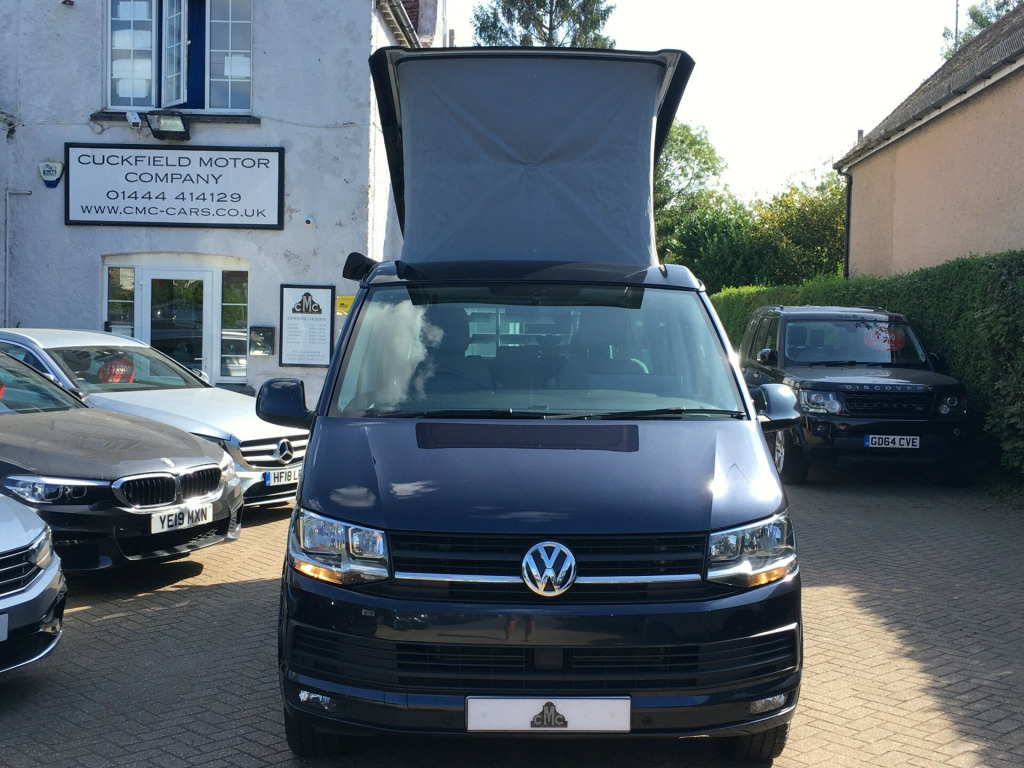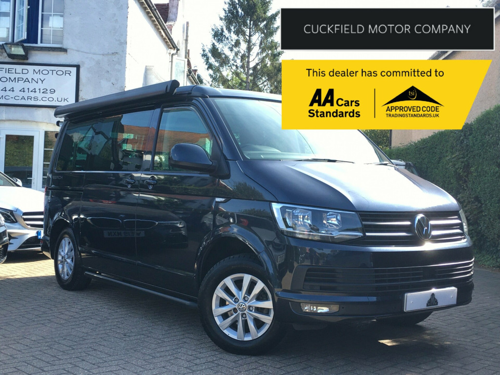 Cuckfield Motor Company are delighted to offer for sale this well presented 1 Owner. ULEZ Compliant VW California Beach. Finished in Dark Metallic Blue with Cloth Upholstery, this 5 seated vehicle has service history with recorded visits at 10681, 20082, 28815, 31989 and 71404 with its CAMBELT replaced in April 2022. Specification includes Front & Rear Sensors---Pop Up Roof---Bike Rack---Electric Hook Up---Rock n Roll Bed---2 Chairs---Table---Darkened Glass---Sat Nav---Park Pilot---Front & Rear Parking Sensors---Heated Front Seats---Bluetooth Phone & Audio---Rear Heating---Awning---Air Conditioning---16'' Alloy Wheels---Cruise Control--USB & AUX and much more.Every car we offer comes with a comprehensive provenance check certificate, Minimum 6 month warranty and new MOT and service where applicable. All part exchanges welcome.We offer extremely competitive finance packages to help you fund your new car.Cuckfield Motor Company Ltd is a family run business FCA approved dealer established for over 20 years, With 30 years experience in the motor trade.We are located in the village of Cuckfield just off the A23, 15 minutes from Gatwick airport and only 5 minutes from Haywards Heath train station.Please contact us via phone/email to view this car today. email us on: salescmc-cars.co.uk01444 414129, v and 230v uk socket, bluetooth hands free set, 16in alloy wheels - clayton, awning rail - black with tent adapter, electric windows - front, fixed side windows to near-side rear and off-side front and rear, heat insulating glass with green tint in cab and living area, pop-up aluminium roof - manually operated in body colour, sliding window in front and fixed window in rear in load-passenger compartment on passenger side, climatic cab a-c - semi-automatic with manual controlled passenger compartment heating, electric hook-up on near-side rear, folding chairs stowed in tailgate x2, folding table stowed in sliding door, fresh air intake system with activated charcoal canister, leather steering wheel - gearknob and gaiter, lower bed with sleeping mat, manual side sliding door - drivers side, seats - without height adjustment for driver and single passenger seats, swivel seat on drivers side with lumbar support - not height adjustable, swivel seat on passenger side with lumbar support - not height adjustable, two-person upper bed, daytime running lights, 1 owner, bike rack, dab radio