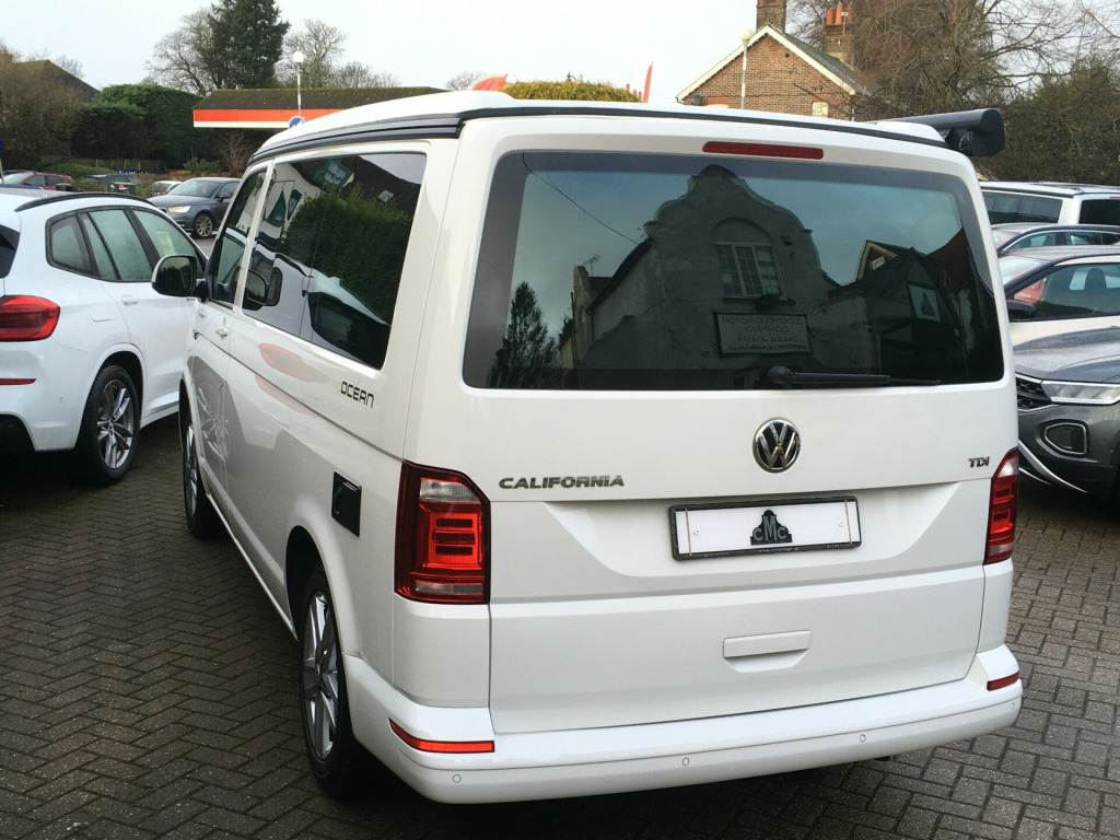 Cuckfield motor Company are pleased to offer for sale this stunning and near immaculate VW California Ocean. This camper is in excellent condition inside and out and has a great service record being done in 2019 24k,20 31k,21 34k,23 45k and 24 48k. This camper comes with everything you need for great get aways including Fridge---2 Hob gas cooker---Sink ans water butt---Electric hookup---Electric roof incorporating a double bed---Rear bench seats that converts into a double bed---Built in diesel heater---Wardrobe---Deckchairs in tailgate---Free standing table in sliding door---Rotating front seats for 4 seats around internal table---Privacy blinds on all windows---rear air conditioning controls---Front and rear parking sensors---Heated front seats---Electric folding mirrors---Bluetooth telephone and audio steaming---DAB radio---USB connection---Full set of California seat covers---Wind out awning---17'' alloy wheels and much more.Every car we offer comes with a comprehensive provenance check certificate, Minimum 6 month warranty and new MOT and service where applicable. All part exchanges welcome.We offer extremely competitive finance packages to help you fund your new car.Cuckfield Motor Company Ltd is a family run business FCA approved dealer established for over 20 years, With 30 years experience in the motor trade.We are located in the village of Cuckfield just off the A23, 15 minutes from Gatwick airport and only 5 minutes from Haywards Heath train station.Please contact us via phone/email to view this car today. email us on: salescmc-cars.co.uk01444 414129, v and 230v uk socket, 2 remote folding keys, 1 owner, 17'' alloy wheels, 4 birth, bluetooth phone & audio, cruise control, dab radio, electric folding mirrors, electric hookup, fridge, front & rear parking sensors, front electric windows, full service history, sink, usb, gas cooker, water butt, electric pop up roof, separate deck chairs and table, internal table, rear a/c controls, diesel heater, wardrobe, wind out awning, rotating chairs