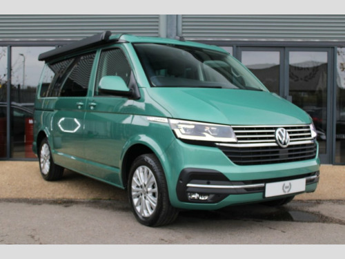 One Owner From New. Very Low Mileage With A Full VW Service Including Having Just Been Served With Our Local VW Dealership. Fantastic Specification Which Includes, Bay Leaf Green, Upgrades - Cupboards in Graphite Grey - Slate Effect with Outdoor Shower Connection, Standard Features - 1 Waste Bin in Door Storage Compartment in Cab, 17in Alloy Wheels - 7J Aracaju - Silver, 17in Brake System Front - 16in in Rear, 230V External Inlet with Charging Feature for Vehicle Batteries and Internal 230V Outlet on the Side of the Kitchen Unit, 230V Inverter with Socket on Drivers Seat, ABS - Anti-Lock Braking System, ASR - Anti Slip Regulation, Adaptive Cruise Control ACC including Front Assist and City Emergency Braking, Air Conditioning - 3-Zone Climatronic with 2nd Evaporator-Auxiliary Heater-Air Conditioned Headliner and Additional Passenger Control, Allergen Filter, Anti-Theft Alarm System with Interior Monitoring in Cab - Backup Horn and Tow-Away Protection, Armrest for Both Cab Seats, Auto-Dimming Breakaway Interior Rearview Mirror, Automatic Headlight Activation with Separate LED Daytime Running Light with Manual Coming Home - Automatic Leaving Function, Automatic Headlight Range Control, Awning - Housing and Rail in Black, Bed Extension for Rear Bench Seat, Body-Coloured Door Mirrors - Handles - Front and Rear Bumper, California Badge on the Front Wing and on the Rear, Camper Control Unit, Camping Table for Inside-Outside - in Sliding Door - and 2 Folding Chairs in Tailgate, Centr Cupboards in Graphite Grey - Slate Effec, Swivel Seats for Driver and Front Passen, Tailgate with Window and Power Latching, Three-Point Seatbelts for all Seats - He, Tool Kit and Jack, Two 12V Outlets - Dashboard, Two Additional AGM Leisure Batteries, Two-Seater Bench - Bed, Tyre Pressure Loss Indicator, Tyres 215-65 R17 C 109-107T with Optimis, Velour Floor Mats, Waeco Compressor Cool Box with Removable, Wardrobe in Rear with Hanging Rail and M, Washer Fluid Level Indicator, Waste Water Storage Tank, We Connect Plus, Windshield Wipers with Rain Sensor for W, Wired and Wireless App Connect, eCall Emergency System
