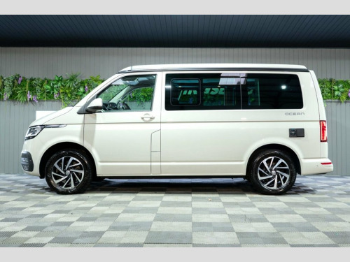 ***VAT QUALIFYING*** Huge Specification 2023 plate Volkswagen California Ocean SWB 150bhp DSG automatic - 1 Owner from New - *****Balance of Volkswagen Warranty until June 2026 ***** Optional Specification: £Towbar - Removable and Lockable with Trailer Stabilisation - £834.00 £Bed Extension with Comfort Sleeping Mat - £354.00 £Trailer Assist - £624.00 £Storage Compartment Package - Net in Roof Bed Access Opening - 2nd Drawer in Bench Seat instead of Load-Through Hatch - £234.00 Standard Features: The Ocean trim includes 17-inch alloy wheels, an electric pop-up roof, three-zone climate control, and a well-equipped kitchenette with a two-burner hob, fridge, and table. Interior: The interior features a spacious layout with comfortable seating, a bed, and various storage compartments. It also includes blackout blinds and an enhanced blackout system for comfortable sleep. Key features Interior: Electro-hydraulic elevating pop-up roof for expanded living and sleeping space. Kitchenette with a gas stove, sink, and 42-liter compressor fridge. Dining table, which can be stored away. Rotating front seats. Ambient interior lighting. Climatronic 3-zone air conditioning. Heated front seats. Two additional leisure batteries for powering interior amenities. Digital Cockpit with a 10.25 inch display. Discover Media DAB+ navigation system with Streaming & Internet. Integrated window blinds and magnetic curtains for privacy. Exterio Towbar - Removable and Lockable with Tra, Bed Extension with Comfort Sleeping Mat, Trailer Assist, Storage Compartment Package - Net in Roo
