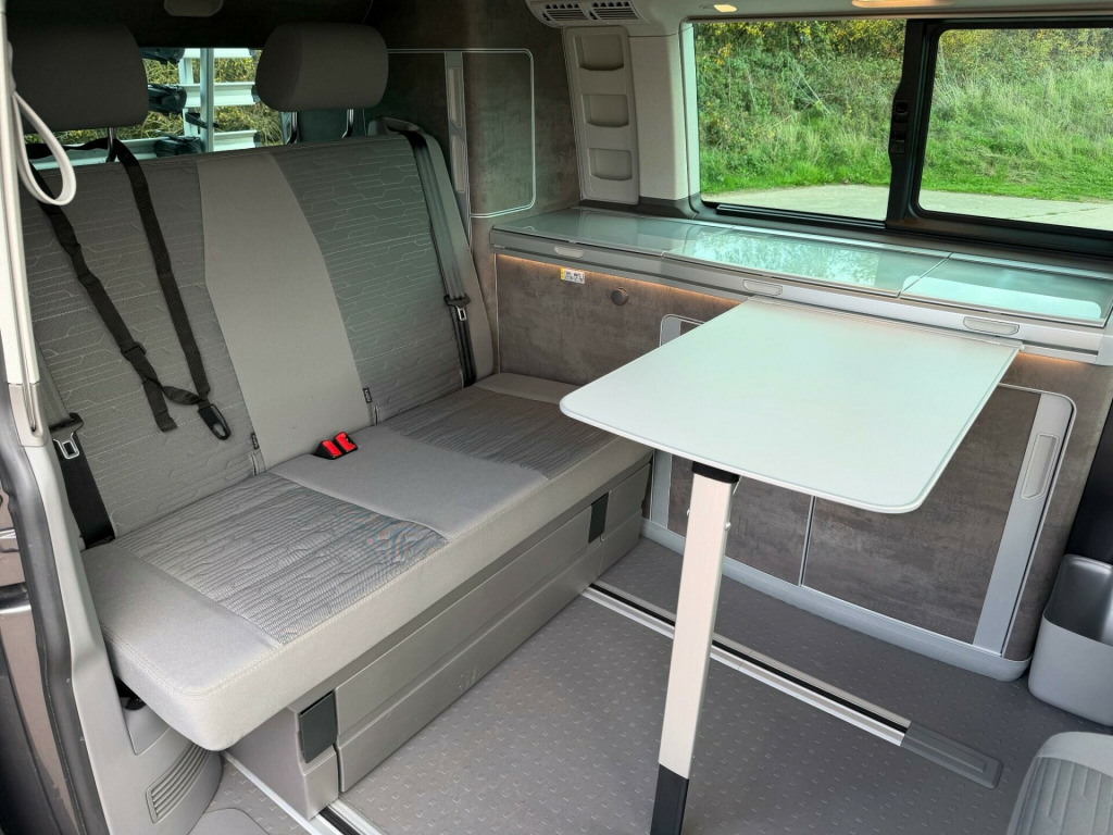 We are proud to offer this exceptional High Spec Well Serviced 150 BHP Euro 6 Ulez Compliant VW California Ocean T6.1 DSG Automatic, Digital Dash, Awaited Full Valet, Pics taken to go on with, FVWSH, with Extended Warranty to 21/07/2026, Later Digital Dash Board, and Digital Control Roof Panel, VW 4 Bike Rack with 4 keys, Shower, Kitchen, 4 Seater with 4 Belts, FVWSH See Below, 2 Keys plus Heater Remote, Extended Bed with Comfort Mattress, Rotating Front Heated seats, Sat Nav and Media, Wireless Apple / Android Play, HD Reverse Camera, With front and Rear Parking Sensors, Blind Spot Alert System, Radar Cruise Control, Camper with GAS Hob and Sink with Clean Water plus waste storage, Electric Pop Up Roof with Zip Out windows plus a Fully Zip out Front, Mattress on Individual Sprung Base, Climate / Air Con, including rear Digital Air Conditioning, Blow Air Diesel Heater with Remote, illuminated Cupboards, Fridge with Basket, Sink with Bowl, Cupboards with Soft Close Cutlery draw, Wardrobe, Additional Storage, Wind Out Awning, Pull out Table plus Additional Freestanding Table and Chairs, Electric Folding Heated Mirrors, Pull Down Blackout Blinds, 18'' Black Alloy Wheels, Soft Close Side Door and Rear Tailgate. Switchable Tailgate Lights, Stunning Vehicle open to any inspection, Full Book Pack with both Remote Keys, Water Keys, plus Night Heater Remote, Immaculate Condition finished in Indium Grey Metallic, Serviced By VW at 14967m 07/2024, Then Fully Serviced by ourselves using Genuine VW Parts from TPS at 24000m 10/2025, Please See Over 80 pictures plus a detailed walk around video on my website www.sportsandprestigeoflichfield.co.uk Other campers available, Part Exchange / Finance Welcome.. 1 Waste Bin in Door Storage Compartment in Cab, 17in Alloy Wheels - 7J Aracaju - Silver, 17in Brake System Front - 16in in Rear, 230V External Inlet with Charging Feature for Vehicle Batteries and Internal 230V Outlet on the Side of the Kitchen Unit, 230V Inverter with Socket on Drivers Seat, ABS - Anti-Lock Braking System, ASR - Anti Slip Regulation, Adaptive Cruise Control ACC including Front Assist and City Emergency Braking, Air Conditioning - 3-Zone Climatronic with 2nd Evaporator-Auxiliary Heater-Air Conditioned Headliner and Additional Passenger Control, Allergen Filter, Anti-Theft Alarm System with Interior Monitoring in Cab - Backup Horn and Tow-Away Protection, Armrest for Both Cab Seats, Auto-Dimming Breakaway Interior Rearview Mirror, Automatic Headlight Activation with Separate LED Daytime Running Light with Manual Coming Home - Automatic Leaving Function, Automatic Headlight Range Control, Awning - Housing and Rail in Black, Bed Extension for Rear Bench Seat, Body-Coloured Door Mirrors - Handles - Front and Rear Bumper, California Badge on the Front Wing and on the Rear, Camper Control Unit, Camping Table for Inside-Outside - in Sliding Door - and 2 Folding Chairs in Tailgate, Central Locking System with Two Remote Control Keys, Comfort Dashboard with Chrome Elements and Bezels Finished in Black, Crosswind Assist, Cupboards in Graphite Grey, Decorative Inserts - Pewter Wave Grey, Digital Cockpit and Driver Alert System, Door Mirrors - Electrically Adjustable and Heated and Folding, Drivers and Front Passengers Airbags with Front Passenger Airbag Deactivation Switch, EDL - Electronic Differential Lock, ESP - Electronic Stability Programme, Electric Childproof Lock, Electric Windows - Front, Electro-Hydraulic Elevating Roof, First Aid Kit and Warning Triangle, Front Fog Lights with Cornering Lights, Gas Hob with Two Burners, Gas Storage Compartment - Takes 2.8kg Gas Cylinder and Includes Gas Pressure Regulator with Shut-Off Valve, Glovebox - Illuminated, Grab Handles on A-Pillars - on Driver and Front Passenger Side, Headlights - LED with Separate LED Daytime Running Lights, Heated Driver and Front Passenger Seats, Heated Windscreen Washer Nozzles - Front, Hill Start Assist, ISOFIX Child Seat Preparation - Outer Rear, Illuminated Dash Instruments - Dimmable, Illuminated Sun Visors with Airbag Label on Front Passenger Sun Visor, Interior Ambient Lighting, Interior LED Lighting, Interior Lighting Concept for Camper - Comfort in Passenger Compartment, Interior Lighting System Camper with Lighting in Pop-up Roof - Tailgate and in Kitchen Cupboards, Locking Wheel Bolts, Loft Bed with Comfortable Sprung Base Mattress and Child Safety Net, Lumbar Support for Drivers and Front Passenger Seat - Manually Adjustable, Mounting Rails on the Roof - Preparation for Movable Roof Rack, Multi-Function Display Premium with Colour Display, Navigation System Discover Media including Streaming and Internet, Parking Sensors - Front and Rear with Park Assist, Plastic Floor Covering, Power Assisted Steering, Privacy Glass with Heat Insulation, Programmable Air Parking Heater with Radio Remote Control and Auxiliary Heater, Radiator Grille Painted Black with 5 Chrome Trims - Additional Chrome Trim at Lower Radiator Grille, Radio Composition Colour with 6.5in Touchscreen, Rear View Camera, Rear Window - Insulating Glass with Rear Window Wiper and Washer System - Not Heated, Red LED Tail Light, Right Side Sliding Door - Power Latching, Seatbelt Warning Light For Driver, Side Assist, Side Step Illumination with California Lettering, Side and Curtain Airbags for Driver and Front Passenger, Single Tone Horn, Sliding Door in Passenger - Compartment - Right, Sliding Window Above Kitchenette and Fixed Window in Rear Passenger Compartment - Left, Sliding Window in Front with Fly Screen and Fixed Window in Rear in Load-Passenger Compartment - Left, Sliding Window in Front with Fly Screen and Fixed Window in Rear in Load-Passenger Compartment - Right,. Full dealership history