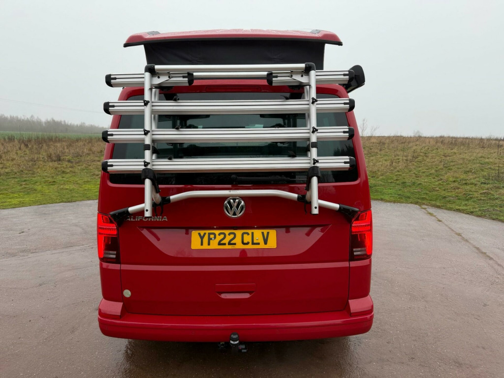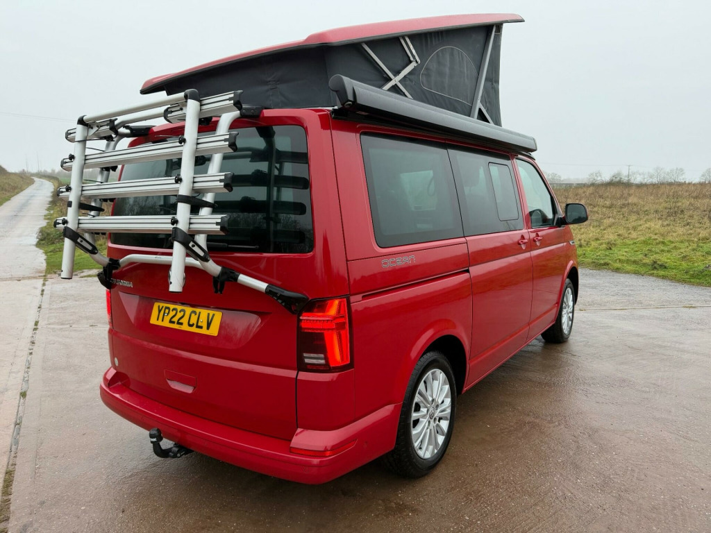 We are proud to offer this exceptional High Spec Well Serviced Euro 6 Ulez Compliant VW California Ocean T6.1 DSG Automatic, 1 Former Keeper, Digital Dash, FVWSH x 3, Grey / Blue Bellows with Full Zip out Front, Later Digital Dash Board, and Digital Control Roof Panel, Kitchen, 4 Seater with 4 Belts, Only 28K Miles with FSH 3 x Services See Below, Detachable Tow Bar, 300W Inverter, 2xRemote Keys plus Heater Remote, Extended Bed, Rotating Front Heated seats, Lg Screen Sat Nav and Media, Wireless Apple / Android Play, HD Reverse Camera, With front and Rear Parking Sensors, Blind Spot Alert System, Radar Cruise Control, Camper with Twin GAS Hob and Sink with Clean Water plus waste storage, Electric Pop Up Roof with Zip Out windows, Mattress on Individual Sprung Base, Detachable Tow bar with Keys, Climate / Air Con, including rear Digital Air Conditioning, Blow Air Diesel Heater with Remote, Fridge with Basket, Sink with Bowl, Illuminated Cupboards with Soft Close Cutlery draw, Wardrobe, Additional Storage, Wind Out Awning, Pull out Table plus Additional Freestanding Table and Chairs, Electric Folding Heated Mirrors, Pull Down Blackout Blinds, 17'' Alloy Wheels, Soft Close Side Door and Rear Tailgate. Switchable Tailgate Lights, Stunning Vehicle open to any inspection, Full Book Pack with both Remote Keys, Water Keys, plus Night Heater Remote, Immaculate Condition finished in RED, Serviced as Follows:- VW 11124m 11/2022, VW 22460m 06/2025 Then Serviced by ourselves using Genuine VW Parts at 28000M 12/2025, with Receipts, Please See 100 pictures plus a detailed walk around video on my website www.sportsandprestigeoflichfield.co.uk Other campers available, Part Exchange / Finance Welcome.. 1 Waste Bin in Door Storage Compartment in Cab, 16in Chassis with 16in Brake System, 17in Alloy Wheels - 7J Aracaju - Silver, 17in Chassis with 17in Disc Brakes in Front and 16in Disc Brakes in Rear, 230V External Inlet with Charging Feature for Vehicle Batteries and Internal 230V Outlet on the Side of the Kitchen Unit, 230V Inverter with Socket on Drivers Seat, ABS - Anti-Lock Braking System, ASR - Anti Slip Regulation, Adaptive Cruise Control ACC including Front Assist and City Emergency Braking, Air Conditioning - 3-Zone Climatronic with 2nd Evaporator-Auxiliary Heater-Air Conditioned Headliner and Additional Passenger Control, Airbags - Driver, Airbags - Front Passenger, Allergen Filter, Anti-Theft Alarm System with Interior Monitoring in Cab - Backup Horn and Tow-Away Protection, Armrest for Both Cab Seats, Auto-Dimming Breakaway Interior Rearview Mirror, Automatic Headlight Activation with Daytime Running Lights - Leaving Home - Manual Coming Home Function, Automatic Headlight Range Control, Awning - Housing and Rail in Black, Bed Extension for Rear Bench Seat, Body-Coloured Door Mirrors - Handles - Front and Rear Bumper, California Badge on the Front Wing and on the Rear, Camper Control Unit, Camping Table for Inside-Outside - in Sliding Door - and 2 Folding Chairs in Tailgate, Central Locking System with Two Remote Control Keys, Comfort Dashboard with Chrome Elements and Bezels Finished in Black, Crosswind Assist, Cupboards in Graphite Grey, DAB+ - Digital Radio Reception, Decorative Inserts - Pewter Wave Grey, Digital Cockpit and Driver Alert System, EDL - Electronic Differential Lock, ESP - Electronic Stability Programme, Electric Childproof Lock, Electric Windows - Front, Electro-Hydraulic Elevating Roof, First Aid Kit and Warning Triangle, Front Fog Lights with Cornering Lights, Front Windshield Wipers with Intermittent Operation and Rain Sensor, Gas Storage Compartment - Takes 2.8kg Gas Cylinder and Includes Gas Pressure Regulator with Shut-Off Valve, Gas Stove with Two Burners and Pressure Test Point, Glovebox - Illuminated, Grab Handles on A-Pillars - on Driver and Front Passenger Side, Headlights - LED with Separate LED Daytime Running Lights, Heated Driver and Front Passenger Seats, Heated Windscreen Washer Nozzles - Front, Hill Start Assist, ISOFIX Child Seat Preparation - Outer Rear, Illuminated Instruments - Dimmable, Illuminated Sun Visors with Airbag Label on Front Passenger Sun Visor, Interior LED Lighting, Interior Lighting Concept for Camper - Comfort in Passenger Compartment, Interior Lighting System Camper with Lighting in Pop-up Roof - Tailgate and in Kitchen Cupboards, Locking Wheel Bolts, Loft Bed with Comfortable Sprung Base Mattress and Child Safety Net, Lumbar Support for Drivers and Front Passenger Seat - Manually Adjustable, Mounting Rails on the Roof - Preparation for Movable Roof Rack, Multi-Function Display Premium with Colour Display, Navigation System Discover Media including Streaming and Internet, Parking Sensors - Front and Rear with Park Assist, Plastic Floor Covering, Power Assisted Steering, Privacy Glass with Heat Insulation, Programmable Parking Heater - Air with Radio Remote Control and Auxiliary Heater - Coolant, Radiator Grille Painted Black with 5 Chrome Trims - Additional Chrome Trim at Lower Radiator Grille, Radio Composition Colour with 6.5in Touchscreen, Rear View Camera, Rear Window - Insulating Glass with Rear Window Wiper and Washer System - Not Heated, Red LED Tail Light, Remote Electrically Heated - Adjustable and Foldable Door Mirrors, Right Side Sliding Door - Power Latching, Seatbelt Warning Light For Driver, Side Assist, Side Step Illumination with California Lettering, Side and Curtain Airbags for Driver and Front Passenger, Single Tone Horn, Sliding Door in Passenger - Compartment - Right, Sliding Window Above Kitchenette and Fixed Window in Rear Passenger Compartment - Left, Sliding Window in Front with Fly Screen and Fixed Window in Rear in Load-Passenger Com. Full dealership history