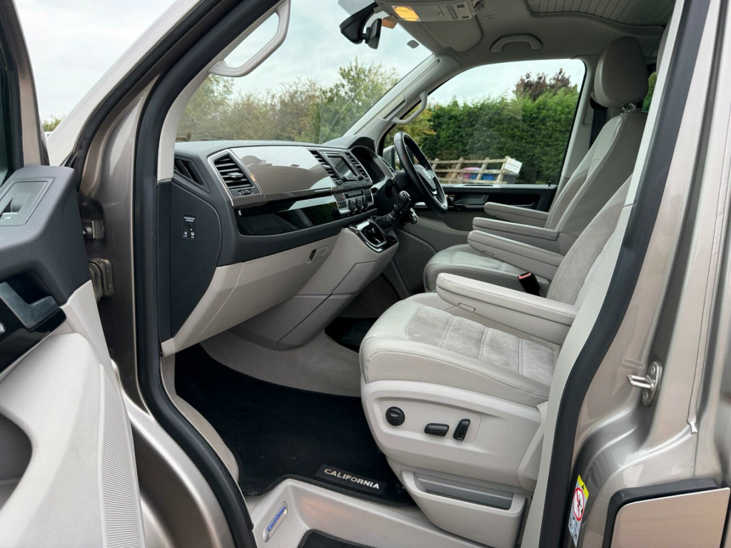 This 2018 Volkswagen California TSI Ocean presents an exceptional opportunity with its remarkably low mileage of just 17,931 miles, a significant advantage for a vehicle of its age. This Euro 6 compliant model boasts a 2.0 litre petrol engine and benefits from a full dealership service history, with its last service completed on 21 October 2025 at 17,900 miles. A clear vehicle history check confirms its pristine background. Notable features include front and rear parking sensors with parking assistance, a handy magnetic flashlight, and a striking Glacier Blue pop up roof. Inside, you'll find a 6.33 inch Composition Media radio with a touch screen, complemented by the Dynaudio Digital Sound Pack for an enhanced audio experience.The exceptional provenance of this California TSI Ocean, particularly its very low mileage and comprehensive service record, sets it apart from other vehicles on the market. The inclusion of advanced parking assistance systems, a premium Dynaudio sound system, and the distinctive pop up roof in Glacier Blue further elevate its appeal. This Volkswagen California is designed to offer both practicality and enjoyment, making it a truly special proposition for its next owner.. 12v and 230v UK Socket, 2 Remote Folding Keys, 230-V Supply with Charging Feature for Vehicle Batteries, 3-point Seatbelts on all Seats, ABS - Anti-Lock Braking System, Additional Exterior Dust Seals, Airbags - Driver and Front Passenger Side and Front Curtain with Seatbelt Tensioners and Passenger Deactivation, Alternator - 180A, Anti-Theft Alarm System with Interior Monitoring in Cab - Backup Horn and Tow-Away Protection, Anti-glare Adjustable Rear-view Mirror, Armrest - Driver and Single Passenger Seat, Awning Rail - Black with Tent Adapter, BAS - Brake Assist System, Bluetooth Hands Free Set, Body Coloured - Door Mirrors and Door Handles, Body Coloured Bumpers Front and Rear, Central Electronic Control System, Child Lock for Sliding Doors in Passenger Compartment, Chrome-Plated Strip on Air Intake of Charge Air Cooler, Climatronic 3-Zone A-C with 2nd Evaporator - Auxiliary Heater - Air Conditioned Headliner and Additional Passenger Control, Comfort Dashboard Package, Composition Colour DAB Plus Radio, Cool-Warm Box - 42 Litre Capacity with Removable Basket, Cupboard with Dark Wood Trim-Without Outdoor Shower Connection, Dashboard - Dimmable Illumination, Daytime Running Lights, Decorative Insert Dark Brushed Silver Decorative Strip in Anthracite Metallic, Decorative Inserts on Dashboard, Digital Clock, Dipping Breakaway Interior Rear View Mirror, Door Stowage - Two Compartments with Bottle Holder able to Accommodate 1.5 Litre Drinks Bottles, Double-Glazed Fixed Side Windows to Near-Side and Off-Side Rear, Driver Alert System, Driver Exterior Door Mirror - Aspherical, Drop-Down Rear Compartment - Features Textured Dark Wood-Effect Trim and Incorporates Rear Speakers, Dust and Pollen Filter, EBD - Electronic Brakeforce Distribution, ESP - Electronic Stability Programme, Electric Hook-up on Near-side Rear, Electric Windows - Front, Electronic Differential Lock - EDL, Fabric Window Blinds - Black Out - in Cab and Passenger Compartment, First Aid Kit and Warning Triangle, Fixed Side Windows to Near-Side Rear and Off-Side Front and Rear, Flexible Halogen Spotlight - Multi-Directional Stem - Targets Light Into the Living Area or Pop-Up Roof, Flexible Worktop with Drop-Down Leg, Floor-Mounted Sliding Rail System, Folding Chairs Stowed in Tailgate x2, Folding Table Stowed in Sliding Door, Fresh Water Storage Tank - 30 Litre with Lockable External Filler Cap on Near-Side Rear and Electric Pump, Front Assist including City Emergency Braking without Adaptive Cruise Control, Front Fog Lights with Cornering Lights, Galvanised Body - Steel, Gas Storage Compartment - Takes 2.8kg Gas Cylinder and Includes Gas Pressure Regulator with Shut-Off Valve, Gas Stove with Two Burners and Pressure Test Point, Glovebox - Lockable, Grab Handles on A-Pillars, Grille - High-Gloss Black with Chrome Mouldings, Headlight Range Adjustment, Headlights - Halogen Twin - Range Adjustable, Headlining - Moulded and Trimmed In Fabric, Heat Insulating Glass with Green Tint in Cab and Living Area, Heated Driver and Front Passenger Seats, Height-Adjustable Head Restraints on All Seats, Hill Hold Assist, ISOFIX and Top Tether Child Anchorage for Caravelle-California in 2nd to 3rd Rows, ISOFIX and Top Tether Child Seat Anchorage - 2nd to 4th Rows, Interior Light, Interior Light Concept for Camper Comfort in Passenger Compartment, Intermittent Windscreen Wiper Control, Kitchen Unit, Leather Multi-Function Steering Wheel and Gear Knob with Radio and Telephone Controls, Lighting Above Side Sliding Door and Kitchen Unit, Lights and Vision Package, Locking Wheel Bolts, Lower Bed with Sleeping Mat, Luggage Compartment - Under Lower Bed Extension, Lumbar Support for Driver and Single Passenger Seats - Manual, Luxury Cut Pile Floor Mats, Manual Side Sliding Door - Drivers Side, Multi-Function Display Plus, Passenger Exterior Door Mirror - Convex, Plastic Entrance Step Protection, Plastic Side Mouldings, Plastic Tailgate Sill Protection., Pop-Up Aluminium Roof - Electric Activa. Full dealership history