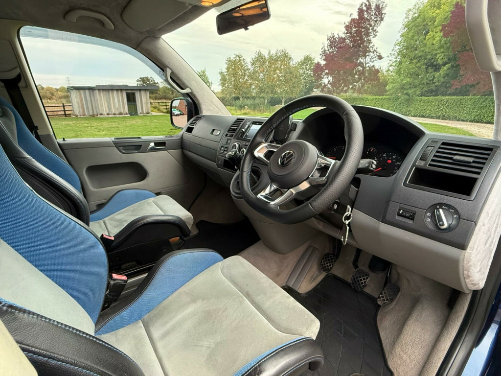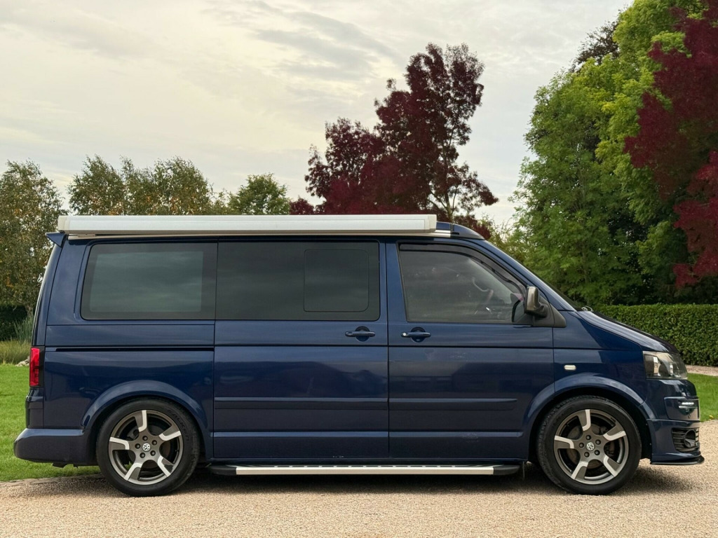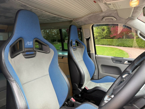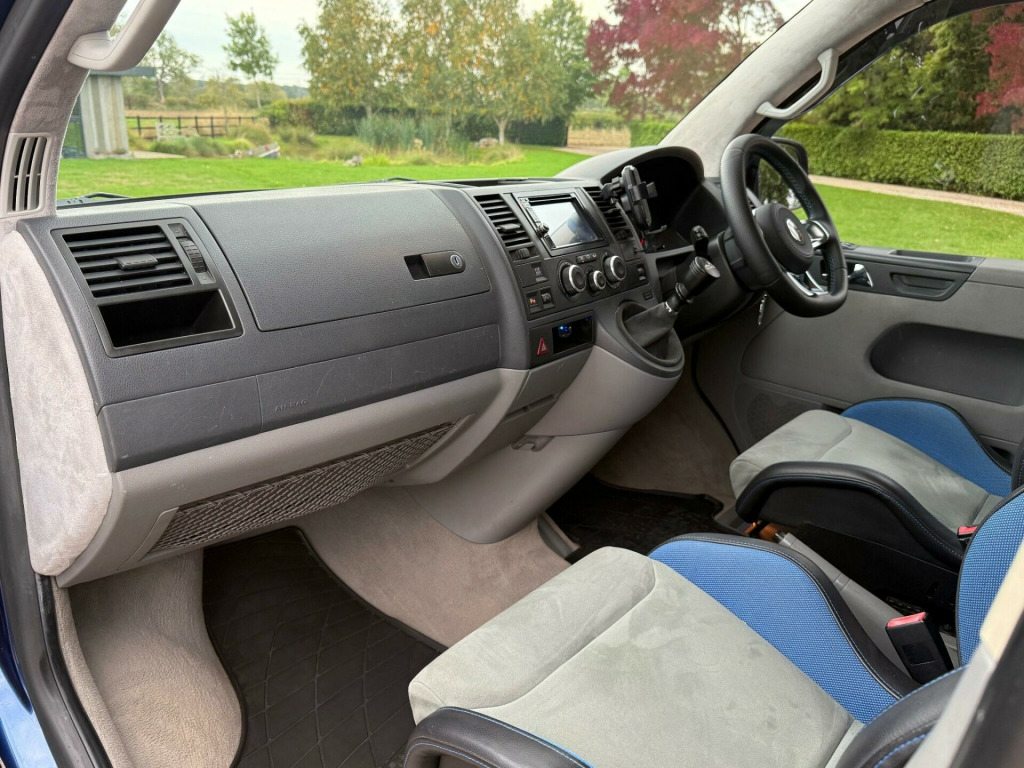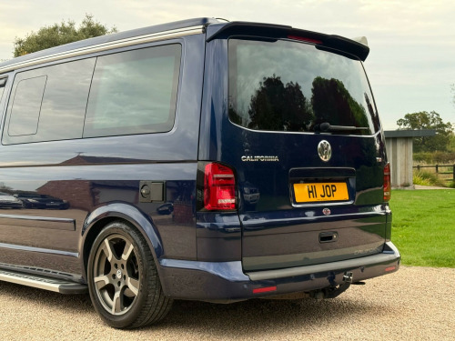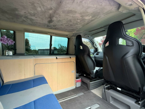 Manor Cars are proud to offer this fantastic example of the Volkswagen California. Finished in Metallic Blue with a Blue/ Grey Interior. Complete with 2 keys, Extensive Service History, as well as being in a fantastic condition inside and out. Owned by one of our companies directors for 4 years, with thousands of pounds in tasteful upgrades, including: Recaro CS Bucket Seats (retaining the swiveling captains chairs), Apple Car Play Stereo, Brandrup Rear Carpet, T5.1 Transporter Sportline Wheels, Front Bumper and rear spoiler, Professionally fitted wireless phone charger, Alcantara headlining, tinted windows, Cruise Control, VW Golf Clubsport Steering Wheel, Aluminum Side Steps, Slightly lowered on H&R springs, Reversing Camera, Magnetic front window shades, 100w roof mounted solar panels, both leisure batteries recently replaced, LED sequential rear lights and much much more...... Buy with confidence from our friendly, family run business with flexible viewing times 7 days a week, please call for a viewing. All our vehicles are thoroughly checked HPi clear, complete with a certificate. Comprehensive warranty included. We offer a wide range of finance options with low rates including HP, PCP and can also cater for poor credit circumstances. All major credit/debit cards accepted, All part exchanges are welcome ning - drivers side, cruise control, privacy glass - rear, seats-folding, swivelling&remov. passenger for rear, parking sensors, alloy wheels - solace 17in, metallic paint, tow bar - removable