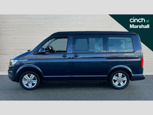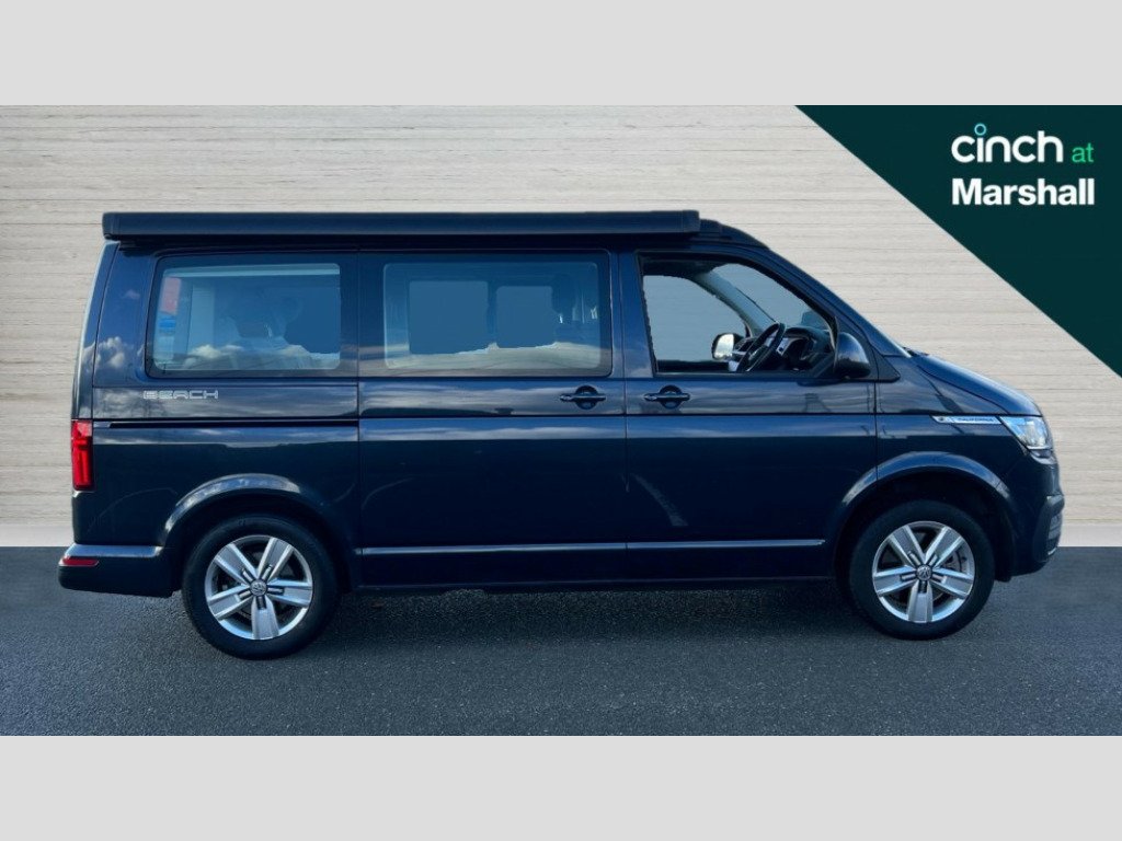 Volkswagen California 2.0 TDI Beach Camper 4dr DSG Adaptive cruise control with speed limiter and city emergency braking, Bluetooth handsfree system, Cross wind assist, Driver alert system, eCall emergency system, Mobile phone interface, Multifunction display premium with color display, Service interval indicator, Speed limiter, Start/stop system with regenerative braking, Tailgate latch without unlocking function from inside, Tailgate with window aperture, Volkswagen app connect, Without lane change system side Assist, Without voice control, Without washerfluid level indicator and without heated washer nozzles, 17 inch chassis with 17 inch disc brakes in front and 16 inch disc brake in rear, 2 (type C) USB interfaces in dashboard, 6 speakers, Composition colour radio with 6.5 inch touchscreen, Digital radio reception (DAB+), Regional code ECE for radio, SD card slot, Additional dust seals on the outside, Body colour bumpers, Body coloured door handles, Body coloured door mirrors, California badge on the front wing and on the rear, California nameplate on the fender and on the rear, Fixed front and rear side windows in load/passenger compartment on driver side, Headlight range control, High level 3rd brake light, Left convex exterior mirror, Mounting rails on the roof (preparation for movable roof rack), Radiator grille with 2 chrome trims, Rear boot, Rear heated window with window wiper and washer system, Red LED rear combination lamps, Right convex exterior mirror, Without left sliding door in load/passenger compartment, 1 waste bin in door storage compartment of the cab, 12V outlets in dashboard X 2, 2-seater bench/bed,movable along rail system and folds down into a two person bed, 230V inlet with charging feature for vehicle batteries and 230V outlet in the interior, 230V inverter with socket on driver seat, 3 spoke leather wrapped multifunction steering wheel, Allergen filter, Armrest for both cab seats, Camper control unit, Camping table for inside/outside in sliding door and 2 folding chairs in tailgate, Child safety net, Child seat anchors ISOFIX and top tether for Multivan/California in 2nd to 4th row of seats, Dimmable illuminated instruments, Electromechanical speed sensitive power steering, height and longitudinally adjustable steering column, Front head restraints, Gas hob with single burner, stowable, Gas tank storage for 1.8kg gas cylinder with gas pressure regulator and shut-off valve, Glove compartment with illumination, Grab handles on A pillar for access, on driver and front passenger side, Illuminated steps in passenger/load compartment, Illuminated sun visors with mirror and airbag label on front passenger sun visor, Interior light concept for camper with comfort in passenger compartment incl additional LED light in the pop up roof for the loft bed,in the tailgate, Interior loading edge protection in plastic, Jack and tool kit, Manually adjustable lumbar supports for left and right single seat in the 1st row of seats, Mini kitchen (on side panel between B and C pillar) with 1 gas cooking plat, Multi-flex board with padding in luggage compartment, Operating voltage 12V including 230V outlet on driver seat, Plastic floor covering in passenger/load compartment, Rear head restraints, Refrigerant R1234yf, Roof bed (2000 x 1200 mm) with spring plates and mattress, Soft folding grab handles on roof frame, Special interior noise suppression measures, Special sound deadening measures in cab and passenger compartment, Step illumination with California lettering, Swivel seat on the left, with lumbar support in 1st row of seats, Swivel seat on the right, with lumbar support in 1st row of seats, Without floor mats, Without height adjustment for driver and single passenger seats, Without insulating box and without refrigerated glove compartment, Smokers pack - California, Airbags - Drivers and front passengers side and curtain airbags, Driver/Front Passenger airbags, Electronic stability control, ABS, ASR, EDL, brake assist system, Height adjustable 3 point seat belts on outer seats in cab with electric pretensioners, Hill start assist, Passenger airbag deactivation system, Power operated child safety locks, Single tone horn, Warning buzzer and light for driver seat belt not fastened, Anti theft alarm system with interior monitoring in cab, backup horn and towing protection, Central locking system with radio remote control, system controls inside and safelock, Lockable wheel bolts, Standard dashboard lower part in colour titanium black, Without decorative strip and decorative insert