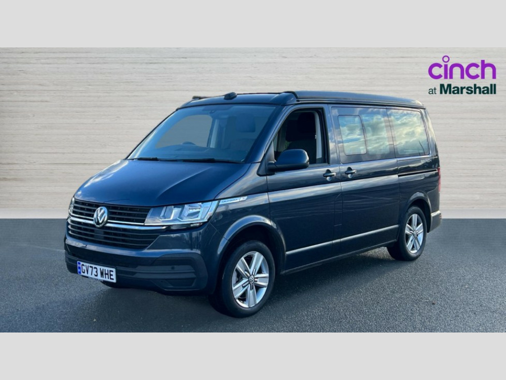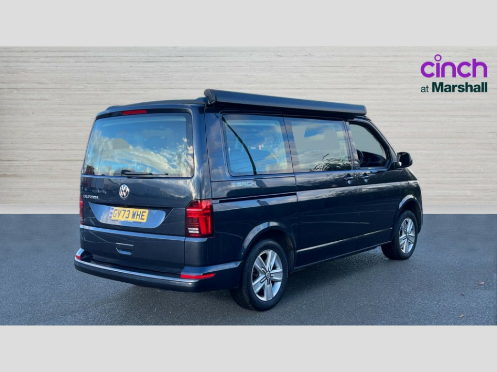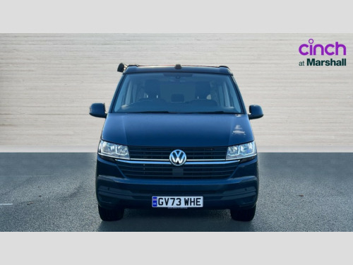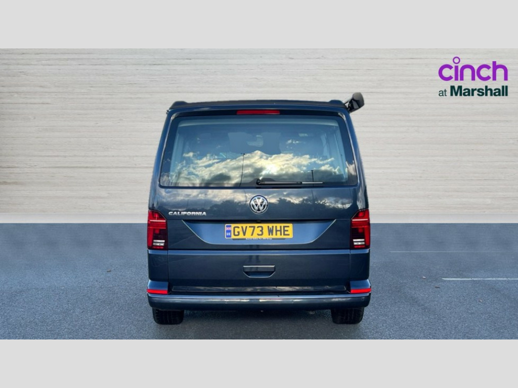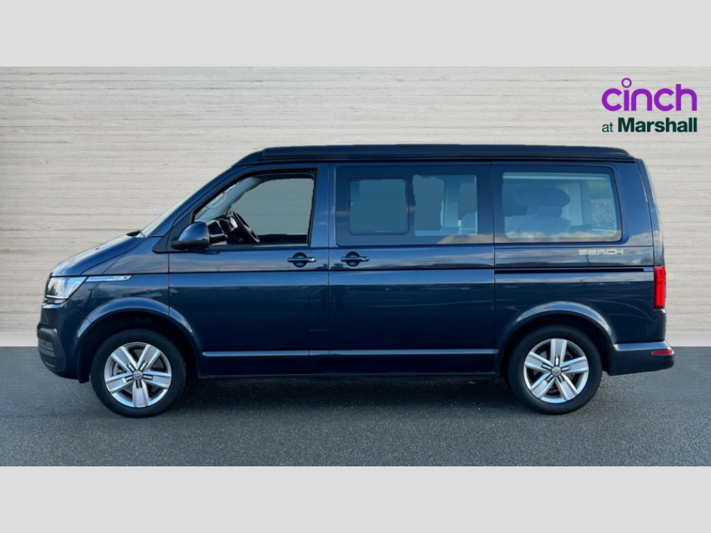Volkswagen California 2.0 TDI Beach Camper 4dr DSG Adaptive cruise control with speed limiter and city emergency braking, Bluetooth handsfree system, Cross wind assist, Driver alert system, eCall emergency system, Mobile phone interface, Multifunction display premium with color display, Service interval indicator, Speed limiter, Start/stop system with regenerative braking, Tailgate latch without unlocking function from inside, Tailgate with window aperture, Volkswagen app connect, Without lane change system side Assist, Without voice control, Without washerfluid level indicator and without heated washer nozzles, 17 inch chassis with 17 inch disc brakes in front and 16 inch disc brake in rear, 2 (type C) USB interfaces in dashboard, 6 speakers, Composition colour radio with 6.5 inch touchscreen, Digital radio reception (DAB+), Regional code ECE for radio, SD card slot, Additional dust seals on the outside, Body colour bumpers, Body coloured door handles, Body coloured door mirrors, California badge on the front wing and on the rear, California nameplate on the fender and on the rear, Fixed front and rear side windows in load/passenger compartment on driver side, Headlight range control, High level 3rd brake light, Left convex exterior mirror, Mounting rails on the roof (preparation for movable roof rack), Radiator grille with 2 chrome trims, Rear boot, Rear heated window with window wiper and washer system, Red LED rear combination lamps, Right convex exterior mirror, Without left sliding door in load/passenger compartment, 1 waste bin in door storage compartment of the cab, 12V outlets in dashboard X 2, 2-seater bench/bed,movable along rail system and folds down into a two person bed, 230V inlet with charging feature for vehicle batteries and 230V outlet in the interior, 230V inverter with socket on driver seat, 3 spoke leather wrapped multifunction steering wheel, Allergen filter, Armrest for both cab seats, Camper control unit, Camping table for inside/outside in sliding door and 2 folding chairs in tailgate, Child safety net, Child seat anchors ISOFIX and top tether for Multivan/California in 2nd to 4th row of seats, Dimmable illuminated instruments, Electromechanical speed sensitive power steering, height and longitudinally adjustable steering column, Front head restraints, Gas hob with single burner, stowable, Gas tank storage for 1.8kg gas cylinder with gas pressure regulator and shut-off valve, Glove compartment with illumination, Grab handles on A pillar for access, on driver and front passenger side, Illuminated steps in passenger/load compartment, Illuminated sun visors with mirror and airbag label on front passenger sun visor, Interior light concept for camper with comfort in passenger compartment incl additional LED light in the pop up roof for the loft bed,in the tailgate, Interior loading edge protection in plastic, Jack and tool kit, Manually adjustable lumbar supports for left and right single seat in the 1st row of seats, Mini kitchen (on side panel between B and C pillar) with 1 gas cooking plat, Multi-flex board with padding in luggage compartment, Operating voltage 12V including 230V outlet on driver seat, Plastic floor covering in passenger/load compartment, Rear head restraints, Refrigerant R1234yf, Roof bed (2000 x 1200 mm) with spring plates and mattress, Soft folding grab handles on roof frame, Special interior noise suppression measures, Special sound deadening measures in cab and passenger compartment, Step illumination with California lettering, Swivel seat on the left, with lumbar support in 1st row of seats, Swivel seat on the right, with lumbar support in 1st row of seats, Without floor mats, Without height adjustment for driver and single passenger seats, Without insulating box and without refrigerated glove compartment, Smokers pack - California, Airbags - Drivers and front passengers side and curtain airbags, Driver/Front Passenger airbags, Electronic stability control, ABS, ASR, EDL, brake assist system, Height adjustable 3 point seat belts on outer seats in cab with electric pretensioners, Hill start assist, Manual passenger airbag deactivation function, Power operated child safety locks, Single tone horn, Warning buzzer and light for driver seat belt not fastened, Anti theft alarm system with interior monitoring in cab, backup horn and towing protection, Central locking system with radio remote control, system controls inside and safelock, Lockable wheel bolts, Standard dashboard lower part in colour titanium black, Without decorative strip and decorative insert
