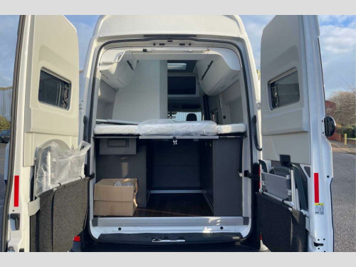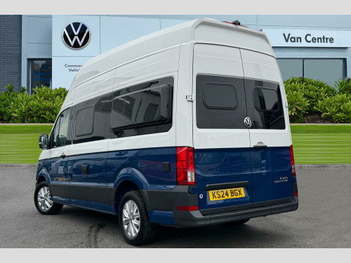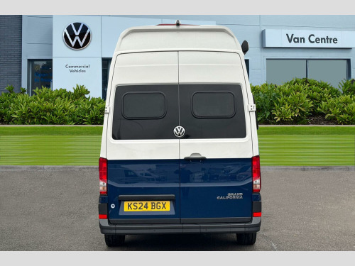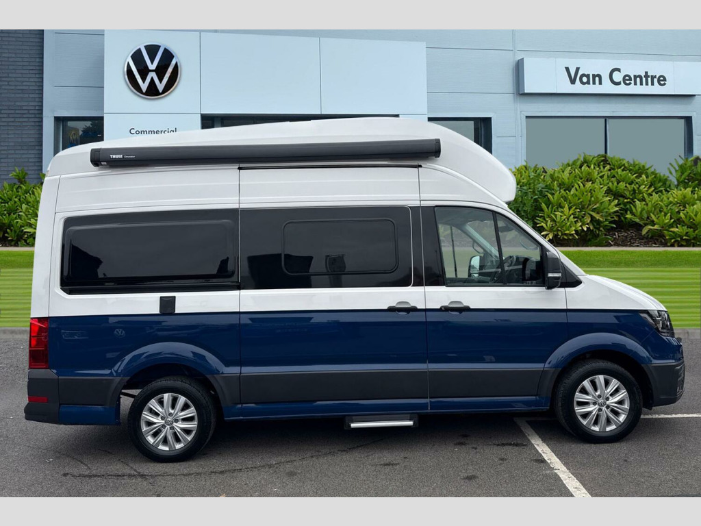Volkswagen Grand California 2.0 TDI 600 5dr Tip Auto [3.5T] Special factory 2-Tone paint finish-Candy White/Deep Ocean Blue, Awning black housing, Front fog lamps with cornering function, Parking sesnors front + rear, Rear view camera system, Cruise control with speed limiter, Forward collision warning incl. autonomous emergency braking, Water parking heater for windshield defrosting and heating/ventilation of the cab with remote control, Heating system for water and interior powered by mains electricity or diesel, Toilet ventilation system, 2 Berth layout, Full luxury carpet mat set, Discover Media Navigation syetem, Wired & wireless App Connect, Apple Car Play, Android Auto, Twin USB-C type interfaces, Bluetooth connectivity, Wi-fi LTE hotspot with integrated data server, Voice Control, Lockable wheel bolts, Remote central locking with 2 remote keys, Tyre mobility kit Includes 12V compressor and tyre sealant, Two tone - Candy White/Deep Ocean Blue, Valley fabric seat trim covers - Palladium Grey, 17" Lismore Alloy Wheels in bright silver, Alloy wheel security locking bolts, VW 5 Plus Promise to include the remainder of:, 5 Years Warranty✔, 5 Years Roadside Assistance✔, 5 services✔, 3 MOTs✔, (From date of registration), Rear wash/wipe, Windows with sliding blinds and fly screen, 180 degree rear wing doors, Body colour bumpers, Electrically operated retractable step, Manual sliding side door - driver's side, Two piece mosquito nets on sliding door, Two sky lights with sliding blinds and fly screens, Automatic hazard lights activation under emergency braking, Front fog lights with cornering function, Third brake light, Anti-lock braking system (ABS), Automatic post collision braking system, Electronic stabilisation programme (ESP) with load adjusting, Forward collision warning incl. autonomous emergency braking (AEB), Front assist with city emergency braking system, Hill start assist, Parking brake with hill hold control, Traction control system with ASR, Cross wind assist, Driver alert system, Electromechanical servotronic steering, 3 point inertia reel seatbelts - all 4 seats, Child locks on rear doors, Driver/Front Passenger airbags, Seat belt warning light for driver, Rubber floor covering in cab, Climatic manually controlled air conditioning with dust and pollen filter and air recirculation, 110 litres fresh water storage tank, 4 x 230V electrical sockets, 70 litres fridge freezer compartment, 90 litres waste water tank, Dinette with 4 seats and table, Extendable work surface, Folding chairs and tables stored in rear doors, Fully insulated living area with floor, roof and wall insulation, Gas storage cupboard for two bottles, Hob with two burners, Leather trimmed multi function steering wheel with heating function, Multiple USB sockets in cab and living area, Rake/reach adjustable steering wheel, Seat trim covers in valley fabric upholstery, Sink with hot and cold water with folding tap, Transverse two person rear bed, Wet room with shower and cassette toilet, Bluetooth connection, eCall emergency call system, DAB+ radio, Central operating unit with touch control for monitoring heating, lighting and water levels, Compact motorhome with multifunctional interior, Trip computer, We connect plus preparation, 75 litre fuel tank with lockable cap, Second battery - operating 12V voltage, Driver and passenger swivel seats with armrests, height and lumbar adjustment, Front head restraints, Isofix child seat preparation, Rear bench seat, Rear headrests, Single front passenger seat, Anti theft alarm system with interior monitoring in cab, backup horn and towing protection, Engine immobiliser, 17" Lismore alloy wheels