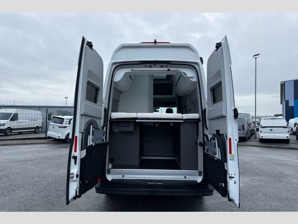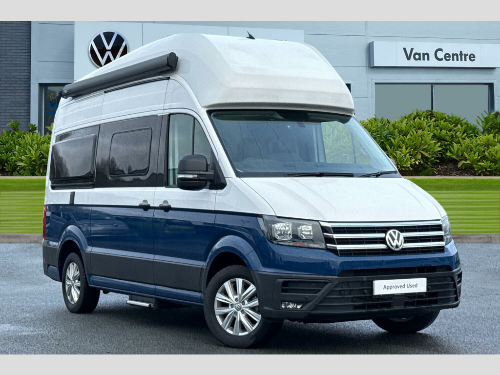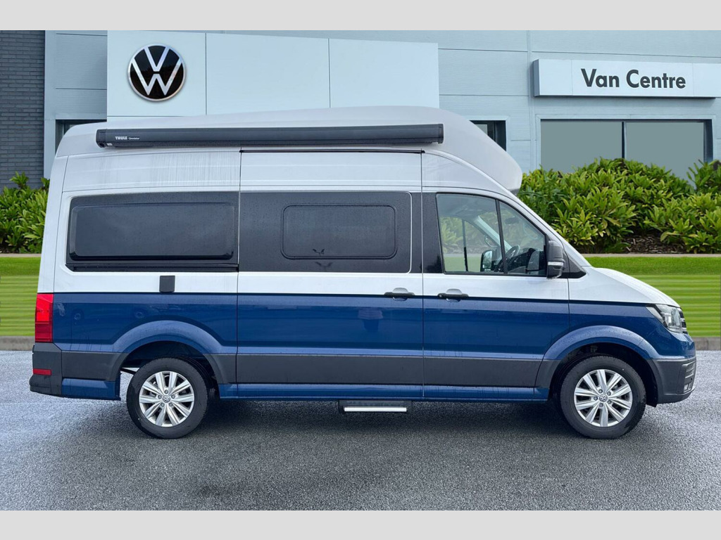 To make an enquiry about this vehicle, call our friendly sales team today! Candy White / Deep Ocean Blue Duo Tone Paint, Electric auxiliary heater, Side and curtain airbags for driver and front passenger, Chrome elements in cab and radiator grille with 3 chrome trims, Heating system for water and interior powered by mains electricity or diesel, Rear view camera, Front and rear parking sensors, Forward collision warning incl. autonomous emergency braking, for adaptive cruise control "low", Adaptive cruise control (with "follow-to-stop") and speed limiter, Electronically controlled air conditioning system, 17" "Lismore" Silver alloy wheels, Front fog lights with cornering function, Leather-wrapped multifunction steering wheel, heated, Navigation system "Discover Media" with 4 speakers, Wired & Wireless App-Connect, Rear wash/wipe, Windows with sliding blinds and fly screen, 180 degree rear wing doors, Body colour bumpers, Electrically operated retractable step, Two piece mosquito nets on sliding door, Two sky lights with sliding blinds and fly screens, Automatic hazard lights activation under emergency braking, Third brake light, Anti-lock braking system (ABS), Automatic post collision braking system, Electronic brake assist (EBA), Electronic stabilisation programme (ESP) with load adjusting, Front assist with city emergency braking system, Hill start assist, Parking brake with hill hold control, Traction control system with ASR, Cross wind assist, Driver alert system, Electromechanical servotronic steering, Child locks on rear doors, Driver/Front Passenger airbags, Seat belt warning light for driver, Rubber floor covering in cab, Climatic manually controlled air conditioning with dust and pollen filter and air recirculation, 110 litres fresh water storage tank, 4 x 230V electrical sockets, 70 litres fridge freezer compartment, 90 litres waste water tank, Dinette with 4 seats and table, Extendable work surface, Folding chairs and tables stored in rear doors, Gas storage cupboard for two bottles, Hob with two burners, Leather trimmed multi function steering wheel with heating function, Multiple USB sockets in cab and living area, Rake/reach adjustable steering wheel, Seat trim covers in valley fabric upholstery, Sink with hot and cold water with folding tap, Transverse two person rear bed, Two 12V outlets in cab, Wet room with shower and cassette toilet, Bluetooth connection, 4 speakers(2 tweeters/2 woofers), DAB+ radio, Central operating unit with touch control for monitoring heating, lighting and water levels, Compact motorhome with multifunctional interior, eCall emergency call system, Heating and hot water heating powered by gas and mains electric, Trip computer, We connect plus preparation, 75 litre fuel tank with lockable cap, Second battery - operating 12V voltage, Driver and passenger swivel seats with armrests, height and lumbar adjustment, Front head restraints, Isofix child seat preparation, Rear bench seat, Rear headrests, Single front passenger seat, Anti theft alarm system with interior monitoring in cab, backup horn and towing protection, Engine immobiliser, Remote central locking with 2 remote keys, 17" Lismore alloy wheels