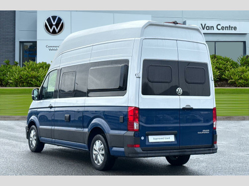 The Volkswagen Grand California 600 3.5t is a compact yet capable motorhome, powered by a 2.0 litre TDI diesel engine paired with a smooth 8 speed automatic transmission and front wheel drive. Finished in striking Candy White and Deep Ocean Blue duo tone paint, it combines premium styling with everyday usability.