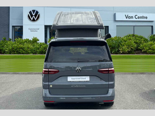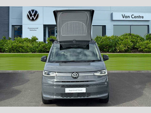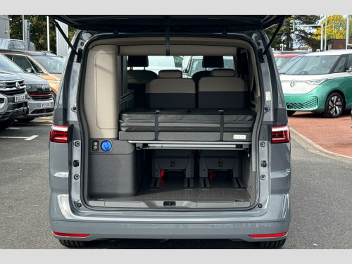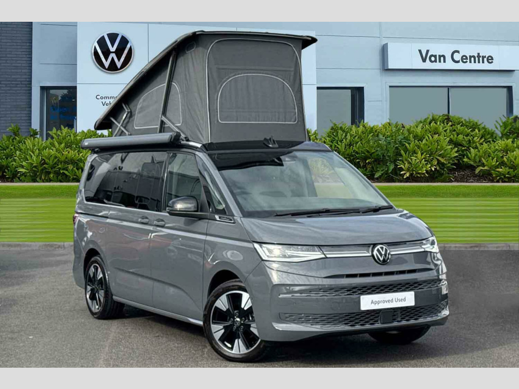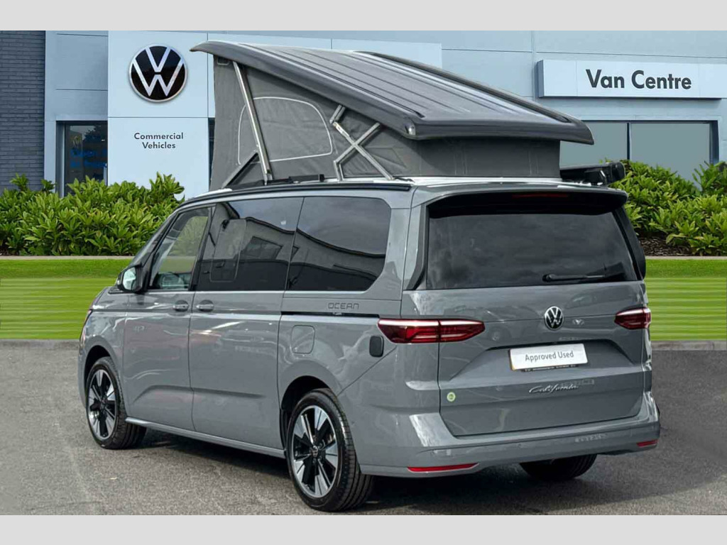 The California TDI Ocean offers a superior experience compared to other vehicles in its class, thanks to its thoughtful features and pristine condition. The combination of its very low mileage and manufacturer approval signifies a vehicle that has been exceptionally well looked after. This Volkswagen California is ready for your next adventure, providing a comfortable and connected driving experience with the added peace of mind that comes from a nearly new vehicle. Pure Grey with Deep Black Pearl Roof, Black awning rail on both sides, Roll out awning on right-Black housing, Melange bi-color cloth upholstery, Interior lighting on pop-up roof, tailgate & summer kitchen, LED interior lighting, Ocean kitchen cupboards in 'Graphite Grey' slate-effect, with outdoor folding table and roof storage box, 19" Halmstadt black alloy wheels, Solid - Pure Grey with Deep Black Pearl roof, Retractable towbar with electric release, Melange bi-color cloth - Raven black/Sand, VW's Famous 5 Plus Promise, including the remainder of:, 5 Years Warranty✔, 5 Years Roadside Assist✔, 5 Services✔, 3 MOTs✔, (From Date Of Registration), 65% light absorbing privacy glass, Four speed control for windscreen wipers, Heat and sound insulating laminated safety glass windshield, Heated windscreen, Sliding window in front with fly screen in passenger compartment left/right & fixed window in rear in load passenger compartment at left, Windscreen wiper intermittent control, Standard suspension and shock absorption, Electro hydraulic elevating roof, with three windows including one front passengers panorama opening, canvas in Basalt Grey, Nameplate set California, Rear boot, 3rd brake light, Dynamic Light Assist for LED matrix headlights, Illuminated molding between headlamps, Poor weather light including cornering light, Red LED tail lights, Autonomous emergency braking front assist with pedestrian and cyclist monitoring, Front disc brakes, Swerve support and oncoming vehicle braking when turning, Advanced driver attention and drowsiness monitor, Driving profile selection, Lane keeping system Lane Assist, Multifunction camera, PAS, Traffic sign recognition, Turn assist with evasive assistance, High gloss black door mirrors, 2x3 point automatic seatbelts at the rear outside with ECE label, with/without belt tensioner, Child locks, Driver and front passenger airbags with front passenger airbag deactivation button, First aid kit with warning triangle and safety vest, Front Assist with pedestrian and cyclist detection, Height adjustable three point automatic seatbelts at front with belt and end fitting tensioners, Side and curtain airbags for driver and front passenger, curtain airbags for outer seats in rear, centre airbag in front, Tyre pressure loss indicator, California on tour app, Mobile phone interface, Preparation for online services, Volkswagen wired and wireless app connect, 2 USB-C ports at the front, 4 USB-C charging sockets in the passenger compartment, 8 Speakers, Digital radio reception (DAB), eCall emergency system, Tailgate with window aperture and with power latching, Digital cockpit pro, Discover Pro Navigation system, Emergency assist, Function control unit, IDA voice assistant and voice enhancer, Additional batteries 2nd and 3rd with voltage transformer NV, Battery without capacity specification, Standard battery/generator, Dark silver brushed decorative inlays, 2 single seats with integrated seatbelt and sleeping mat, Armrest on front swivel seats in both sides with electric lumbar support, Front and rear headrests, Heated front seats, Single front passenger seat, Swivel seat on left with height adjustable including drawer, Swivel seat on right with height adjustable including drawer, Camper parking heater for continuous operation & parking heater for windshield defrosting with radio remote control, 230V external inlet with charging feature for vehicle batteries, 230V inverter with socket on driver seat, Additional interior noise attenuation plus, Darkening roller blinds and thermo mats, Drawers under the outer seats in the cab and passenger compartment & 2 waste bins, Heated steering wheel, Kitchen with outdoor folding table for cooking and roof storage box in dTcor 2, Lockable glove compartment with lighting, Multifunction leather steering wheel with paddle shifters, Plastic floor covering in passenger/load compartment, Surround lighting in door area, Ambient interior lighting, Advanced assistance pac