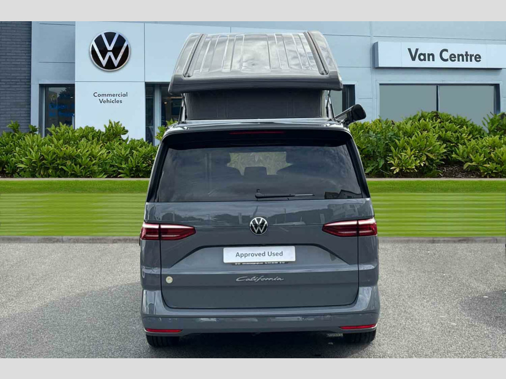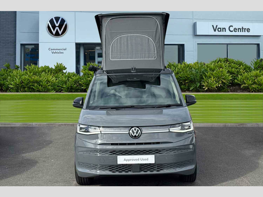 The California TDI Ocean offers a superior experience compared to other vehicles in its class, thanks to its thoughtful features and pristine condition. The combination of its very low mileage and manufacturer approval signifies a vehicle that has been exceptionally well looked after. This Volkswagen California is ready for your next adventure, providing a comfortable and connected driving experience with the added peace of mind that comes from a nearly new vehicle. Pure Grey with Deep Black Pearl Roof, Black awning rail on both sides, Roll out awning on right-Black housing, Melange bi-color cloth upholstery, Interior lighting on pop-up roof, tailgate & summer kitchen, LED interior lighting, Ocean kitchen cupboards in 'Graphite Grey' slate-effect, with outdoor folding table and roof storage box, 19" Halmstadt black alloy wheels, Solid - Pure Grey with Deep Black Pearl roof, Retractable towbar with electric release, Melange bi-color cloth - Raven black/Sand, VW's Famous 5 Plus Promise, including the remainder of:, 5 Years Warranty✔, 5 Years Roadside Assist✔, 5 Services✔, 3 MOTs✔, (From Date Of Registration), 65% light absorbing privacy glass, Four speed control for windscreen wipers, Heat and sound insulating laminated safety glass windshield, Heated windscreen, Sliding window in front with fly screen in passenger compartment left/right & fixed window in rear in load passenger compartment at left, Windscreen wiper intermittent control, Standard suspension and shock absorption, Electro hydraulic elevating roof, with three windows including one front passengers panorama opening, canvas in Basalt Grey, Nameplate set California, Rear boot, 3rd brake light, Dynamic Light Assist for LED matrix headlights, Illuminated molding between headlamps, Poor weather light including cornering light, Red LED tail lights, Autonomous emergency braking front assist with pedestrian and cyclist monitoring, Front disc brakes, Swerve support and oncoming vehicle braking when turning, Advanced driver attention and drowsiness monitor, Driving profile selection, Lane keeping system Lane Assist, Multifunction camera, PAS, Traffic sign recognition, Turn assist with evasive assistance, High gloss black door mirrors, 2x3 point automatic seatbelts at the rear outside with ECE label, with/without belt tensioner, Child locks, Driver and front passenger airbags with front passenger airbag deactivation button, First aid kit with warning triangle and safety vest, Front Assist with pedestrian and cyclist detection, Height adjustable three point automatic seatbelts at front with belt and end fitting tensioners, Side and curtain airbags for driver and front passenger, curtain airbags for outer seats in rear, centre airbag in front, Tyre pressure loss indicator, California on tour app, Mobile phone interface, Preparation for online services, Volkswagen wired and wireless app connect, 2 USB-C ports at the front, 4 USB-C charging sockets in the passenger compartment, 8 Speakers, Digital radio reception (DAB), eCall emergency system, Tailgate with window aperture and with power latching, Digital cockpit pro, Discover Pro Navigation system, Emergency assist, Function control unit, IDA voice assistant and voice enhancer, Additional batteries 2nd and 3rd with voltage transformer NV, Battery without capacity specification, Standard battery/generator, Dark silver brushed decorative inlays, 2 single seats with integrated seatbelt and sleeping mat, Armrest on front swivel seats in both sides with electric lumbar support, Front and rear headrests, Heated front seats, Single front passenger seat, Swivel seat on left with height adjustable including drawer, Swivel seat on right with height adjustable including drawer, Camper parking heater for continuous operation & parking heater for windshield defrosting with radio remote control, 230V external inlet with charging feature for vehicle batteries, 230V inverter with socket on driver seat, Additional interior noise attenuation plus, Darkening roller blinds and thermo mats, Drawers under the outer seats in the cab and passenger compartment & 2 waste bins, Heated steering wheel, Kitchen with outdoor folding table for cooking and roof storage box in dTcor 2, Lockable glove compartment with lighting, Multifunction leather steering wheel with paddle shifters, Plastic floor covering in passenger/load compartment, Surround lighting in door area, Ambient interior lighting, Advanced assistance pac