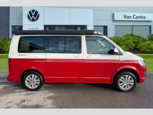 This Volkswagen California Ocean SWB is the ultimate combination of everyday driving comfort and true campervan versatility. Powered by the refined 2.0 TDI BMT engine producing 150 PS and paired with a smooth 7-speed DSG automatic gearbox, it delivers effortless performance and excellent cruising ability. Finished in a striking two-tone Candy White upper and Cherry Red lower solid paint, this California has real presence and timeless appeal.