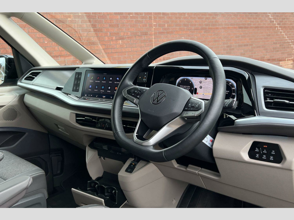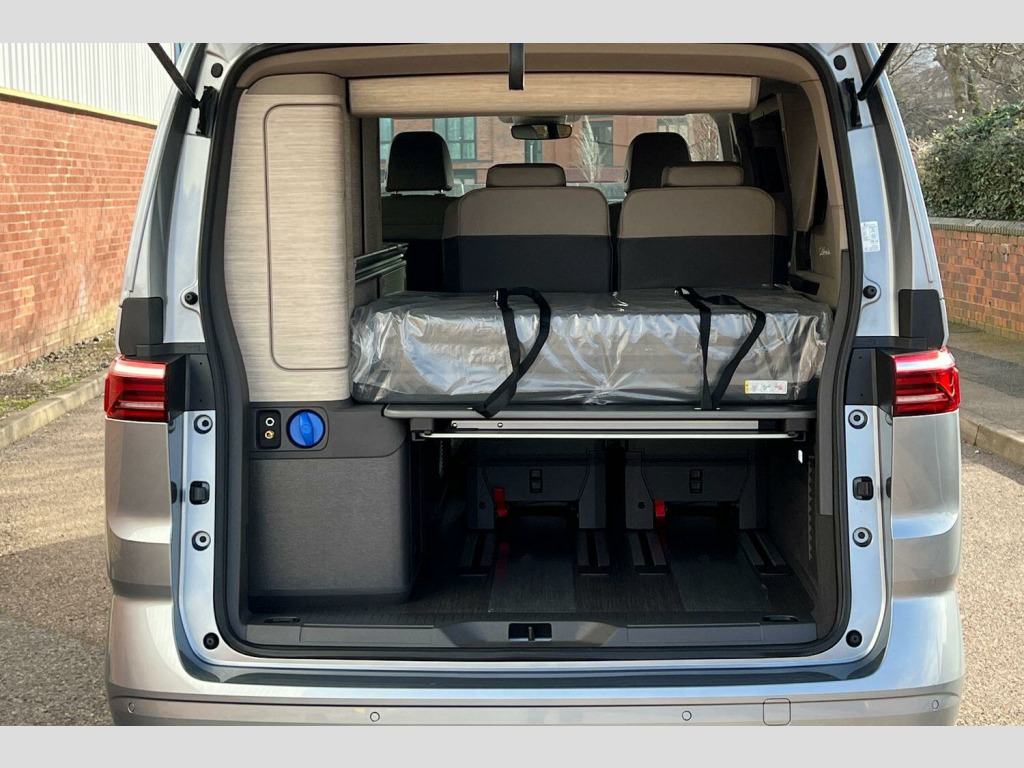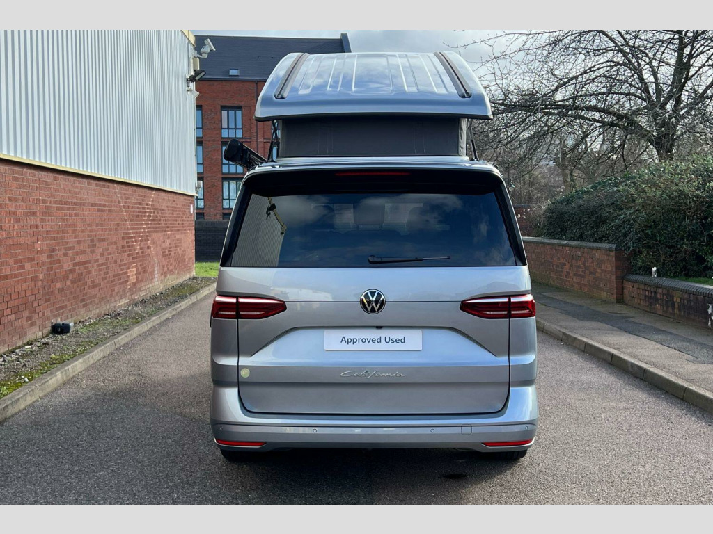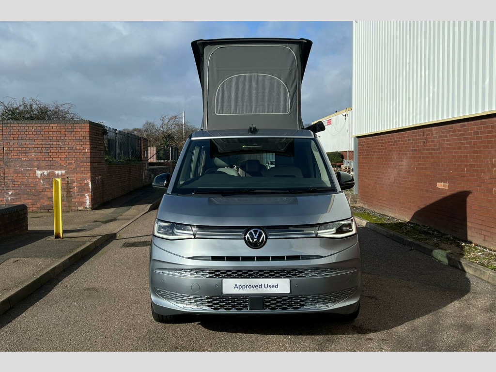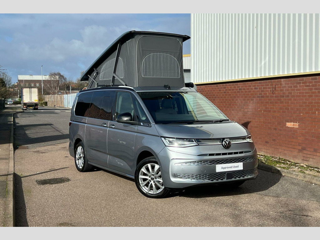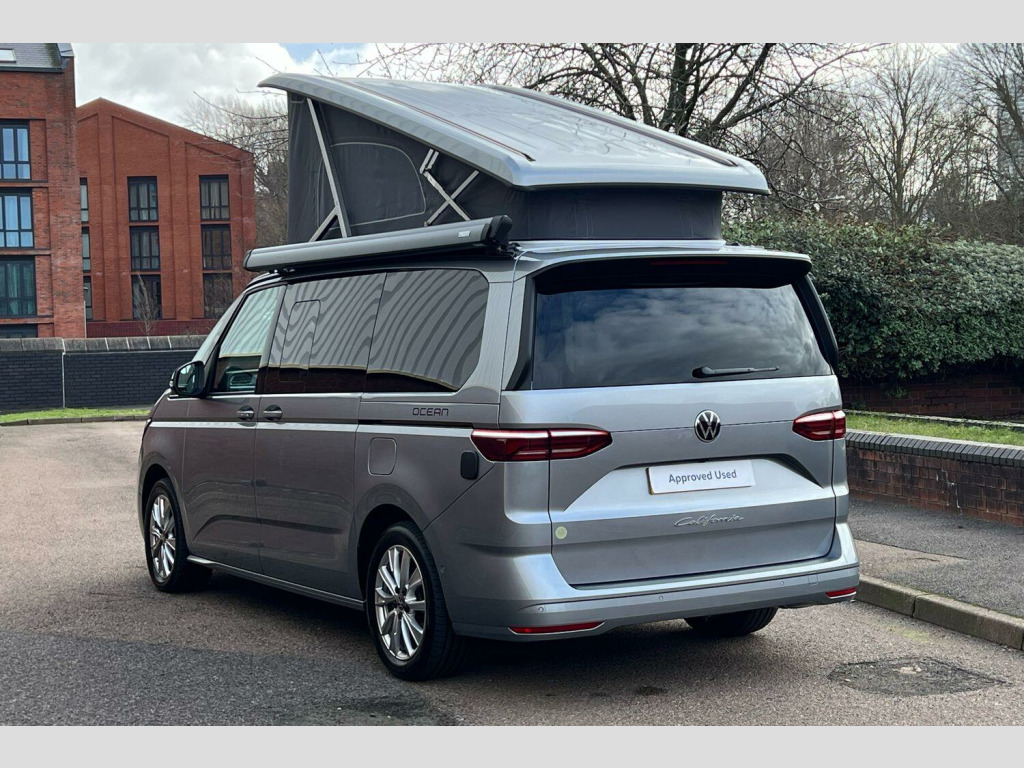 Volkswagen California 2.0 TDI Ocean 5dr DSG Mono Silver-Metallic paint, Retractable towbar with electric release, 360° camera pack, IQ Matrix LED headlamps, Black roll out awning, Melange bi-color cloth upholstery, Camper parking heater for continuous operation, Advanced parking pack - California, 18" Toshima silver alloy wheels, Metallic - Mono Silver, Retractable towbar with electric release, Melange bi-color cloth - Raven Black/Sand, 5 Years Warranty, 5 Years Roadside Assistance, 5 Services, 3 MOT's, (From Date Of Registration), 65% light absorbing privacy glass, Four speed control for windscreen wipers, Heat and sound insulating laminated safety glass windshield, Heated windscreen, Sliding window in front with fly screen in passenger compartment left/right & fixed window in rear in load passenger compartment at left, Windscreen wiper intermittent control, Standard suspension and shock absorption, Electro hydraulic elevating roof, with three windows including one front passengers panorama opening, canvas in Basalt Grey, Nameplate set California, Rear boot, 3rd brake light, Dynamic Light Assist for LED matrix headlights, Illuminated molding between headlamps, Poor weather light including cornering light, Red LED tail lights, Autonomous emergency braking front assist with pedestrian and cyclist monitoring, Front disc brakes, Swerve support and oncoming vehicle braking when turning, Advanced driver attention and drowsiness monitor, Driving profile selection, Lane keeping system Lane Assist, Multifunction camera, PAS, Traffic sign recognition, Turn assist with evasive assistance, High gloss black door mirrors, 2x3 point automatic seatbelts at the rear outside with ECE label, with/without belt tensioner, Child locks, Driver and front passenger airbags with front passenger airbag deactivation button, First aid kit with warning triangle and safety vest, Front Assist with pedestrian and cyclist detection, Height adjustable three point automatic seatbelts at front with belt and end fitting tensioners, Side and curtain airbags for driver and front passenger, curtain airbags for outer seats in rear, centre airbag in front, Tyre pressure loss indicator, California on tour app, Mobile phone interface, Preparation for online services, Volkswagen wired and wireless app connect, 2 USB-C ports at the front, 4 USB-C charging sockets in the passenger compartment, 8 Speakers, Digital radio reception (DAB), eCall emergency system, Tailgate with window aperture and with power latching, Digital cockpit pro, Discover Pro Navigation system, Emergency assist, Function control unit, IDA voice assistant and voice enhancer, Additional batteries 2nd and 3rd with voltage transformer NV, Battery without capacity specification, Standard battery/generator, Dark silver brushed decorative inlays, 2 single seats with integrated seatbelt and sleeping mat, Armrest on front swivel seats in both sides with electric lumbar support, Front and rear headrests, Heated front seats, Single front passenger seat, Swivel seat on left with height adjustable including drawer, Swivel seat on right with height adjustable including drawer, Camper parking heater for continuous operation & parking heater for windshield defrosting with radio remote control, 230V external inlet with charging feature for vehicle batteries, 230V inverter with socket on driver seat, Additional interior noise attenuation plus, Darkening roller blinds and thermo mats, Drawers under the outer seats in the cab and passenger compartment & 2 waste bins, Heated steering wheel, Kitchen with outdoor folding table for cooking and roof storage box in dTcor 2, Lockable glove compartment with lighting, Multifunction leather steering wheel with paddle shifters, Plastic floor covering in passenger/load compartment, Surround lighting in door area, Ambient interior lighting, Advanced assistance pack - California, Top package - California, Anti theft alarm system with interior monitoring in cab, backup horn and towing protection, Central locking + keyless locki