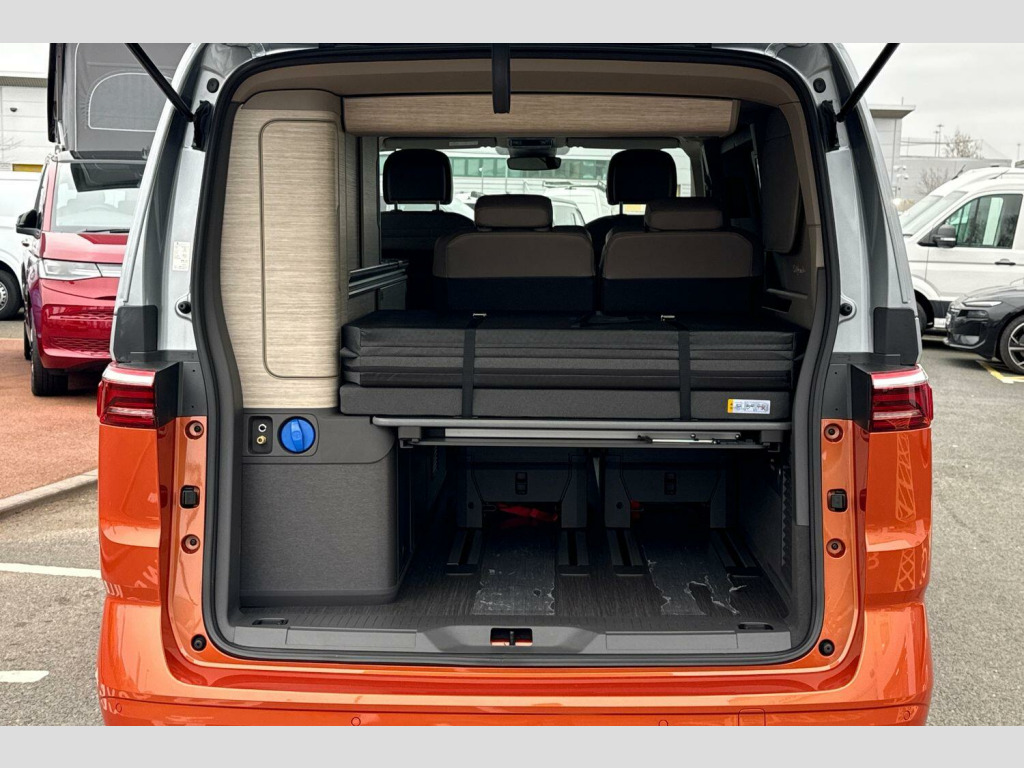 2-Tone paint-Mono Silver/Energetic Orange, Chrome strips on side and rear, Rear view camera, Power sliding side load doors-Left & right, Melange bi-color cloth upholstery-Raven Black/Sand, Electronically adjustable AGR Ergo Comfort front seats-Non swivelling, 2 Vehicle keys, 18" Toshima silver alloy wheels, Two tone - Mono Silver/Energetic Orange, Melange bi-color cloth - Raven black/Sand, 65% light absorbing privacy glass, Four speed control for windscreen wipers, Heat and sound insulating laminated safety glass windshield, Heated windscreen, Sliding window in front with fly screen in passenger compartment left/right & fixed window in rear in load passenger compartment at left, Windscreen wiper intermittent control, Standard suspension and shock absorption, Electro hydraulic elevating roof, with three windows including one front passengers panorama opening, canvas in Basalt Grey, Nameplate set California, Rear boot, 3rd brake light, Dynamic Light Assist for LED matrix headlights, Illuminated molding between headlamps, Poor weather light including cornering light, Autonomous emergency braking front assist with pedestrian and cyclist monitoring, Front disc brakes, Swerve support and oncoming vehicle braking when turning, Advanced driver attention and drowsiness monitor, Driving profile selection, Lane keeping system Lane Assist, Multifunction camera, PAS, Traffic sign recognition, Turn assist with evasive assistance, High gloss black door mirrors, Child locks, Driver and front passenger airbags with front passenger airbag deactivation button, First aid kit with warning triangle and safety vest, Front Assist with pedestrian and cyclist detection, Height adjustable three point automatic seatbelts at front with belt and end fitting tensioners, Side and curtain airbags for driver and front passenger, curtain airbags for outer seats in rear, centre airbag in front, Tyre pressure loss indicator, California on tour app, Mobile phone interface, Preparation for online services, Volkswagen wired and wireless app connect, 2 USB-C ports at the front, 4 USB-C charging sockets in the passenger compartment, 8 Speakers, Digital radio reception (DAB), eCall emergency system, Tailgate with window aperture and with power latching, Digital cockpit pro, Discover Pro Navigation system, Emergency assist, Function control unit, IDA voice assistant and voice enhancer, Additional batteries 2nd and 3rd with voltage transformer NV, Battery without capacity specification, Standard battery/generator, Dark silver brushed decorative inlays, 2 single seats with integrated seatbelt and sleeping mat, Armrest on front swivel seats in both sides with electric lumbar support, Front and rear headrests, Heated front seats, Single front passenger seat, Swivel seat on left with height adjustable including drawer, Swivel seat on right with height adjustable including drawer, Camper parking heater for continuous operation & parking heater for windshield defrosting with radio remote control, 230V external inlet with charging feature for vehicle batteries, 230V inverter with socket on driver seat, Additional interior noise attenuation plus, Darkening roller blinds and thermo mats, Drawers under the outer seats in the cab and passenger compartment & 2 waste bins, Heated steering wheel, Kitchen with outdoor folding table for cooking and roof storage box in dTcor 2, Lockable glove compartment with lighting, Multifunction leather steering wheel with paddle shifters, Plastic floor covering in passenger/load compartment, Surround lighting in door area, Ambient interior lighting, Advanced assistance pack - California, Top package - California, Anti theft alarm system with interior monitoring in cab, backup horn and towing protection, Central locking + keyless locking and starting system Keyless Advanced with safe lock, Lockable wheel bolts, Preparation for alcohol interlock, 5+ Promise service plan, Trims for alloy wheels, Tool kit, Tyre mobility kit