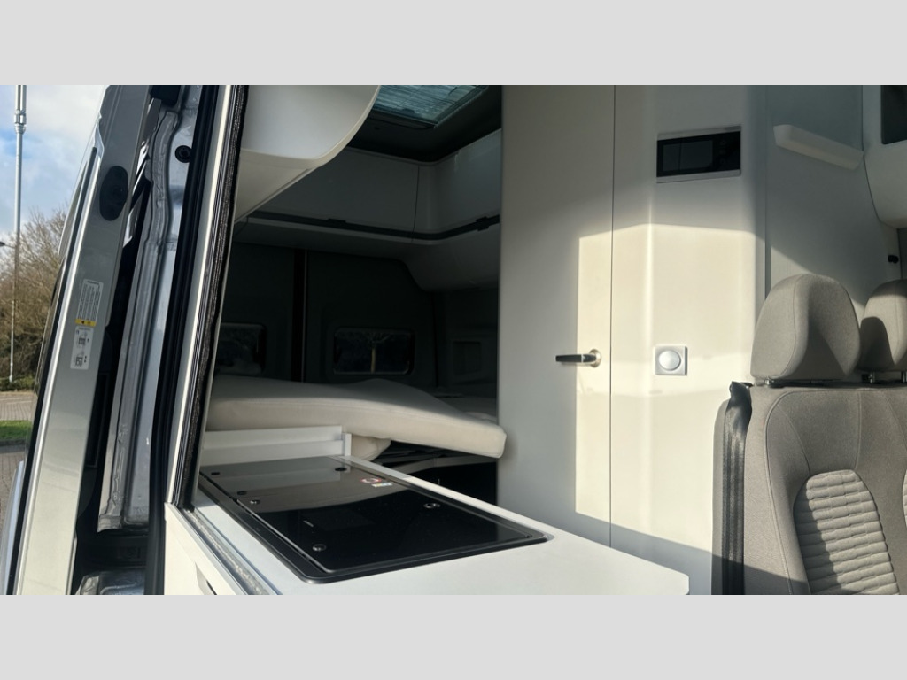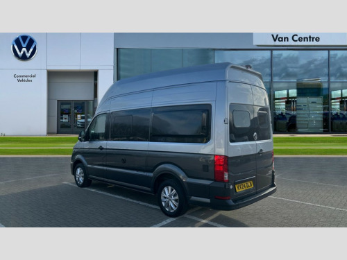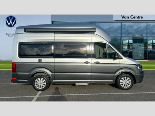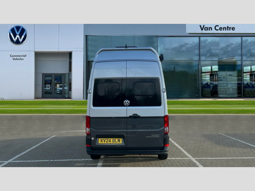Volkswagen Grand California 2.0 TDI 600 5dr Tip Auto [3.5T] Bluetooth connection, Central operating unit with touch control for monitoring heating, lighting and water levels, Compact motorhome with multifunctional interior, Cross wind assist, Driver alert system, eCall emergency call system, Electromechanical servotronic steering, Lane keeping assistant (LKA), Navigation system Discover Media with 4 speakers, Trip computer, We connect plus preparation, 75 litre fuel tank with lockable cap, Second battery - operating 12V voltage, DAB+ radio, 180 degree rear wing doors, Automatic hazard lights activation under emergency braking, Body colour bumpers, Electrically operated retractable step, Front fog lights with cornering function, Manual sliding side door - driver's side, Rear wash/wipe, Third brake light, Two piece mosquito nets on sliding door, Two sky lights with sliding blinds and fly screens, Windows with sliding blinds and fly screen, 110 litres fresh water storage tank, 4 x 230V electrical sockets, 70 litres fridge freezer compartment, 90 litres waste water tank, Climatic manually controlled air conditioning with dust and pollen filter and air recirculation, Dinette with 4 seats and table, Driver and passenger swivel seats with armrests, height and lumbar adjustment, Extendable work surface, Folding chairs and tables stored in rear doors, Front head restraints, Fully insulated living area with floor, roof and wall insulation, Gas storage cupboard for two bottles, Hob with two burners, Isofix child seat preparation, Leather trimmed multi function steering wheel with heating function, Multiple USB sockets in cab and living area, Rake/reach adjustable steering wheel, Rear bench seat, Rear headrests, Rubber floor covering in cab, Seat trim covers in valley fabric upholstery, Single front passenger seat, Sink with hot and cold water with folding tap, Transverse two person rear bed, Two 12V outlets in cab, Wet room with shower and cassette toilet, Lights and vision pack A - Grand California, 3 point inertia reel seatbelts - all 4 seats, Anti-lock braking system (ABS), Automatic post collision braking system, Child locks on rear doors, Driver/Front Passenger airbags, Electronic stabilisation programme (ESP) with load adjusting, Forward collision warning incl. autonomous emergency braking (AEB), Front assist with city emergency braking system, Hill start assist, Parking brake with hill hold control, Seat belt warning light for driver, Traction control system with ASR, Tyre pressure warning light, Anti theft alarm system with interior monitoring in cab, backup horn and towing protection, Engine immobiliser, Remote central locking with 2 remote keys, Tyre mobility kit Includes 12V compressor and tyre sealant