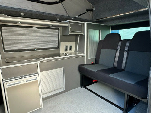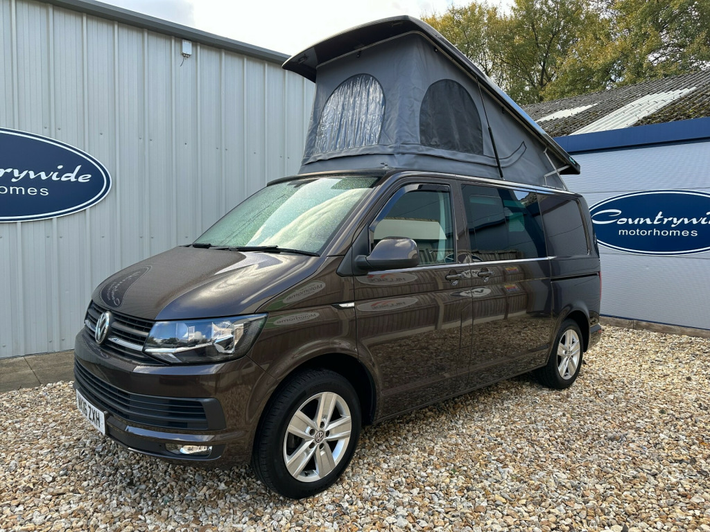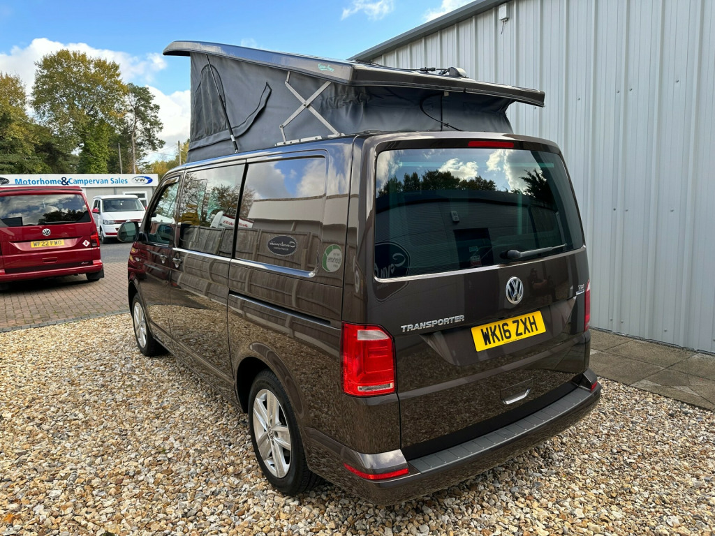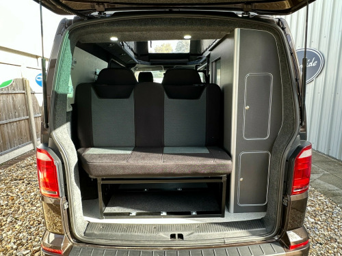 This Great looking Camper , With elevated roof and roof bed , Traditional side kitchen and Rock ' n ' Roll Bed at the rear.Limited Chocolate Brown Metallic paint work , A great looking VW with a lovely spec !!!!!Not to be missed call now 01202 855531 option 1 for Sales speak with one of our VW Specialists '' We have attempted to make the above description as accurate as possible but please bear in mind that honest mistakes can happen so this description cannot form any part of any future contract. Some items fitted to models on display may be excluded from said contract' 0 bhp engine, 2 berth, 240 mains & usb sockets, 6 speed manual, alloy wheels, battery charger, cab aircon, camera, cruise control, curtains, elevating roof, fridge, gas hob, leisure battery, lovely original condition, plgv (under 3.5t), rear park sensors, rear tailgate, sink, solar panel, sub 5.0 meter van, swivel cab seats