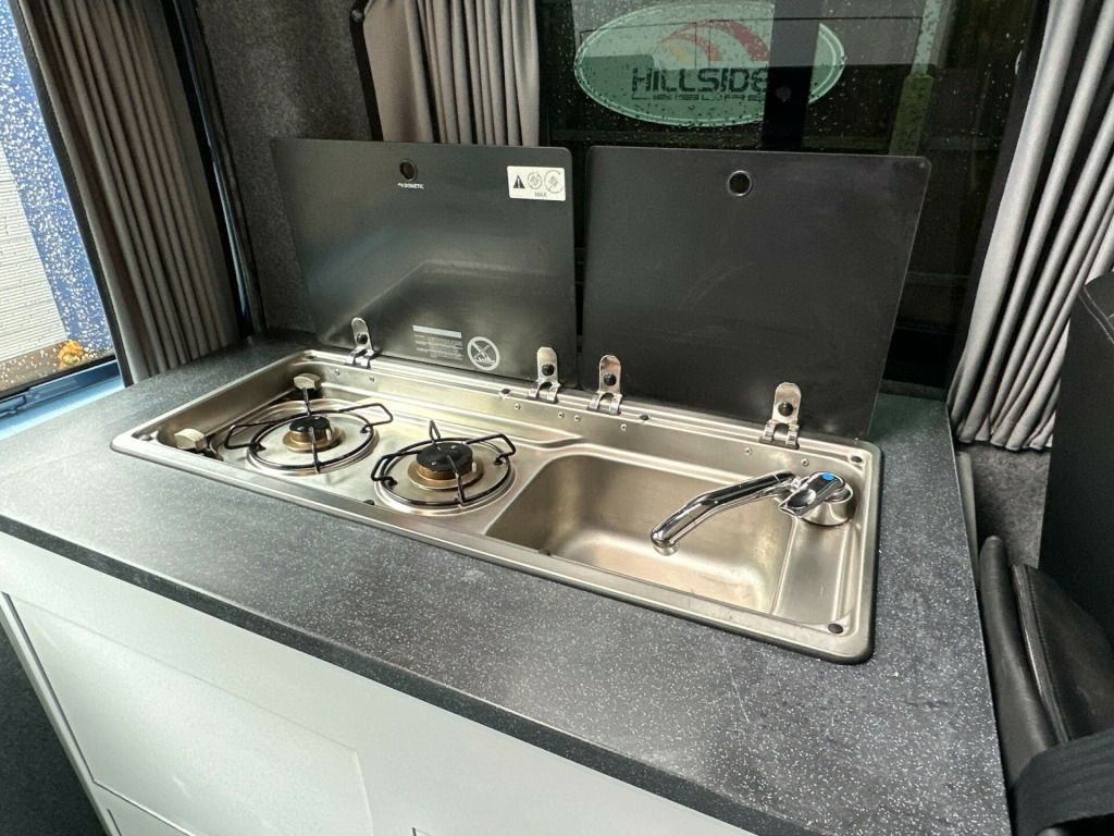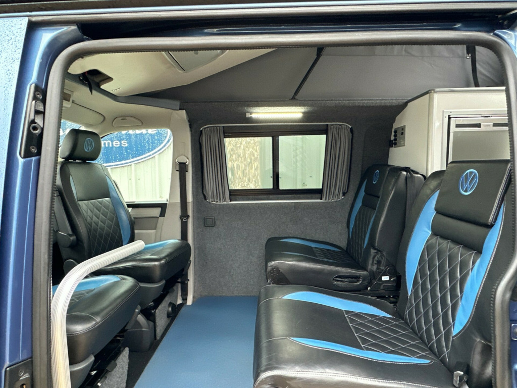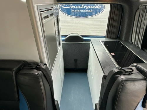 The well designed South Coast camper, with a reverse lift up elevated roof , to allow more standing room at the rear allowing access to storage and kitchen area,Two Single beds in to front using both the cab seas and a rear fold down seat, Also offering 4 seats belts. A great little camper with heated front seats, DSG gearbox, gas hob, sink diesel heating and fridge.Don't miss out call now 01202 855531 Option 1 for Sales and speak with a member of our award winning team !!!!!!!! '' We have attempted to make the above description as accurate as possible but please bear in mind that honest mistakes can happen so this description cannot form any part of any future contract. Some items fitted to models on display may be excluded from said contract' ib' bed system, 20 inch alloy wheels, cruise control, diesel heating, dsg automatic, elevating roof, front dinette with travelling seat belts, heated front screen, leather trim, plgv (under 3.5t), rear belts, rear tailgate, roof bed, single fixed beds , sub 6.0 m van , underslung gas tank, 12 volt fridge, 140 bhp engine, 2+2 berth, 4 berth, cab aircon, detachable towbar, heated cab seats, heated seats, rear park sensors, reimo elevated roof with luxurious mattress, swivel cab seats, tv aerial & tv fitted