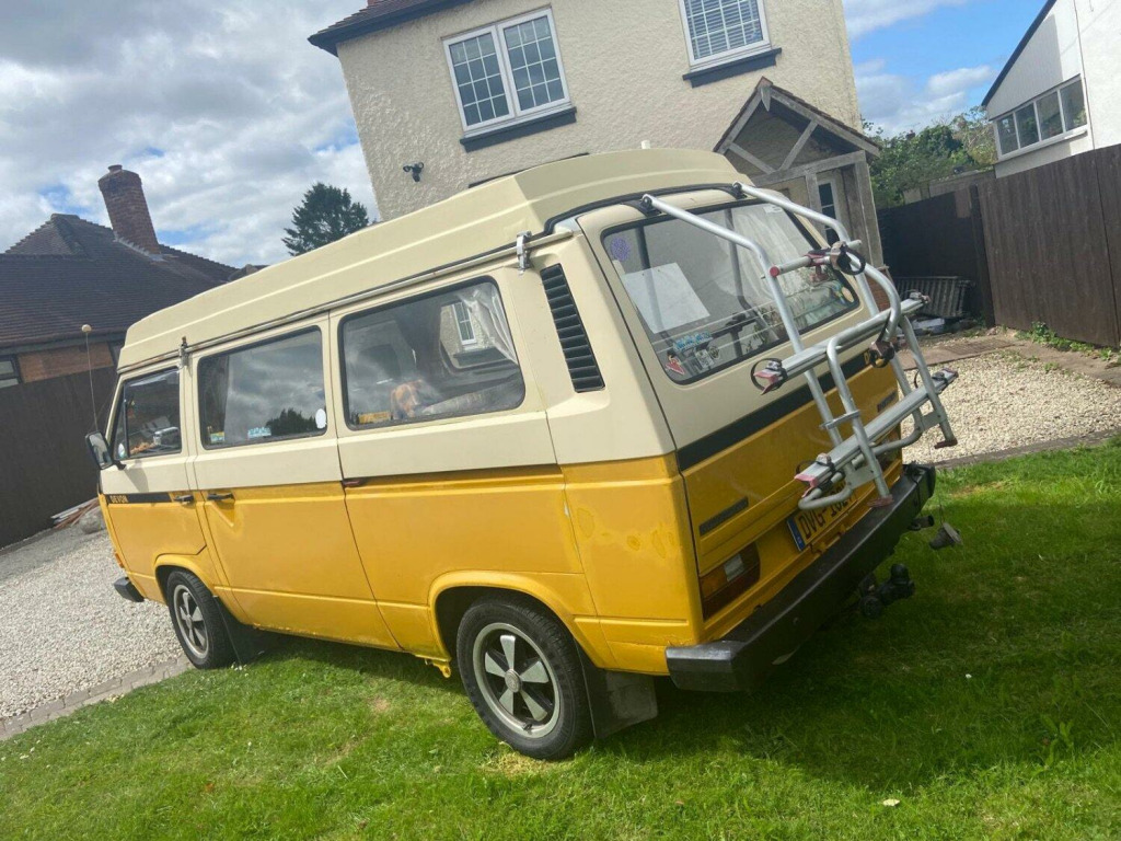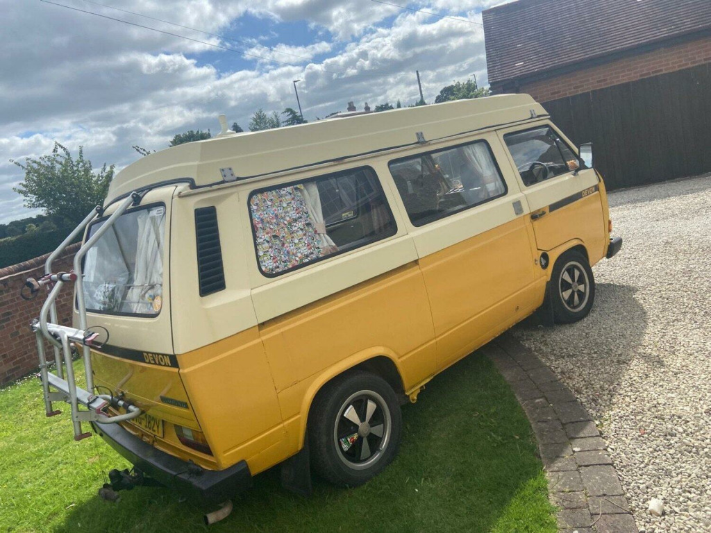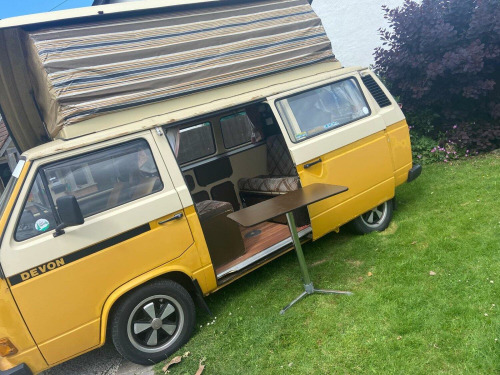 Air cooled Vw Devon camper. Only 89k miles. 4 Berth, Pop top, Cooker. Sink. Fridge. Rock and roll bed. Never let me down in 15 years of ownership. Feel free to come and take a look. Flaking paint from a re spray. Defo needs a respray, but we like how it looks. Solid van. If you know what you’re looking at then you’ll know as soon as you see it that it’s a good’n. New exhaust , New heat exchangers, Front Brakes and discs , Bushes. Links. Just back from holiday in Devon with no problems at all, Will come with a drive away tunnel awning that can sleep in also. We use as storage when holidaying. Full mot , Now tax and mot Exempt, Feel free to come take a look. Don’t come and pull it apart. I know my vans this is a good one. Just needs a re spray if you want it mint. We never bothered as we use it. It’s not a show pony. Inside is all original. Maybe new curtain rails. That’s it. It’s got 240 hook up. No leisure battery. Usual air cooled oil leak. Starts first time everytime after being laid up for the winter. With a re spray this would be a lot more. We just don’t as a family use it any more. Kids are doing their own thing now sadly. Located in a village just out of Derby. I won’t do a deal unless it has been viewed. It needs to be seen for me to take any offers seriously. Be sad to see her go.