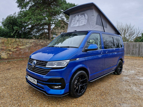 ONSITE IN STOCK AND AVAILABLE TO BUY TODAY THIS TOTALLY STUNNING BRAND NEW DELIVERY MILES 2024 74 REG VW T6.1 2.0 TDI 150PS DSG HIGHLINE EURO 6 4 BERTH POP TOP LUXURY CAMPER VAN CONVERSION WITH TAILGATE IN VW RAVENNA BLUE METALLIC, Balance Of 3 Year 100,000 Mile Vehicle VW Warranty, Factory Fitted LED Headlights And Rear Lights, This Is Our Luxury Conversion With Soft Closed Draws And Soft Closed Cupboard Doors, Carbon Fiber Gloss Wood Interior With White Gloss Work Top And Splash Backs, Diesel Heating System With Digital Thermostat, Fitted Microwave, Vanshade Blinds, Fast Wireless Worktop Phone Charger, USB Charger Points Either Side Of The Rear Bed Plus Two Charge Points In The Roof, Fitted Rear Speakers For Rear Passengers, Courtesy Lighting In The Rear Of The Conversion, LV-S Body Kit, Side Bars, Brand New Correctly Load Rated 20 Alloy Wheels, M1 Crash Tested RIB Bed With Isofix, Heated Front Seats, Roof Mounted Slimline Off Grid Solar Kit With Charge Control, Under Counter Lighting Package, Free Standing Table To Use Both Inside And Outside With Its Own Table Store Within The Sliding Door, Pull Out Work Top Table, Air Conditioning, Factory Fitted Electric Windows And Mirrors, Heated Mirrors, Power Folding Mirrors, Blue Tooth, App Connect DAB Radio, Front And Rear Distance Parking Sensors, Colour Rear Parking Camera, Active Cruise Control, Heated Front Screen, Front Fog Lamps, Automatic Lights And Wipers, Multi Function Leather Steering Wheel, Competitive Rates Of Finance Available Subject to Status With Finance Deals Available With Up To 12.5 Years Terms, Our Professional Conversion Also Has The Following Standard Features, Double Passenger Swivel Seat (Single Passenger Seat Upgrades Available), Reimo Style M1 Tested Elevating Roof With Double Bed Up Top, 12 Volt Compressor Fridge Freezer, Double Gas Hob And Sink Unit Including Bespoke Chopping Board, Power Management System With Split Charger, Fully Lined, 240v Power Sockets , Electric Hook Up, Porta Potti Storage Cupboard, 27 Litre Underslung Water Tank, Blast Proof Gas Bottle Cupboard, LED Lighting