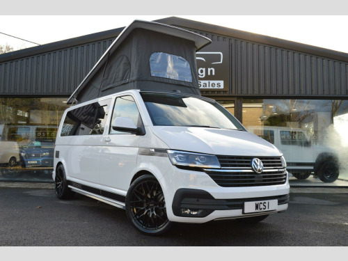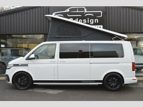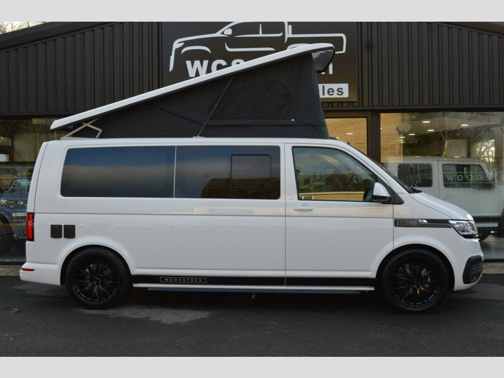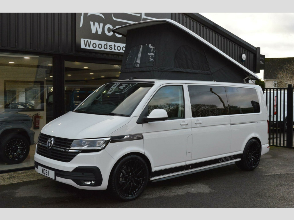 **OUR ULTIMATE SPECIFICATION* CONVERSION BY WOODSTOCK, WOODSTOCK LEATHER SEATS FRONT AND REAR, ROCK 'N' ROLL BED WITH 2 SEAT BELTS, BLACK POP-TOP WITH DOUBLE BED AND SCENIC CANVAS, DIESEL HEATER, HIGHLINE VAN WITH REAR CAMERA, LED HEADLIGHTS, DELUXE KITCHEN WITH COACHBUILT UNITS AND SOLID OAK WORKTOP, SINK, FRIDGE, LED LIGHTS, POWER SOCKETS, WATER TANK, WOODSTOCK DESIGN SPORT PACKAGE WITH 20 INCH WHEELS, BODY COLOUR BUMPERS, BODY COLOUR HANDLES AND WING MIRRORS, BLACK GLOSS GRILLE. 50MM LOWERING SPRINGS, TAILGATE, ARM RESTS, CARPLAY, REAR SENSORS, AIR CONDITIONING PLUS MUCH MORE. PART EXCHANGE WELCOME, FINANCE AVAILABLE. 20+ CAMPERVANS IN STOCK, BRAND NEW CONVERSIONS AVAILABLE TO YOUR SPEC, CHOICE OF COLOURS IN STOCK, SWB, LWB, MANUAL, AUTOMATIC, SELECTION OF USED CAMPERS IN STOCK INCLUDING CAMPERKING, KAMPERVANZ, DANBURY AND OTHERS. STOCK