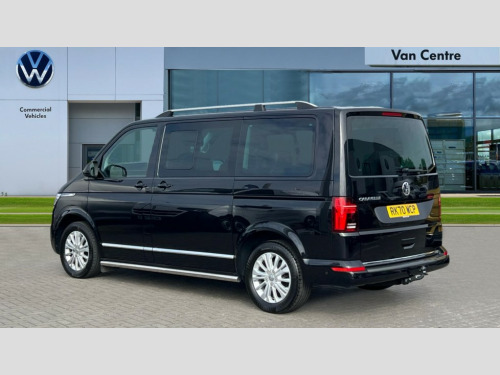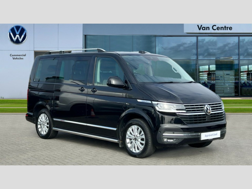 Volkswagen Caravelle 2.0 TDI Executive 199 5dr DSG Adaptive cruise control including speed limiter and city emergency braking, Bluetooth handsfree set, Coolant temperature indicator, Cross wind assist, Digital clock, Digital cockpit and driver alert system, eCall emergency system, Electric tailgate without interior release, Mobile phone interface comfort with inductive charging feature, Navigation system preparation, Rear gate with window aperture and power opening and closing, Rest assist, Service interval indicator, Start/stop system with regenerative braking, Tailgate power latching without unlatching from the inside, Trip computer, Voice control system, Warning lights, Wired and wireless app connect, 16 inch chassis with 16 inch brake system, Differential lock, Lowered dynamic chassis by approx 20mm, 2 (type C) USB interfaces in dashboard, 2 USB charging sockets in the left C pillar, 6 speakers - 2 tweeters, 2 woofers, 2 full range speakers, DAB digital radio reception, 8 feet standard roof with mounting points for roof rack system, Additional dust seals on the outside, Automatic headlight control system, Automatic headlight range control, B pillar in glossy black contrasting colour adhesive film, Black radiator grille with 5 chrome trims with additional chrome trim at lower radiator grille, Body colour bumpers, Body coloured exterior door handles, Break away auto dimming rear view interior mirror, Caravelle nameplate on the fender and on the rear, Chrome trims in front lower air intake on the sides and in rear tailgate, Cornering front fog lights, Electric front windows, Exterior mirrors - power adjustable, heated and power folding, folding possible via vehicle key, Fixed side window front and rear in load/passenger compartment left and right, Heated washer nozzles in front and washer fluid level indicator, LED headlights with LED daytime running lights, Left and right convex exterior mirror, Manual coming and leaving home function, Rear window with heat insulating glass, heated, rear window wiper and washer system, Windshield wiper intermittent control with rain sensor, Without trailer hitch, 2 velour floor mats, 3 Spoke leather multi function steering wheel, Air recirculation system, Air vent in driver's door, Allergen filter, Armrest for both cab seats, Comfort headliner in cab and headliner for recirculated air vents in passenger compartment, Comfort seat on the left and right, in 1st row of seats (not swiveling), Dashboard illuminated dimmable instruments, Electromechanical speed sensitive power steering, height and longitudinally adjustable steering column, Front cupholder, Front/rear reading lights, Glove compartment with illumination, Grab handles on A pillar for access, on driver and front passenger side, Height and tilt adjustable head restraints for all seats, Illuminated steps in passenger/load compartment, Interior lighting with LED technology in load/passenger compartment, Interior lighting with switch off delay and contact switches on all doors, Interior loading edge protection in stainless steel, ISOFIX and top tether child seat anchorage in 2nd to 4th rows, Jack and tool kit, Lashing rings for load restraint system for reinforced floor covering, Leather handbrake grip, Lockable glovebox, Luggage compartment cover, Lumbar support on the left and right single seat in the 1st row of seats(Both manually adjustable), Passenger compartment side trim panel with leather look mirror, Rail seat system in passenger compartment, Rear cupholders, Refrigerant R1234yf, Reinforced carpet floor covering in passenger compartment, Roller blinds for side windows, Seat height adjustment for left and right single seat in cab, Separately controllable seat heater in cab, left and right, Soft folding grab handles on roof frame, Special interior noise suppression measures, Special sound deadening measures in cab and passenger compartment, Stainless steel load sill protection, Step illumination with caravelle lettering, Storage compartment on outer side of front seats, Storage net on lower dash passenger side, Storage pockets in backrests of front seats, Sun visors with illuminated mirror and airbag label on front passenger sun visor, Sunshades for side windows in passenger compartment, Two 12V accessory power outlets, Variable intensity instrument illumination, Velour non woven floor covering in cab, Chrome pack - Caravelle, Non smokers pack - Caravelle, 3 point automatic seatbelts in rear, Brake pad warning light, Driver and front passenger airbag with front passenger airbag deactivation, Electronic brake force distribution, Electronic stability control, ABS, ASR with deactivation button, hill start assist, brake assist system, Front assist with autonomous emergency braking, Front side airbags with curtain airbags for driver and front passenger, Height adjustable 3 point seat belts on outer seats in cab with electric pretensioners, Power operated child safety locks, Single tone horn, Traction control, Warning buzzer and light for driver seat belt not fastened, Alarm deactivation switch of interior and tow away protection on B pillar, Anti theft alarm system with interior monitoring in cab, backup horn and towing protection, Central locking system with radio remote control, system controls inside and safelock, Deadlocks, Electronic immobiliser, Lockable fuel cap, Locking wheel bolts, Comfort dashboard titanium black lower part with black chrome elements and bezels, Pewter wave grey decorative inserts