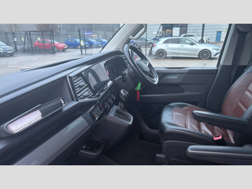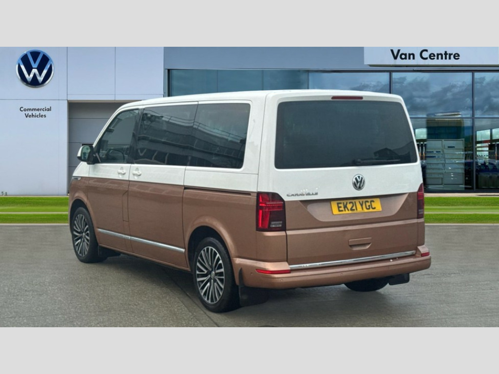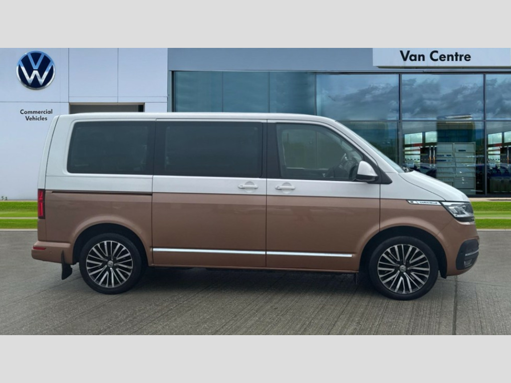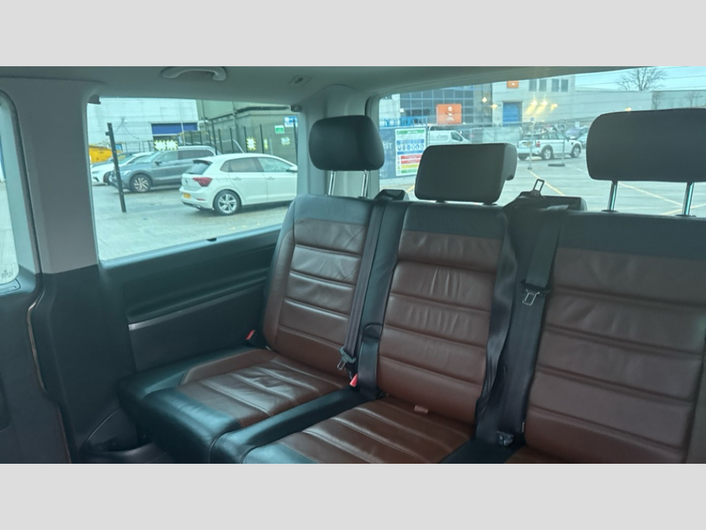 Volkswagen Caravelle 2.0 TDI Executive 204 5dr DSG Adaptive cruise control including speed limiter and city emergency braking, Bluetooth handsfree set, Coolant temperature indicator, Cross wind assist, Digital clock, Digital cockpit and driver alert system, eCall emergency system, Electric tailgate without interior release, Mobile phone interface comfort with inductive charging feature, Navigation system preparation, Rear gate with window aperture and power opening and closing, Rest assist, Service interval indicator, Start/stop system with regenerative braking, Tailgate power latching without unlatching from the inside, Trip computer, Voice control system, Warning lights, Wired and wireless app connect, 16 inch chassis with 16 inch brake system, Differential lock, 2 (type C) USB interfaces in dashboard, 2 USB charging sockets in the left C pillar, 6 speakers - 2 tweeters, 2 woofers, 2 full range speakers, DAB digital radio reception, 8 feet standard roof with mounting points for roof rack system, Additional dust seals on the outside, Automatic headlight control system, Automatic headlight range control, B pillar in glossy black contrasting colour adhesive film, Black radiator grille with 5 chrome trims with additional chrome trim at lower radiator grille, Body colour bumpers, Body coloured exterior door handles, Break away auto dimming rear view interior mirror, Caravelle nameplate on the fender and on the rear, Chrome trims in front lower air intake on the sides and in rear tailgate, Electric front windows, Exterior mirrors - power adjustable, heated and power folding, folding possible via vehicle key, Fixed side window front and rear in load/passenger compartment left and right, Heated washer nozzles in front and washer fluid level indicator, LED headlights with LED daytime running lights, Left and right convex exterior mirror, Manual coming and leaving home function, Rear window with heat insulating glass, heated, rear window wiper and washer system, Windshield wiper intermittent control with rain sensor, Without trailer hitch, 2 velour floor mats, 3 Spoke leather multi function steering wheel, Air recirculation system, Air vent in driver's door, Allergen filter, Armrest for both cab seats, Comfort headliner in cab and headliner for recirculated air vents in passenger compartment, Comfort seat on the left and right, in 1st row of seats (not swiveling), Dashboard illuminated dimmable instruments, Electromechanical speed sensitive power steering, height and longitudinally adjustable steering column, Front cupholder, Front/rear reading lights, Glove compartment with illumination, Grab handles on A pillar for access, on driver and front passenger side, Height and tilt adjustable head restraints for all seats, Illuminated steps in passenger/load compartment, Interior lighting with LED technology in load/passenger compartment, Interior lighting with switch off delay and contact switches on all doors, Interior loading edge protection in stainless steel, ISOFIX and top tether child seat anchorage in 2nd to 4th rows, Jack and tool kit, Lashing rings for load restraint system for reinforced floor covering, Leather handbrake grip, Lockable glovebox, Luggage compartment cover, Lumbar support on the left and right single seat in the 1st row of seats(Both manually adjustable), Passenger compartment side trim panel with leather look mirror, Rail seat system in passenger compartment, Rear cupholders, Refrigerant R1234yf, Reinforced carpet floor covering in passenger compartment, Roller blinds for side windows, Seat height adjustment for left and right single seat in cab, Separately controllable seat heater in cab, left and right, Soft folding grab handles on roof frame, Special interior noise suppression measures, Special sound deadening measures in cab and passenger compartment, Stainless steel load sill protection, Step illumination with caravelle lettering, Storage compartment on outer side of front seats, Storage net on lower dash passenger side, Storage pockets in backrests of front seats, Sun visors with illuminated mirror and airbag label on front passenger sun visor, Sunshades for side windows in passenger compartment, Two 12V accessory power outlets, Variable intensity instrument illumination, Velour non woven floor covering in cab, Chrome pack - Caravelle, Non smokers pack - Caravelle, 3 point automatic seatbelts in rear, Brake pad warning light, Driver and front passenger airbag with front passenger airbag deactivation, Electronic brake force distribution, Electronic stability control, ABS, ASR with deactivation button, hill start assist, brake assist system, Front assist with autonomous emergency braking, Front side airbags with curtain airbags for driver and front passenger, Height adjustable 3 point seat belts on outer seats in cab with electric pretensioners, Power operated child safety locks, Single tone horn, Traction control, Warning buzzer and light for driver seat belt not fastened, Alarm deactivation switch of interior and tow away protection on B pillar, Anti theft alarm system with interior monitoring in cab, backup horn and towing protection, Central locking system with radio remote control, system controls inside and safelock, Deadlocks, Electronic immobiliser, Lockable fuel cap, Locking wheel bolts, Comfort dashboard titanium black lower part with black chrome elements and bezels, Pewter wave grey decorative inserts