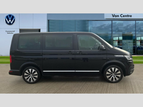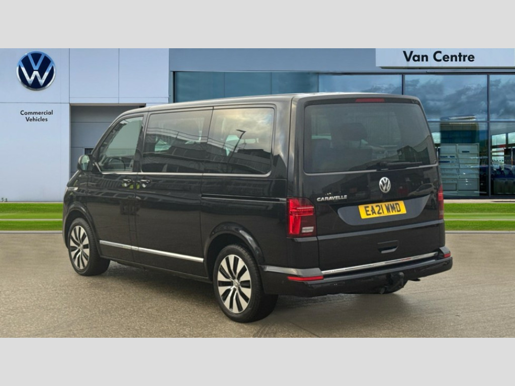 Volkswagen Caravelle 2.0 TDI Executive 204 5dr DSG Adaptive cruise control including speed limiter and city emergency braking, Bluetooth handsfree set, Coolant temperature indicator, Cross wind assist, Digital clock, Digital cockpit and driver alert system, eCall emergency system, Electric tailgate without interior release, Mobile phone interface comfort with inductive charging feature, Navigation system preparation, Rear gate with window aperture and power opening and closing, Rest assist, Service interval indicator, Start/stop system with regenerative braking, Tailgate power latching without unlatching from the inside, Trip computer, Voice control system, Warning lights, Wired and wireless app connect, 16 inch chassis with 16 inch brake system, Differential lock, 2 (type C) USB interfaces in dashboard, 2 USB charging sockets in the left C pillar, 6 speakers - 2 tweeters, 2 woofers, 2 full range speakers, DAB digital radio reception, 8 feet standard roof with mounting points for roof rack system, Additional dust seals on the outside, Automatic headlight control system, Automatic headlight range control, B pillar in glossy black contrasting colour adhesive film, Black radiator grille with 5 chrome trims with additional chrome trim at lower radiator grille, Body colour bumpers, Body coloured exterior door handles, Break away auto dimming rear view interior mirror, Caravelle nameplate on the fender and on the rear, Chrome trims in front lower air intake on the sides and in rear tailgate, Electric front windows, Exterior mirrors - power adjustable, heated and power folding, folding possible via vehicle key, Fixed side window front and rear in load/passenger compartment left and right, Heated washer nozzles in front and washer fluid level indicator, LED headlights with LED daytime running lights, Left and right convex exterior mirror, Manual coming and leaving home function, Rear window with heat insulating glass, heated, rear window wiper and washer system, Windshield wiper intermittent control with rain sensor, Without trailer hitch, 2 velour floor mats, 3 Spoke leather multi function steering wheel, Air recirculation system, Air vent in driver's door, Allergen filter, Armrest for both cab seats, Comfort headliner in cab and headliner for recirculated air vents in passenger compartment, Comfort seat on the left and right, in 1st row of seats (not swiveling), Dashboard illuminated dimmable instruments, Electromechanical speed sensitive power steering, height and longitudinally adjustable steering column, Front cupholder, Front/rear reading lights, Glove compartment with illumination, Grab handles on A pillar for access, on driver and front passenger side, Height and tilt adjustable head restraints for all seats, Illuminated steps in passenger/load compartment, Interior lighting with LED technology in load/passenger compartment, Interior lighting with switch off delay and contact switches on all doors, Interior loading edge protection in stainless steel, ISOFIX and top tether child seat anchorage in 2nd to 4th rows, Jack and tool kit, Lashing rings for load restraint system for reinforced floor covering, Leather handbrake grip, Lockable glovebox, Luggage compartment cover, Lumbar support on the left and right single seat in the 1st row of seats(Both manually adjustable), Passenger compartment side trim panel with leather look mirror, Rail seat system in passenger compartment, Rear cupholders, Refrigerant R1234yf, Reinforced carpet floor covering in passenger compartment, Roller blinds for side windows, Seat height adjustment for left and right single seat in cab, Separately controllable seat heater in cab, left and right, Soft folding grab handles on roof frame, Special interior noise suppression measures, Special sound deadening measures in cab and passenger compartment, Stainless steel load sill protection, Step illumination with caravelle lettering, Storage compartment on outer side of front seats, Storage net on lower dash passenger side, Storage pockets in backrests of front seats, Sun visors with illuminated mirror and airbag label on front passenger sun visor, Sunshades for side windows in passenger compartment, Two 12V accessory power outlets, Variable intensity instrument illumination, Velour non woven floor covering in cab, Chrome pack - Caravelle, Non smokers pack - Caravelle, 3 point automatic seatbelts in rear, Brake pad warning light, Driver and front passenger airbag with front passenger airbag deactivation, Electronic brake force distribution, Electronic stability control, ABS, ASR with deactivation button, hill start assist, brake assist system, Front assist with autonomous emergency braking, Front side airbags with curtain airbags for driver and front passenger, Height adjustable 3 point seat belts on outer seats in cab with electric pretensioners, Power operated child safety locks, Single tone horn, Traction control, Warning buzzer and light for driver seat belt not fastened, Alarm deactivation switch of interior and tow away protection on B pillar, Anti theft alarm system with interior monitoring in cab, backup horn and towing protection, Central locking system with radio remote control, system controls inside and safelock, Deadlocks, Electronic immobiliser, Lockable fuel cap, Locking wheel bolts, Comfort dashboard titanium black lower part with black chrome elements and bezels, Pewter wave grey decorative inserts