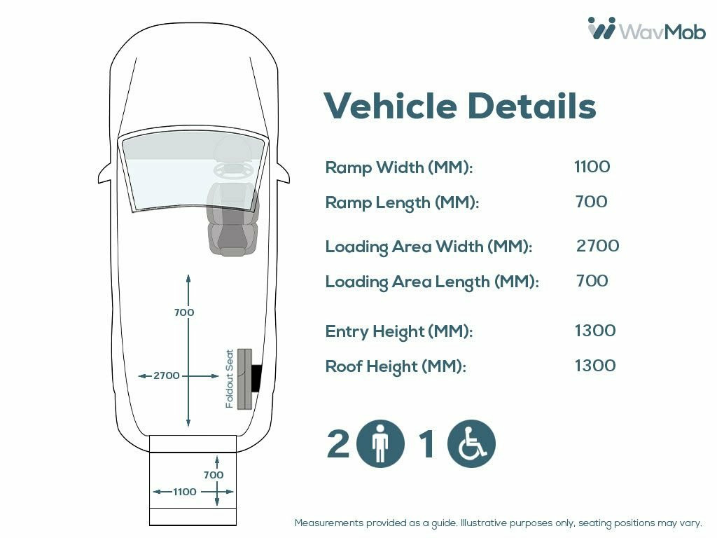 This Lewis Reed converted Volkswagen Caravelle Wheelchair Accessible Vehicle (WAV) has 2 Seats (1 Front and 1 Rear). Equipment includes Power Tailgate and Power Wheelchair Ramp, Passenger Up Front Wheelchair Position, Air Conditioning, Electric Front Windows, Electric Adjustable Wing Mirrors, Power Steering, Remote Central Locking, Tinted Rear Windows.