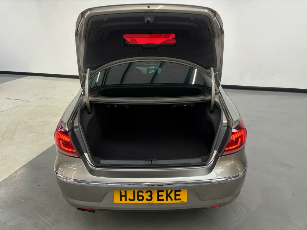For more info, contact Matt: 07555 272603. This 2013 Volkswagen CC- GT is a rare find as a petrol model and is a stunning example in lovely, original condition that has been looked after and maintained to the highest standard. Just 41,000 genuine miles by 2 previous owners, the service History is incredible- it certainly has a full service history which documents 11 services; 10 by the VW main dealer, including a DSG gearbox service 37,973 mls, and the 11th service ( 40,813 mls) by Volkswagen Addictions, VW specialists in Southport. In addition to the service book, we have every supporting invoice, plus maintenance receipts and every previous MOT. This particular example is finished in the sought after GT trim and comes with great specification. Finished in a lovely Grey-Brown metallic with upgraded Two-Tone Truffle and Black sports leather interior, which gives the car a very stylish look; the seats are heated with height adjustment for both driver and passenger and have electric 6-way Lumbar support. There is a media system with integrated reversing camera, Satellite Navigation, Bluetooth and DAB stereo; other features include, climate-control air conditioning, front and rear parking sensors, auto Xenon lights, rain sensors, split folding rear seats with through-load, upgraded interior wood trim, and full-size spare wheel, to name a few features! The condition is fantastic, it's rust-free, the whole exterior is in lovely condition with original paint, the 18 inch alloys are all excellent, and the interior has been kept in perfect condition. The mechanical condition is equally impressive, thanks to it's very thorough maintenance history, it drives beautifully and delivers excellent performance, boasting a swift 0-62mph acceleration time of just 7.3 seconds. The combination of condition, low mileage, excellent features, and strong performance makes this Volkswagen CC a truly Special car. in alloy wheels - interlagos, heated front seats, rns 315 touch screen satellite navigation and radio system, bluetooth telephone preparation for hands free profile enabled telephones, dab+ - digital radio reception, dash-mounted mp3 compatible cd player, mdi - multi device interface, sd card reader, bi-xenon headlights, headlights - dusk sensor - automatic driving lights, cruise control, drivers seat height adjustment, seats - height adjustment - front passenger, 12v socket - centre console, 2 zone electronic climate control with automatic air recirculation, central locking with remote control, parking sensors - front and rear, rain sensor, seats - front sports, seats - drivers 6-way electric adjustment, seats - front lumbar support, hill hold assist, door mirrors - electrically adjustable and heated, electric windows - front and rear, headlight washer system, abs - anti-lock braking system, acc - adaptive chassis control, airbags - front passenger with deactivation switch, alarm with interior protection, armrest - front centre with storage compartment, automatic dimming rear view mirror, bas - brake assist system, cup holders - front x2, cup holders - rear x2, door mirrors - body coloured with integrated indicators led, ebd - electronic brake pressure distribution, esp - electronic stability programme, front fog lights, headlights - coming-leaving home function, heated rear window, heated windscreen washer jets, height and reach adjustable steering column, height-adjustable front three-point seat belts with tensioners, isofix child seat preparation - outer rear, interior lighting - front and rear with interior delay and dimming function, leather trimmed three-spoke steering wheel and gear knob, load lashing points x2 in luggage compartment, load-through provision, multifunction computer, power assisted steering - speed sensitive, reading lights - front x2, rear centre armrest, spare wheel - full size alloy, seats - split folding rear, stainless steel door sills - front and rear, steering wheel - multifunction, storage compartment in roof console, storage tray in centre console, sun visors - vanity mirrors and illuminated, suspension - sports - lowered by approx 15mm, tinted glass - heat insulating rear 65 percent light absorbing from b pillar backwards, xds electronic differential lock, nappa leather - truffle/black, trim - interior - ebony