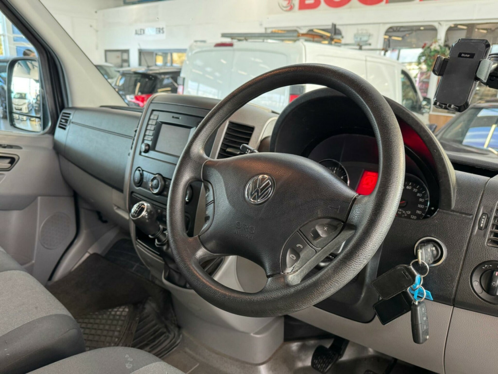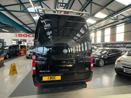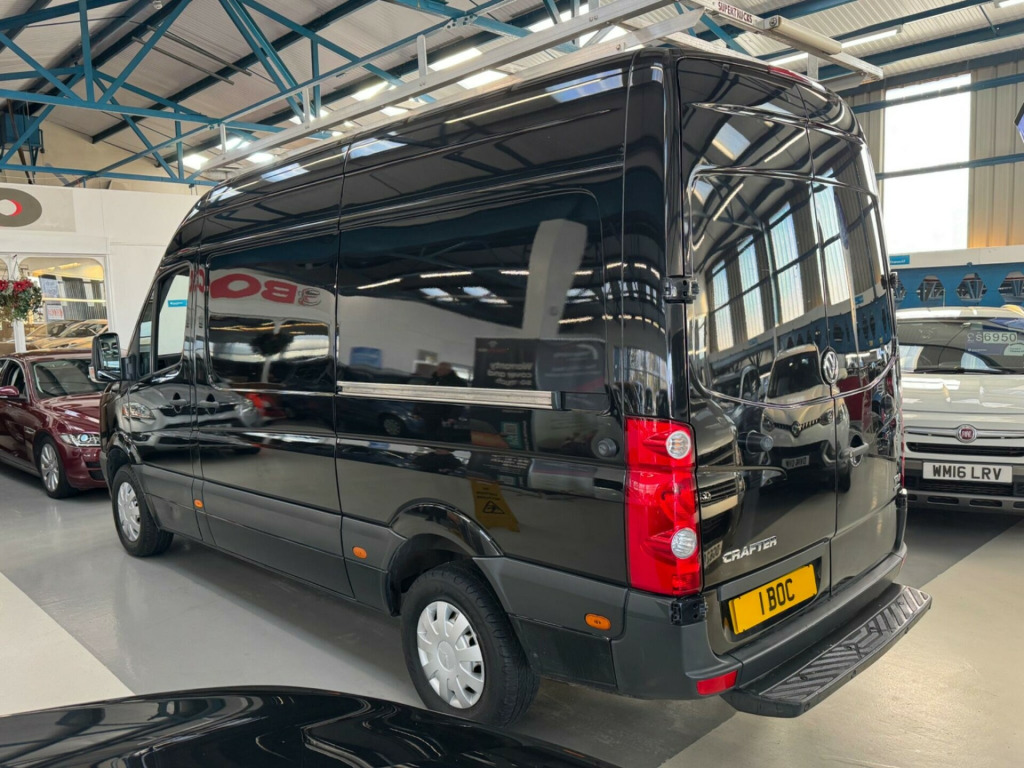 Finished in Saphhire Black this 2016 66 Euro 6 Volkswagen Crafter Medium wheel base presents itself in the highest rank in terms of the best Crafters available today! Having been meticulously maintained by a single owner from new, Used very sparingly as a sole driver and maintained regardless of little use. This is a Top Spec with Air conditioning as a factory option. Superb Base Camper van with super low miles, Immaculate condition throughout, Just One owner, Full Service History. With a remarkably low mileage of just 62,339 miles for its age, this 2.0 TDI BlueMotion Tech CR35 L2 H3 5dr model is a testament to careful use. It features a robust 2.0 litre diesel engine, compliant with Euro 6 emissions standards, and boasts an impressive 138 bhp. Furthermore, a clear vehicle history check confirms its sound condition.Comes with a 12 Months Mot, Service on sale with health-check, Full Book pack and 6 Months warranty.The TDI CR35 variant, in its CR35 trim, offers a compelling blend of performance and efficiency. The engine power of 138 bhp indicates a strong capability for its class, suggesting it performs better than many comparable vehicles. This low mileage and single owner history collectively highlight its superior condition and potential for continued reliable service, making it a distinguished choice for your needs.Choice of upto 100 Used Vans, Please see our website. Please note: Our Stock is very carefully hand picked and is usually outstanding, We provide a professional and efficient customer experience and therefore do not offer any discounts. Please see our reviews regarding warranty and what customers have had to say. We have the very best stock of used vans, It is as simple and as clear as that! Not to be confused with cheaper work vans with lower spec, patchy history records and dodgy sellers! v socket, airbag driver, anti-lock brake system (abs), bluetooth, central door locking - remote central locking with two remote keys, centre high-mounted stop light, daytime running function, digital clock, drivers seat armrest, drivers seat with height, reach and rake adjustment, electric front windows, electrically adjustable and heated door mirrors, electronic brakeforce distribution (ebd), electronic differential lock (edl), electronic stabilisation programme (esp), engine immobiliser, five drinks holders, full-height steel bulkhead without window, full-size spare wheel, heat-reflective glass, height-adjustable head restraints, lamp failure check unit, multi-function display, multi-function steering wheel, passenger - side sliding door, power assisted steering, rsd 4000 radio/audio interface, rear wing doors with 270 degree hinges, standard suspension, steel wheels-6.5jx16in 235/65 r16, steering wheel with reach and rake adjustment, tasamo fabric seat covers (anthracite), traction control system (tcs), two folding and pivoted sun visors