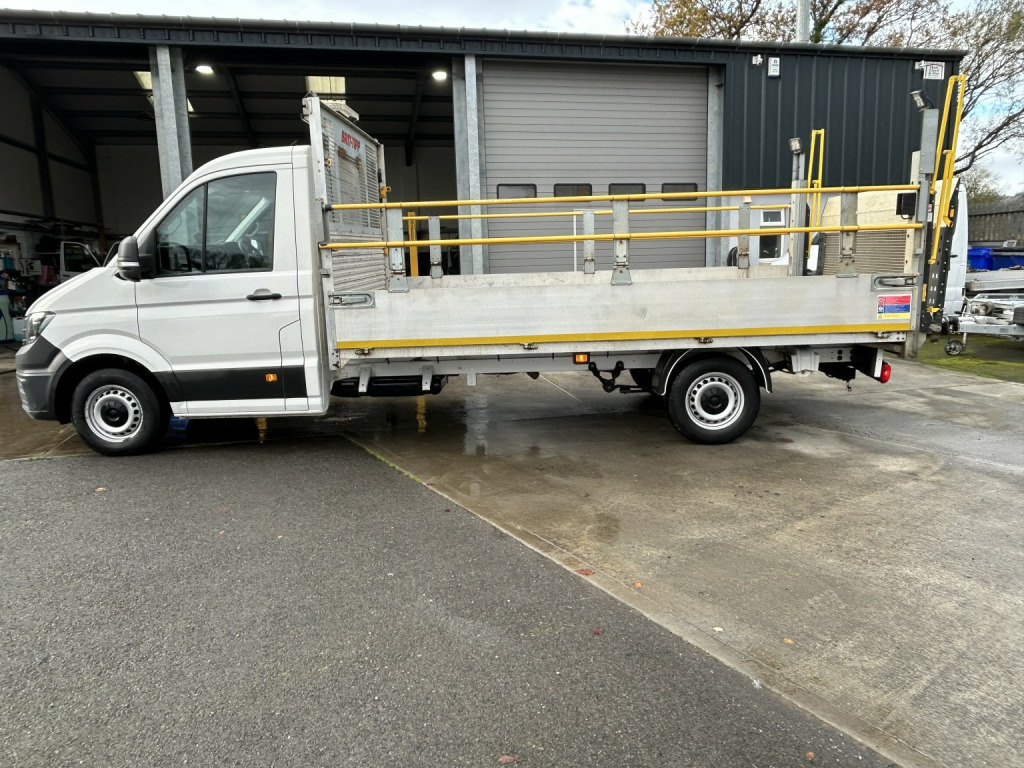 Volkswagen Crafter 2.0 TDI CR35 140BHP Startline SINGLE CAB DROPSIDE TAIL LIFT finished in White (Manual), 62700 miles, 1 Lease Company Owner, Single Cab Dropside, Long Wheelbase, 140 BHP, Bluetooth Connection, Air Conditioning, PAS, Steering wheel mounted controls, Trip computer, Front electric windows, Solid Paint, ABS, Drivers airbag, Remote central locking, Tow Bar, Beacon