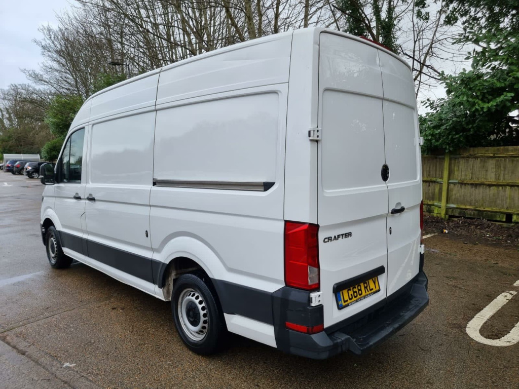 This 2018 Volkswagen Crafter presents a superb ownership history, having been meticulously maintained by just one owner from new. This panel van, a 2.0 TDI CR35 Startline FWD MWB High Roof model, is powered by an efficient 2.0 litre Euro 6 diesel engine and features a practical Startline trim. It offers a substantial towing weight of 3000 kg, making it a capable workhorse. For your convenience, it includes two 12V sockets at the front and a Composition Audio system with Bluetooth connectivity, ensuring you can stay connected and powered up on the go.The Crafter's Euro 6 compliant engine signifies its adherence to modern emissions standards, contributing to lower running costs and environmental impact. The inclusion of Bluetooth connectivity with the Composition Audio system enhances your driving experience by allowing for hands free calls and music streaming. These aspects, combined with its single owner provenance and robust towing capacity, position this Volkswagen Crafter as a distinguished choice for those seeking reliability and functionality in a commercial vehicle. v socket - front x2, 16in steel wheels, 1x remote control folding key - 1 rigid key, abs - anti-lock braking system, airbags - driver, automatic hazard lights activation under emergency braking, automatic post-collision braking system, basic single drivers seat, composition audio, crosswind assist, driver alert system, dual passenger seat in cab with storage compartment and folding tray in backrest, eba - electronic brake assist, esp - electronic stability programme - load adjusting, electric windows - front, electromechanical servotronic steering, engine immobiliser, front assist including city emergency braking, full height steel bulkhead without window, full size steel spare wheel, glove compartment - illuminated with lockable lid, halogen main headlights with range control and daytime running function, load lashing rings, lockable fuel filler cap, manual side sliding door - passenger side, parking brake - hill hold control, rear wing doors without windows, rubber floor covering, seatbelt warning light for driver, steering wheel - reach and rake adjustable, three point inertia reel seatbelts for all seats, tool kit and jack, two 12v outlets - dashboard, windscreen wiper with variable intermittent delay and wash-wipe system, wing mirrors - manually adjustable, without floor covering in cab, without floor covering in load compartment
