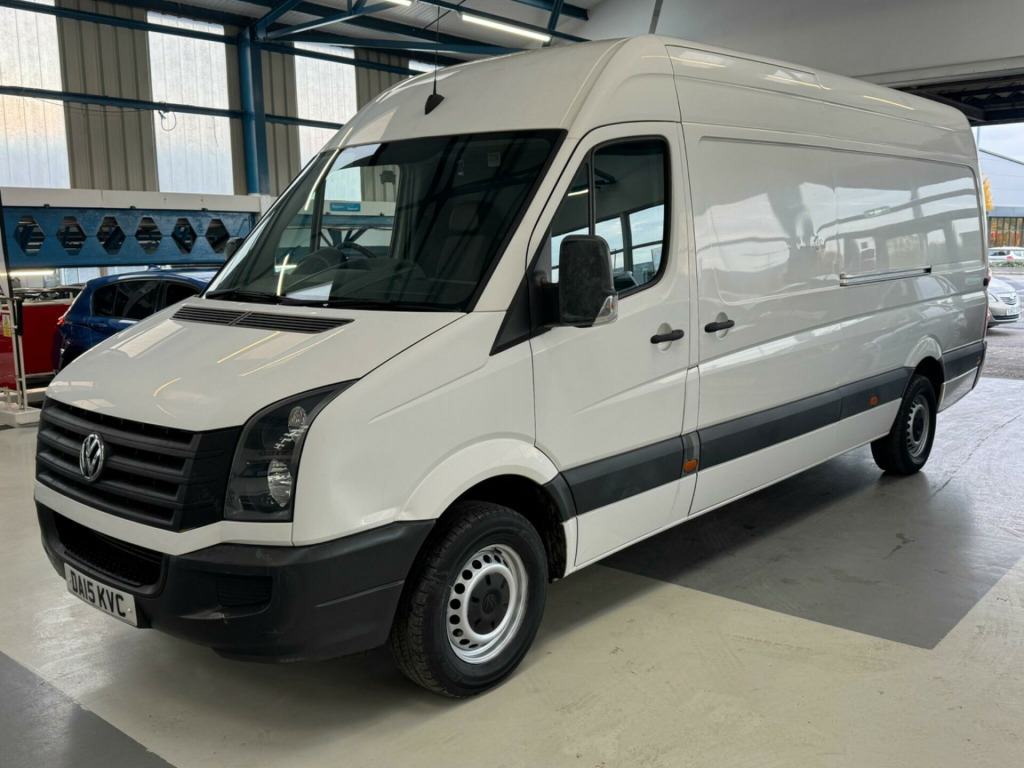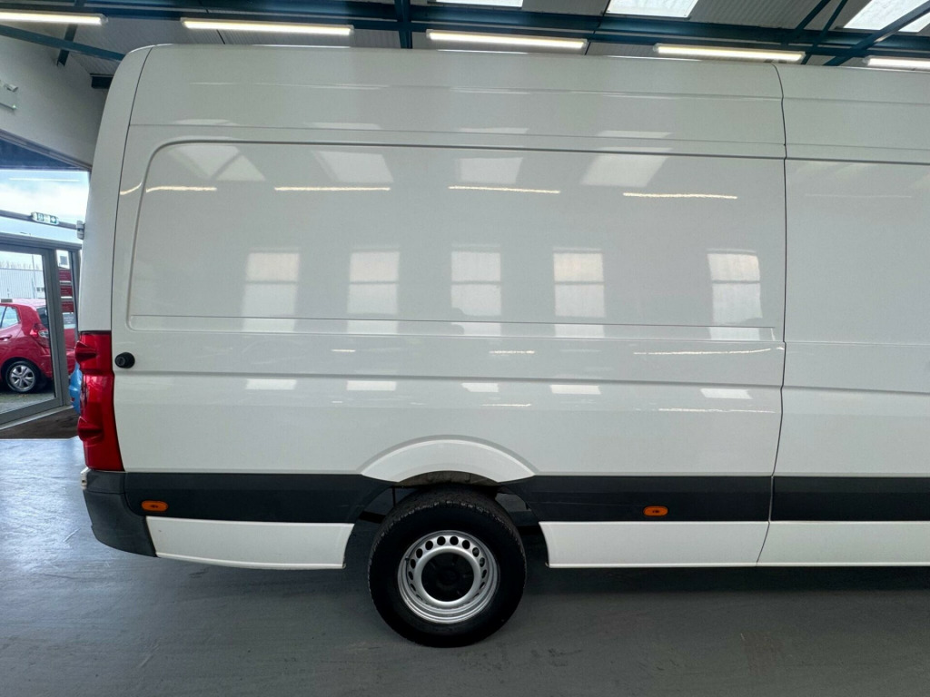This Long wheel base 2015 Volkswagen Crafter presents an exceptional opportunity with its remarkably low mileage of just 59,000 miles, especially considering its age, and has been owned by only one careful owner from new. This 2.0 TDI CR35 L3 H3 4dr model is equipped with a reliable 2.0 litre diesel engine and boasts a clear vehicle history check, offering peace of mind. Notable features include an entry grab handle on the rear pillar for easier access, 6.5Jx16 inch steel wheels fitted with 235/65 R16C tyres, and comfortable Tasamo fabric seat covers in Anthracite. The interior is enhanced with an interior light, and the practical passenger side sliding door further adds to its usability.Sold with 12 Months Mot on sale, 3 Months Warranty, Fully Serviced. Cam belt changed, Ready to go.The Volkswagen Crafter stands out due to its combination of a single owner history and very low mileage, only used for local private plumbing jobs. Very superior to the newer adblue models. Last of the stronger VW Vans. Very low miles suggesting it has been well looked after and used sparingly. The inclusion of the passenger side sliding door and the rear grab handle are practical additions that enhance the everyday functionality of this vehicle. These elements, alongside its robust 2.0 litre diesel engine and the comprehensive vehicle history check, position this Crafter as a superior choice for those seeking a dependable and well maintained commercial vehicle. v socket, 270 degree rear wing door, 6.5jx16in steel wheels with 235/65 r16c tyres, anti - lock braking system (abs) with electronic brake assist (eba), bluetooth, centre high-mounted stop light, digital clock, drivers airbag, drivers seat armrest, drivers seat wit height, reach and rake adjustment, dual passenger seat with storage box and folding tray in backrest, electric front windows, electrically adjustable and heated door mirrors, electronic brakeforce distribution (ebd), electronic differential lock (edl), electronic stabilisation programme (esp), engine immobiliser, entry grab handle - on rear pillar, rear right, full-height steel bulkhead without window, full-size spare wheel, height-adjustable head restraints, interior light, manual heating with charcoal filter and air recirculation, multi-function steering wheel with multi-function display, passenger-side sliding door, power steering, rsd 4000 radio/audio interface, rear wing doors with 270 degrees hinges, remote central locking with two remote keys, steering wheel with reach and rake adjustment, tool kit and jack, traction control system (tcs), two folding and pivoted sun visors, upholstery - tasamo fabric seat cover (anthracite)
