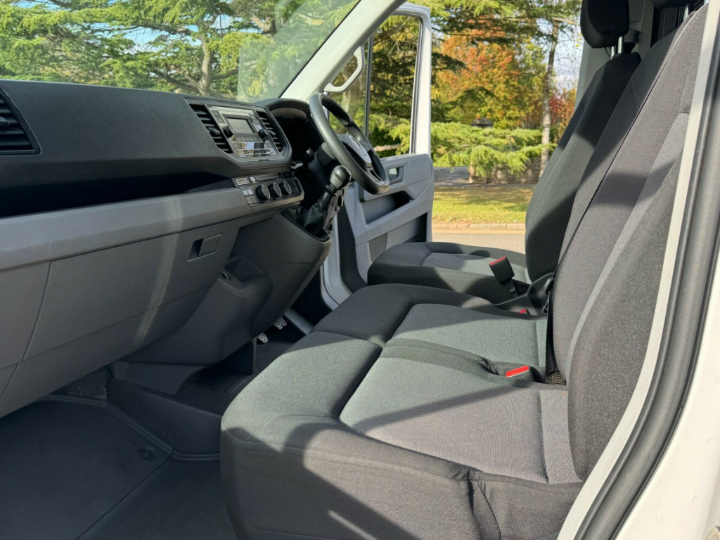 This 2020 Volkswagen Crafter boasts a full service history, ensuring its excellent provenance. This LWB High Roof panel van, a 2.0 TDI CR35 Startline FWD model, is powered by an efficient 2.0 litre Euro 6 diesel engine and has had only one owner from new. It comes equipped with Composition Audio, including Bluetooth connectivity for your convenience.With an impressive cargo volume of 14,400 litres, this Crafter offers substantial space for your business needs, exceeding many similar vehicles. Its towing weight of 3000 kg provides versatility for hauling equipment. Furthermore, the vehicle will be supplied with a 12 month MOT, giving you peace of mind regarding its roadworthiness. in steel wheels, 2 remote folding keys, 75 litre fuel tank with lockable cap, abs - anti-lock braking system, airbags - driver, automatic hazard lights activation under emergency braking, automatic post-collision braking system, basic single drivers seat, cfcu preparation, composition audio, crosswind assist, driver alert system, dual passenger seat in cab with storage compartment and folding tray in backrest, eba - electronic brake assist, esp - electronic stability programme - load adjusting, electric windows - front, electromechanical servotronic steering, engine immobiliser, front assist including city emergency braking, full height steel bulkhead without window, full size steel spare wheel, glove compartment - illuminated with lockable lid, halogen main headlights with range control and daytime running function, load lashing rings, manual side sliding door - passenger side, multi-function display, parking brake - hill hold control, rear wing doors without windows, remote central locking, rubber floor covering, seatbelt warning light for driver, side marker lights, steering wheel - reach and rake adjustable, three point inertia reel seatbelts for all seats, tool kit and jack, two 12v outlets - dashboard, unglazed rear wing doors with 180 degree door opening, windscreen wiper with variable intermittent delay and wash-wipe system, wing mirrors - manually adjustable, without floor covering in cab, without floor covering in load compartment, without rear side trim panel passenger load compartment