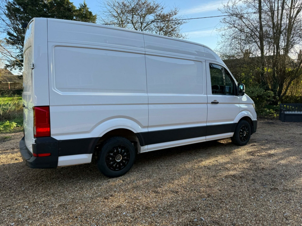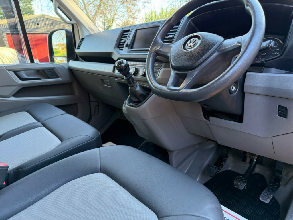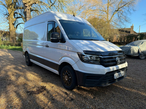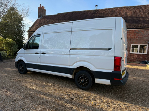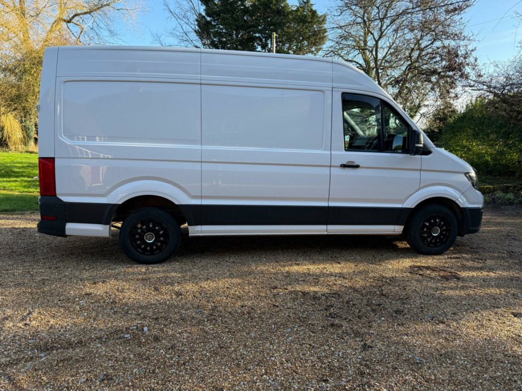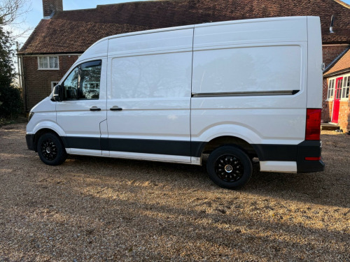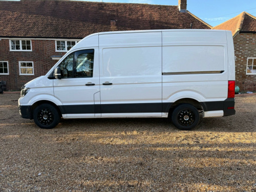 Commercial and Personal Finance available. Nationwide delivery available. Viewing by appointment only please. This 2020 Volkswagen Crafter is presented with a clear vehicle history check and will come with a 12 month MOT for your peace of mind. This MWB High Roof panel van features a 2.0 litre TDI diesel engine producing 140 bhp, and is a Euro 6 compliant model. The Startline trim offers practical features including Climatic Air Conditioning, front and rear parking sensors for easier manoeuvring, and the Composition Audio system with Navigation and Bluetooth connectivity for hands free calls and music streaming. With a towing weight of 3000 kg, this Crafter is well equipped for a variety of tasks.The 140 bhp output of the 2.0 TDI engine provides a strong performance, indicating its capability compared to other vehicles in its class. This Volkswagen Crafter, with its partial service history, offers a reliable and functional solution for your business needs, combining essential comfort features with robust performance and towing capacity. in steel wheels, 1x remote control folding key - 1 rigid key, 75 litre fuel tank, abs - anti-lock braking system, airbags - driver, automatic hazard lights activation under emergency braking, automatic post-collision braking system, basic single drivers seat, composition audio, crosswind assist, driver alert system, dual passenger seat in cab with storage compartment and folding tray in backrest, eba - electronic brake assist, esp - electronic stability programme - load adjusting, electric windows - front, electromechanical servotronic steering, engine immobiliser, front assist including city emergency braking, full size steel spare wheel, glove compartment - illuminated with lockable lid, halogen main headlights with range control and daytime running function, load lashing rings, lockable fuel filler cap, manual side sliding door - passenger side, multi-function display plus, parking brake - hill hold control, rear wing doors without windows, rubber floor covering, seatbelt warning light for driver, steering wheel - reach and rake adjustable, three point inertia reel seatbelts for all seats, tool kit and jack, two 12v outlets - dashboard, windscreen wiper with variable intermittent delay and wash-wipe system, wing mirrors - manually adjustable, without floor covering in cab, without floor covering in load compartment, without rear side trim panel passenger load compartment, 12v socket in load compartment and preparation for 230v exterior outlet, rear wing doors - 270 degree hinges, side marker lights, parking sensors - front and rear, dab digital radio, climatic air conditioning