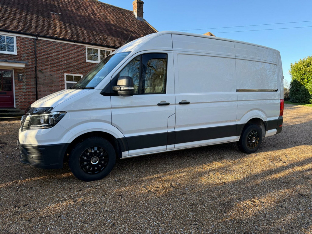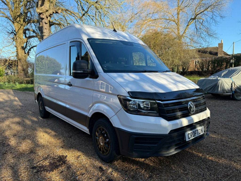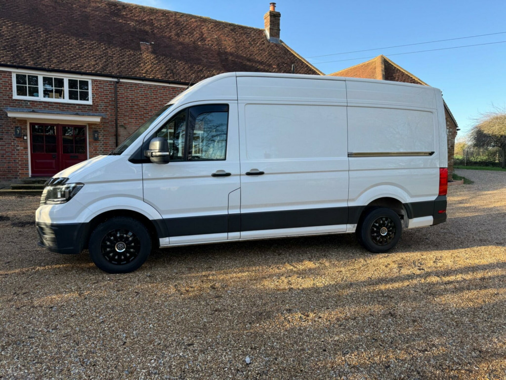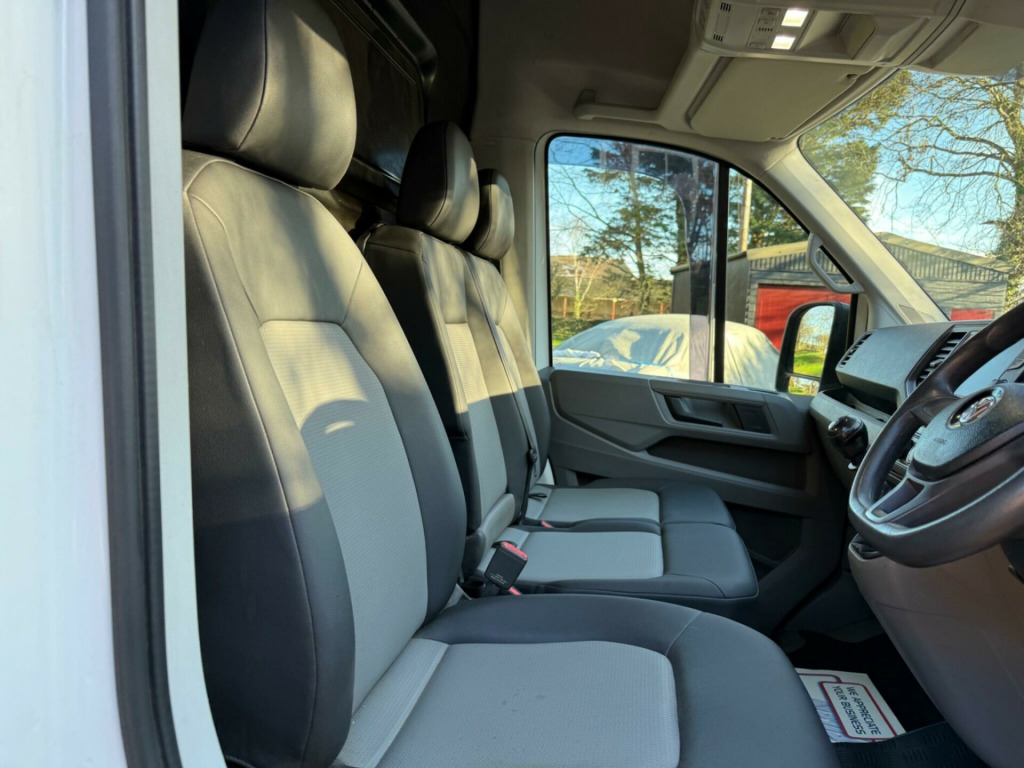Commercial and Personal Finance available. Nationwide delivery available. Viewing by appointment only please. This 2020 Volkswagen Crafter is presented with a clear vehicle history check and will come with a 12 month MOT for your peace of mind. This MWB High Roof panel van features a 2.0 litre TDI diesel engine producing 140 bhp, and is a Euro 6 compliant model. The Startline trim offers practical features including Climatic Air Conditioning, front and rear parking sensors for easier manoeuvring, and the Composition Audio system with Navigation and Bluetooth connectivity for hands free calls and music streaming. With a towing weight of 3000 kg, this Crafter is well equipped for a variety of tasks.The 140 bhp output of the 2.0 TDI engine provides a strong performance, indicating its capability compared to other vehicles in its class. This Volkswagen Crafter, with its partial service history, offers a reliable and functional solution for your business needs, combining essential comfort features with robust performance and towing capacity. in steel wheels, 1x remote control folding key - 1 rigid key, 75 litre fuel tank, abs - anti-lock braking system, airbags - driver, automatic hazard lights activation under emergency braking, automatic post-collision braking system, basic single drivers seat, composition audio, crosswind assist, driver alert system, dual passenger seat in cab with storage compartment and folding tray in backrest, eba - electronic brake assist, esp - electronic stability programme - load adjusting, electric windows - front, electromechanical servotronic steering, engine immobiliser, front assist including city emergency braking, full size steel spare wheel, glove compartment - illuminated with lockable lid, halogen main headlights with range control and daytime running function, load lashing rings, lockable fuel filler cap, manual side sliding door - passenger side, multi-function display plus, parking brake - hill hold control, rear wing doors without windows, rubber floor covering, seatbelt warning light for driver, steering wheel - reach and rake adjustable, three point inertia reel seatbelts for all seats, tool kit and jack, two 12v outlets - dashboard, windscreen wiper with variable intermittent delay and wash-wipe system, wing mirrors - manually adjustable, without floor covering in cab, without floor covering in load compartment, without rear side trim panel passenger load compartment, 12v socket in load compartment and preparation for 230v exterior outlet, rear wing doors - 270 degree hinges, side marker lights, parking sensors - front and rear, dab digital radio, climatic air conditioning