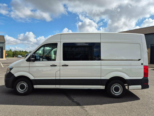 ** JUST ARRIVED, SUPERB CONDITION ** A STUNNING MWB HIGH ROOF CRAFTER TRENDLINE 140ps 6 SEAT COMBI CREW VAN IN GLEAMING WHITE WITH A GREAT SPEC, NICE MILES AND FINANCE AVAILABLE. HPi clear, Two owners, ULEZ Compliant Euro6 140ps 1968cc TDi engine and 6 speed manual gearbox and FRONT WHEEL DRIVE. Full spec includes AIR CON, CRUISE CONTROL, FRONT AND REAR PARKING SENSORS, REVERSE CAMERA, DRIVERS CAPTAIN SEAT, BLUETOOTH HANDS FREE, HEATED electric windows, TOUCHSCREEN DAB / USB / AUX / BLUETOOTH MEDIA with APP CONNECT, remote locking, multifunction steering wheel and drivers computer, REAR TRIPLE SEAT CONVERSION WITH PROFFESIONALLY LINED AND TRIMMED PASSENGER COMPARTMENT, PRIVACY GLASS EITHER SIDE WITH A FULL BULKHEAD. FULLY PLYLINED REAR LOAD AREA MEASURING 2m WITH VINYL FLOORING THROUGHOUT and SOLID REAR DOORS with a DEADLOCK. Just serviced and MOTd until AUGUST 2026 and with 6 MONTHS RAC PLATINUM WARRANTY and a YEARS FREE ROADSIDE ASSISTANCE INCLUDED. IN EXCELLENT CONDITION THROUGHOUT AND LOOKS AND DRIVES ABSOLUTELY BEAUTIFULLY. If you would like any further information or to arrange a test drive then please dont hesitate to give Andy a call. ** LICENSED CREDIT BROKER, FINANCE AND FULL DEALER FACILITIES AVAILABLE **