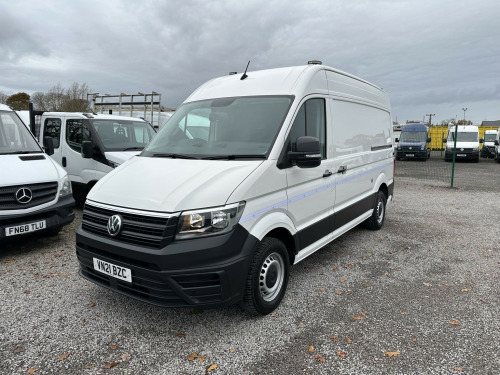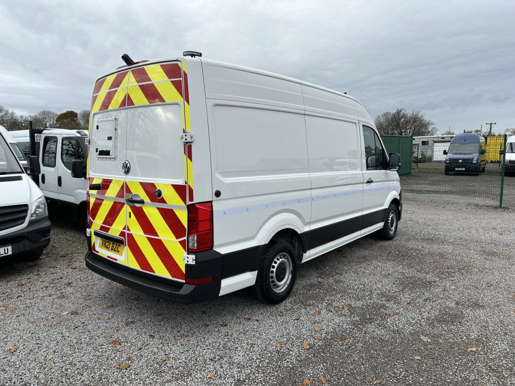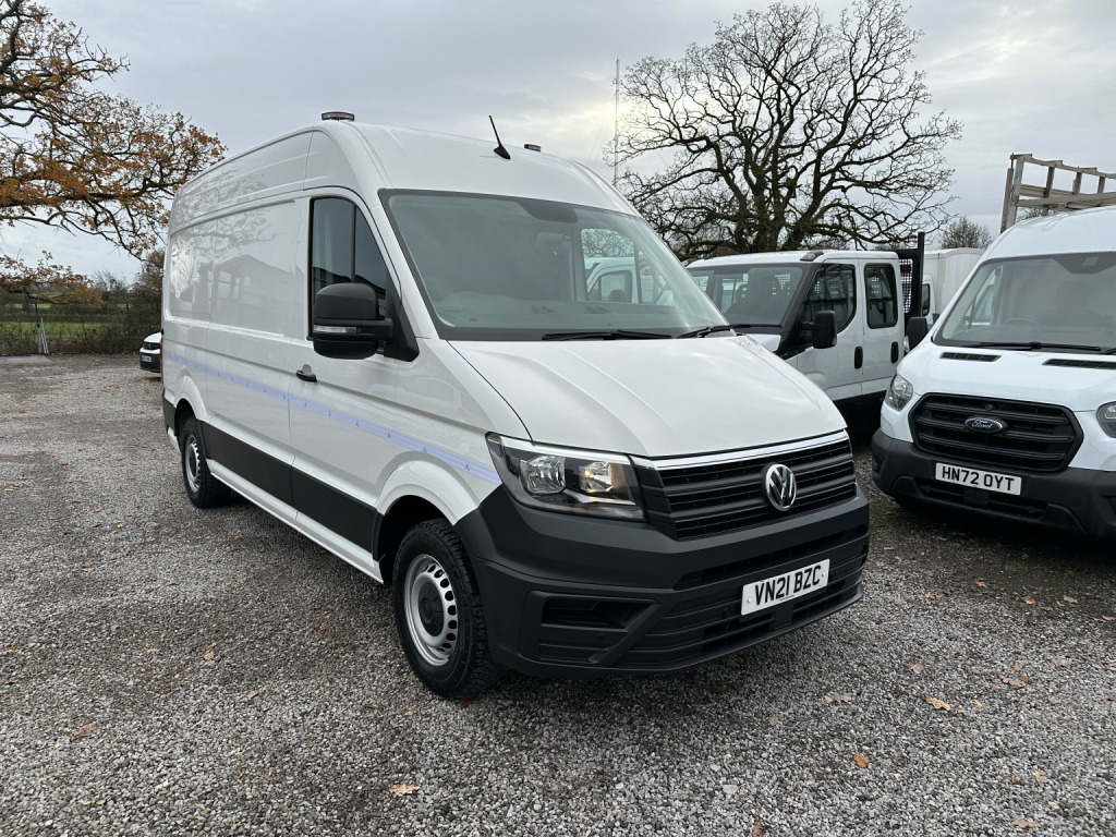 VOLKSWAGEN CRAFTER CR35 2.0TDI HIGH ROOF MWB WORKSHOP VAN 2021 21 PLATE, ONE OWNER 2 X KEYS FULL VW SERVICE HISTORY INCLUDING TIMING BELT EURO 6 6 SPEED MANUAL GEARBOX, AIR CONDITIONING CRUISE CONTROL REMOTE CENTRAL LOCKING, ELECTRIC WINDOWS, PAS, BLUETOOTH, AUX, STEREO, REAR RACKING, WORK BENCH AND SHELVING, WORK LAMPS, BEACONS, PASSENGER SIDE LOADING DOOR, REAR BARN DOORS FRONT AND REAR PARKING SENSORS FREE DELIVERY! 18495 PLUS VAT. APPOINTMENT ONLY. PLEASE CLICK TO WEBSITE FOR VIDEO.
