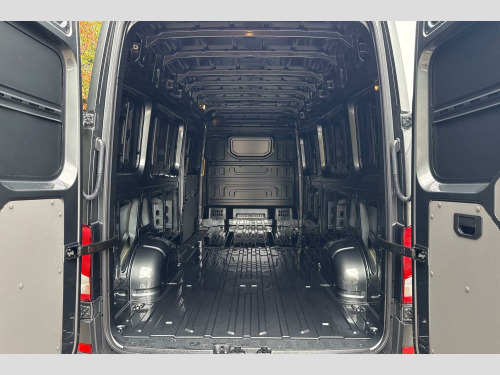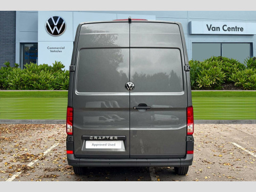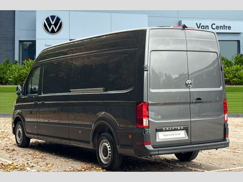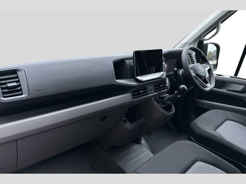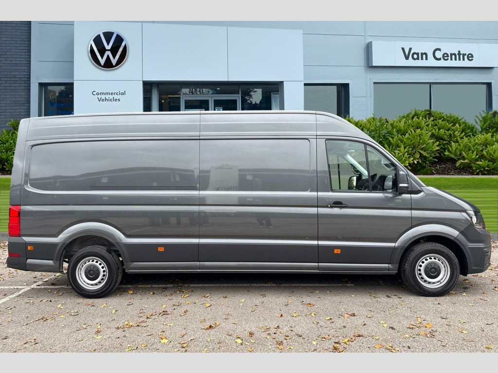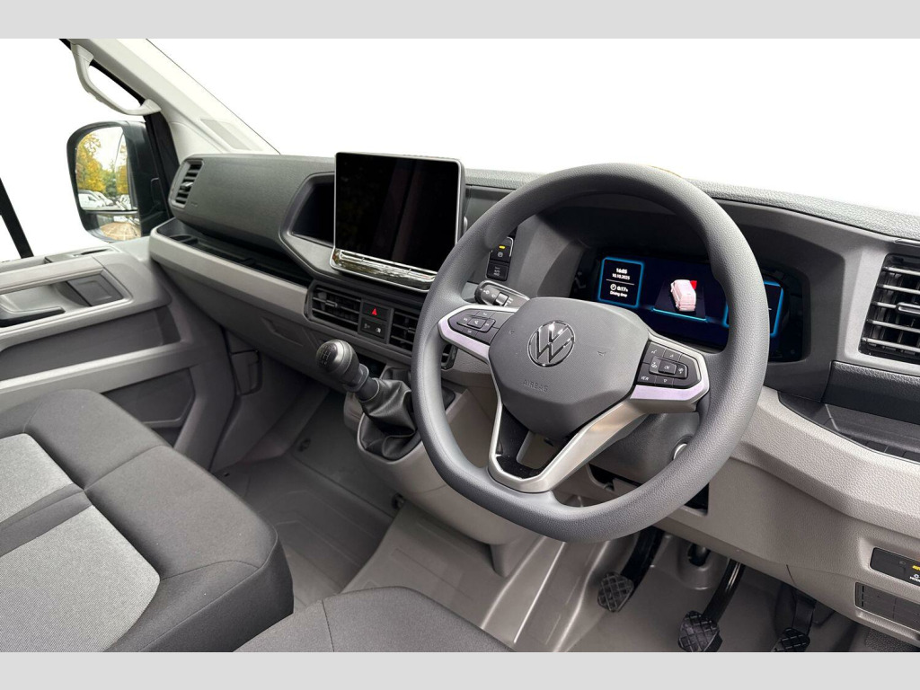 Metallic paint, Front and rear parking sensors, Metallic - Indium grey, Electric windows, Heat insulating glass, Windscreen wiper auto control with light and rain sensor, Black unpainted plastic front bumper, Rear badges, Special identification plate, Unpainted radiator grille, Auto low beam mode, Leaving home function and manual coming home function, Driver seatbelt warning light, Indicators in front door mirrors, Touch panel control for exterior lights, ABS, Automatic post collision braking system, EBA, EBD, EDL, Electronic parking brake - hill hold control, ESP, Front disc brakes, HBA, Hill start assist, Start and stop system with regenerative braking, TCS, Advanced driver attention and drowsiness monitor, Blind spot monitor, Digital cockpit with active Info display, Forward collision warning with warning and braking reaction to vehicles, pedestrians and cyclists, Front assist including city emergency braking, Convex and wide angle mirror, 3 point inertia reel belt on all seats, Automatic hazard light with emergency braking, Crosswind assist, Driver and front passenger airbag with front passenger airbag deactivation, Height adjustable seatbelts for outer cab seats, Bluetooth, E-call + We connect basic preparation, USB socket at top of windscreen, 2 USB C ports in dashboard, DAB Radio, Cab doors, Lane keeping assist, Locking fuel cap, Roof console for interior lighting control, Wireless charging, Digital clock, Dynamic road sign display, Instrument cluster, Lights on warning buzzer, Rev counter, Service indicator, Speedometer, Air recirculation system, Charcoal filter, Electronically controlled heating system, Ashtray, Centre console storage tray, CFCU preparation, Document holder on centre console, Drinks holders, Electromechanical Servotronic steering, Height and reach adjustable steering wheel, Illuminated glove compartment with lockable lid, Jack and tool kit, Preparation for interface for external use with terminal block, Storage compartments in doors and in step, right, Storage tray on dashboard, Two 12V outlets in the cab (in the dashboard), Interior light, including 2 reading lights, Interior light, switchable by door, Without rear side trim panel passenger load compartment, Non-smokers pack - Crafter, Fully adjustable suspension type driver seat, Height adjustable head restraints, 1 rigid key, Central locking system with Keyless Go without SAFELOCK entry - Keyless entry and start, Engine immobiliser, One towing eye in front, Hub cap covers