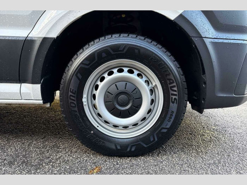 Heated windscreen washer nozzles, Solid paint, Front and rear parking sensors, Solid - Candy white, Electric windows, Heat insulating glass, Windscreen wiper auto control with light and rain sensor, Black unpainted plastic front bumper, Rear badges, Special identification plate, Unpainted radiator grille, Auto low beam mode, Leaving home function and manual coming home function, Driver seatbelt warning light, Indicators in front door mirrors, Touch panel control for exterior lights, ABS, Automatic post collision braking system, EBA, EBD, EDL, Electronic parking brake - hill hold control, ESP, Front disc brakes, HBA, Hill start assist, Start and stop system with regenerative braking, TCS, Advanced driver attention and drowsiness monitor, Blind spot monitor, Digital cockpit with active Info display, Forward collision warning with warning and braking reaction to vehicles, pedestrians and cyclists, Front assist including city emergency braking, Convex and wide angle mirror, 3 point inertia reel belt on all seats, Automatic hazard light with emergency braking, Crosswind assist, Driver and front passenger airbag with front passenger airbag deactivation, Height adjustable seatbelts for outer cab seats, Bluetooth, E-call + We connect basic preparation, USB socket at top of windscreen, 2 USB C ports in dashboard, DAB Radio, Cab doors, Lane keeping assist, Locking fuel cap, Roof console for interior lighting control, Wireless charging, Digital clock, Dynamic road sign display, Instrument cluster, Lights on warning buzzer, Rev counter, Service indicator, Speedometer, Air recirculation system, Charcoal filter, Electronically controlled heating system, Ashtray, Centre console storage tray, CFCU preparation, Document holder on centre console, Drinks holders, Electromechanical Servotronic steering, Height and reach adjustable steering wheel, Illuminated glove compartment with lockable lid, Jack and tool kit, Preparation for interface for external use with terminal block, Storage compartments in doors and in step, right, Storage tray on dashboard, Two 12V outlets in the cab (in the dashboard), Interior light, including 2 reading lights, Interior light, switchable by door, Without rear side trim panel passenger load compartment, Non-smokers pack - Crafter, Fully adjustable suspension type driver seat, Height adjustable head restraints, 1 rigid key, Central locking system with Keyless Go without SAFELOCK entry - Keyless entry and start, Engine immobiliser, One towing eye in front, Hub cap covers
