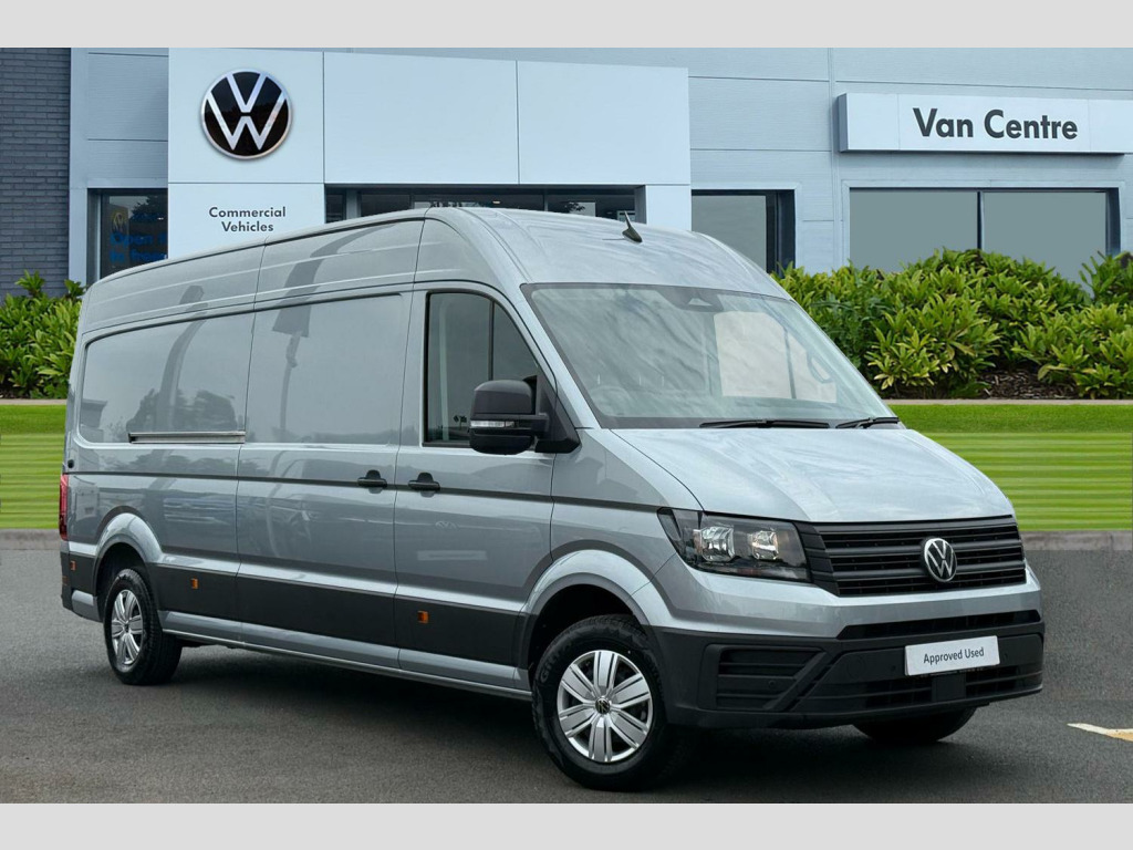 Oyster Silver-Metallic Paint, High roof in body colour, Twin sliding side load doors, Rear wing doors with 270° hinges, Full width rear step in rear bumper including Side marker lamps, Parking sensors front + rear, Rear view camera, Heavy duty front axle, Front assist including city emergency braking, Driver's side sliding door, Rear wing doors with 270° hinges, Multi-function steering wheel, Lights & Vision Pack-Auto Lights & Wipers, Climatic cab Air Conditioning, Overhead storage compartment accessible from load compartment, LED lighting in load area, Ply lining-Available upon request, Heavy duty wooden load area flooring, Metallic - Oyster Silver, Austin cloth - Titanium black with upper and lower dashboard in titanium black/palladium and pearl grey floor covering, 16" Black steel wheels, Full wheel trim covers, Full size steel spare wheel, The UK's largest VW Approved Used Van Centre's, Part of the Swansway group-one of the largest and leading official VW Van Centre groups with access to 700+ used VW Commercial Vehicles, We stock one of the largest range of new and used VW Commercial Vehicles, We have a dedicated used sales team to assist with all aspects of your enquiry, We offer a 14 day exchange your vehicle policy if you're not completely satisfied, We offer a full HD personalised video walk around-just call a member of the team on 0121 260 3000, Reserve today with just a fully refundable £500 reservation, Electric windows, Heat insulating glass, Half painted front bumper, Special identification plate, Unpainted radiator grille, Auto low beam mode, Leaving home function and manual coming home function, Driver seatbelt warning light, Indicators in front door mirrors, ABS, Automatic post collision braking system, EBA, EBD, EDL, ESP, Front disc brakes, HBA, Hill start assist, Parking brake - hill hold control, Start and stop system with regenerative braking, TCS, Convex and wide angle mirror, Electrically heated and adjustable door mirrors, 3 point inertia reel belt on all seats, Automatic hazard light with emergency braking, Crosswind assist, Driver and front passenger airbag with front passenger airbag deactivation, Height adjustable seatbelts for outer cab seats, Bluetooth, E-call + We connect basic preparation, Voice control system, Composition media with 6.5" with we connect plus prep, 4 speaker, multifun display plus, USB, mob interface, app con, "We connect function", DAB Radio, Cab doors, Rear wing doors with 270 degree hinges, Driver alert system, Locking fuel cap, Digital clock, Instrument cluster, Lights on warning buzzer, Multi-function Display Plus, Rev counter, Service indicator, Speedometer, Air recirculation system, Charcoal filter, Climatic air conditioning, Electronically controlled heating system, Ashtray, Centre console storage tray, CFCU preparation, Document holder on centre console, Drinks holders, Electromechanical Servotronic steering, Grab handles on rear entry pillars, Height and reach adjustable steering wheel, Illuminated glove compartment with lockable lid, Jack and tool kit, Preparation for interface for external use with terminal block, Storage compartments in doors and in step, right, Storage tray on dashboard, Two 12V outlets in the cab (in the dashboard), Interior light, including 2 reading lights, Interior light, switchable by door, Without rear side trim panel passenger load compartment, Non-smokers pack - Crafter, Fully adjustable suspension type driver seat, Height adjustable head restraints, 1 rigid key, Anti-theft alarm with interior monitor, back up horn and tow away protect, overhead storage with two 1-DIN, reading light, SAFELOCK with 2 remote keys, Engine immobiliser, One towing eye in front, Hub cap covers