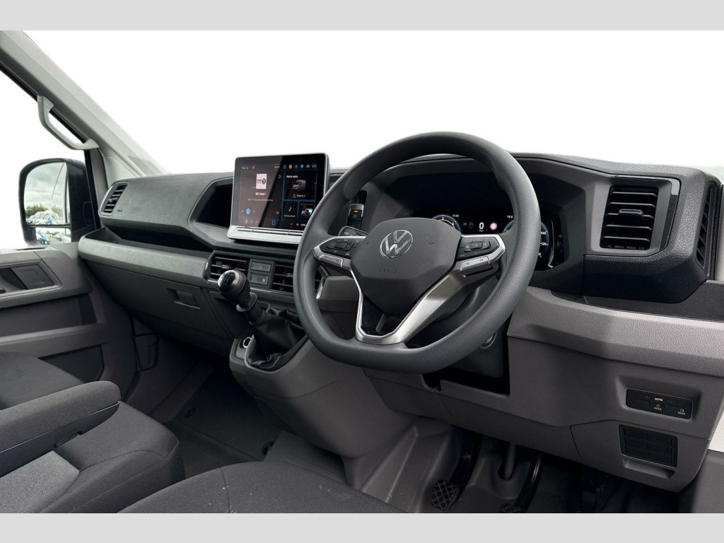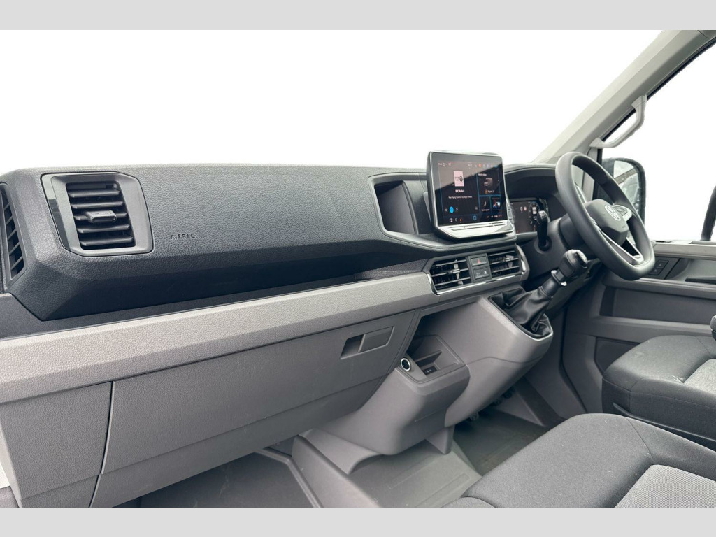The impressive cargo volume of 14,400 litres makes this Crafter ideal for a variety of commercial needs. Its substantial 3000 kg towing weight further enhances its versatility. These highlights demonstrate how this particular Crafter offers superior capability and practicality compared to other vehicles in its class, making it an excellent choice for businesses seeking reliability and efficiency. Rear view camera, Full size steel spare wheel, Electric windows, Heat insulating glass, Half painted front bumper, Special identification plate, Unpainted radiator grille, Auto low beam mode, Leaving home function and manual coming home function, Driver seatbelt warning light, Indicators in front door mirrors, ABS, Automatic post collision braking system, EBA, EBD, EDL, ESP, Front disc brakes, HBA, Hill start assist, Parking brake - hill hold control, Start and stop system with regenerative braking, TCS, Convex and wide angle mirror, Electrically heated and adjustable door mirrors, 3 point inertia reel belt on all seats, Automatic hazard light with emergency braking, Crosswind assist, Driver and front passenger airbag with front passenger airbag deactivation, Height adjustable seatbelts for outer cab seats, Bluetooth, E-call + We connect basic preparation, Voice control system, Composition media with 6.5" with we connect plus prep, 4 speaker, multifun display plus, USB, mob interface, app con, "We connect function", DAB Radio, Cab doors, Rear wing doors with 270 degree hinges, Driver alert system, Locking fuel cap, Digital clock, Instrument cluster, Lights on warning buzzer, Multi-function Display Plus, Rev counter, Service indicator, Speedometer, Air recirculation system, Charcoal filter, Climatic air conditioning, Electronically controlled heating system, Ashtray, Centre console storage tray, CFCU preparation, Document holder on centre console, Drinks holders, Electromechanical Servotronic steering, Grab handles on rear entry pillars, Height and reach adjustable steering wheel, Illuminated glove compartment with lockable lid, Jack and tool kit, Preparation for interface for external use with terminal block, Storage compartments in doors and in step, right, Storage tray on dashboard, Two 12V outlets in the cab (in the dashboard), Interior light, including 2 reading lights, Interior light, switchable by door, Without rear side trim panel passenger load compartment, Non-smokers pack - Crafter, Fully adjustable suspension type driver seat, Height adjustable head restraints, 1 rigid key, Anti-theft alarm with interior monitor, back up horn and tow away protect, overhead storage with two 1-DIN, reading light, SAFELOCK with 2 remote keys, Engine immobiliser, One towing eye in front, Hub cap covers