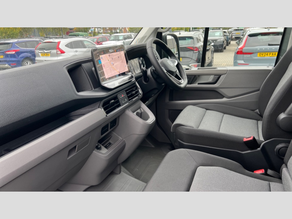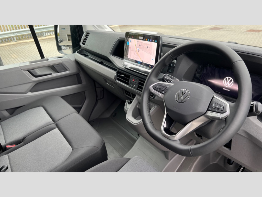 Volkswagen Crafter 2.0 TDI 177PS Commerce Plus Low Roof Van Auto Advanced driver attention and drowsiness monitor, Blind spot monitor, Bluetooth, Digital clock, Digital cockpit with active Info display, Dynamic road sign display, E-call + We connect basic preparation, Forward collision warning with warning and braking reaction to vehicles, pedestrians and cyclists, Front assist including city emergency braking, Instrument cluster, Lights on warning buzzer, Locking fuel cap, Rev counter, Roof console for interior lighting control, Service indicator, Speedometer, USB socket at top of windscreen, Wireless charging, 2 USB C ports in dashboard, DAB Radio, Auto low beam mode, Leaving home function and manual coming home function, Cab doors, Convex and wide angle mirror, Driver seatbelt warning light, Electric windows, Half painted front bumper, Heat insulating glass, Indicators in front door mirrors, One towing eye in front, Rear badges, Rear wing doors with 270 degree hinges, Special identification plate, Touch panel control for exterior lights, Unpainted radiator grille, Windscreen wiper auto control with light and rain sensor, Air recirculation system, Ashtray, Centre console storage tray, CFCU preparation, Charcoal filter, Climatic air conditioning, Document holder on centre console, Drinks holders, Electromechanical Servotronic steering, Electronically controlled heating system, Fully adjustable suspension type driver seat, Grab handles on rear entry pillars, Height adjustable head restraints, Height and reach adjustable steering wheel, Illuminated glove compartment with lockable lid, Interior light, including 2 reading lights, Interior light, switchable by door, Jack and tool kit, Preparation for interface for external use with terminal block, Storage compartments in doors and in step, right, Storage tray on dashboard, Two 12V outlets in the cab (in the dashboard), Without rear side trim panel passenger load compartment, Non-smokers pack - Crafter, 3 point inertia reel belt on all seats, Automatic hazard light with emergency braking, Crosswind assist, Driver and front passenger airbag with front passenger airbag deactivation, Height adjustable seatbelts for outer cab seats, 1 rigid key, Anti-theft alarm with interior monitor, back up horn and tow away protect, overhead storage with two 1-DIN, reading light, SAFELOCK with 2 remote keys, Central locking system with Keyless Go without SAFELOCK entry - Keyless entry and start, Engine immobiliser, ABS, Automatic post collision braking system, EBA, EBD, EDL, Electronic parking brake - hill hold control, ESP, Fly-by-wire automatic gear box shifter, Front disc brakes, HBA, Hill start assist, Start and stop system with regenerative braking, TCS, Hub cap covers