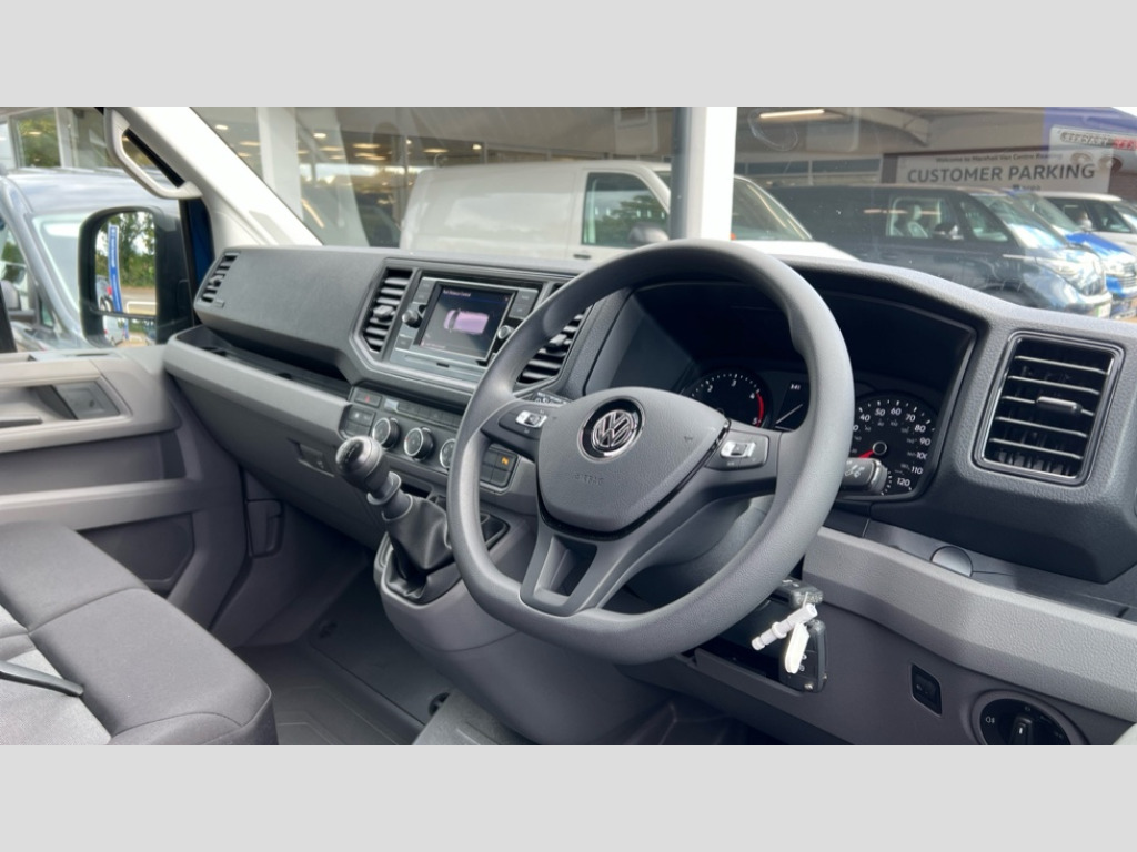 Volkswagen Crafter 2.0 TDI 140PS Commerce High Roof Van Bluetooth, Digital clock, Driver alert system, E-call + We connect basic preparation, Front and rear parking sensors, Instrument cluster, Lane keeping assist, Lights on warning buzzer, Locking fuel cap, Multi-function Display Plus, Rev counter, Service indicator, Speedometer, Voice control system, Composition media with 6.5" with we connect plus prep, 4 speaker, multifun display plus, USB, mob interface, app con, "We connect function", DAB Radio, Auto low beam mode, Leaving home function and manual coming home function, Black unpainted plastic front bumper, Cab doors, Convex and wide angle mirror, Driver seatbelt warning light, Electric windows, Heat insulating glass, Indicators in front door mirrors, Manually adjustable door mirrors, One towing eye in front, Special identification plate, Unpainted radiator grille, Air recirculation system, Ashtray, Centre console storage tray, CFCU preparation, Charcoal filter, Document holder on centre console, Drinks holders, Electromechanical Servotronic steering, Electronically controlled heating system, Fully adjustable suspension type driver seat, Height adjustable head restraints, Height and reach adjustable steering wheel, Illuminated glove compartment with lockable lid, Interior light, including 2 reading lights, Interior light, switchable by door, Jack and tool kit, Multifunction steering wheel, Preparation for interface for external use with terminal block, Storage compartments in doors and in step, right, Storage tray on dashboard, Two 12V outlets in the cab (in the dashboard), Without rear side trim panel passenger load compartment, Non-smokers pack - Crafter, 3 point inertia reel belt on all seats, Automatic hazard light with emergency braking, Crosswind assist, Driver and front passenger airbag with front passenger airbag deactivation, Height adjustable seatbelts for outer cab seats, 1 rigid key, Engine immobiliser, ABS, Automatic post collision braking system, EBA, EBD, EDL, ESP, Front disc brakes, HBA, Hill start assist, Parking brake - hill hold control, Start and stop system with regenerative braking, TCS, Hub cap covers
