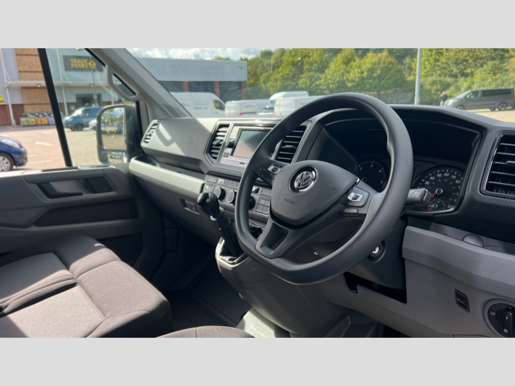 Volkswagen Crafter 2.0 TDI 140PS Trendline High Roof Van Digital clock, Driver alert system, Instrument cluster, Lights on warning buzzer, Locking fuel cap, Rev counter, Service indicator, Speedometer, Body colour roof, Cab doors, Convex and wide angle mirror, Driver seatbelt warning light, Electric windows, Heat insulating glass, Indicators in front door mirrors, Integral step in front bumper, One towing eye in front, Rear wing doors with 270 degree hinges, Special identification plate, Unpainted radiator grille, Air recirculation system, Ashtray, Centre console storage tray, CFCU preparation, Charcoal filter, Document holder on centre console, Drinks holders, Electromechanical Servotronic steering, Electronically controlled heating system, Fully adjustable suspension type driver seat, Grab handles on rear entry pillars, Height adjustable head restraints, Height and reach adjustable steering wheel, Illuminated glove compartment with lockable lid, Interior light, including 2 reading lights, Interior light, switchable by door, Jack and tool kit, Preparation for interface for external use with terminal block, Storage compartments in doors and in step, right, Storage tray on dashboard, Two 12V outlets in the cab (in the dashboard), Without rear side trim panel passenger load compartment, Non-smokers pack - Crafter, 3 point inertia reel belt on all seats, Automatic hazard light with emergency braking, Crosswind assist, Height adjustable seatbelts for outer cab seats, 1 rigid key, Engine immobiliser, ABS, Automatic post collision braking system, EBA, EBD, EDL, ESP, Front disc brakes, HBA, Hill start assist, Parking brake - hill hold control, Start and stop system with regenerative braking, TCS, Hub cap covers