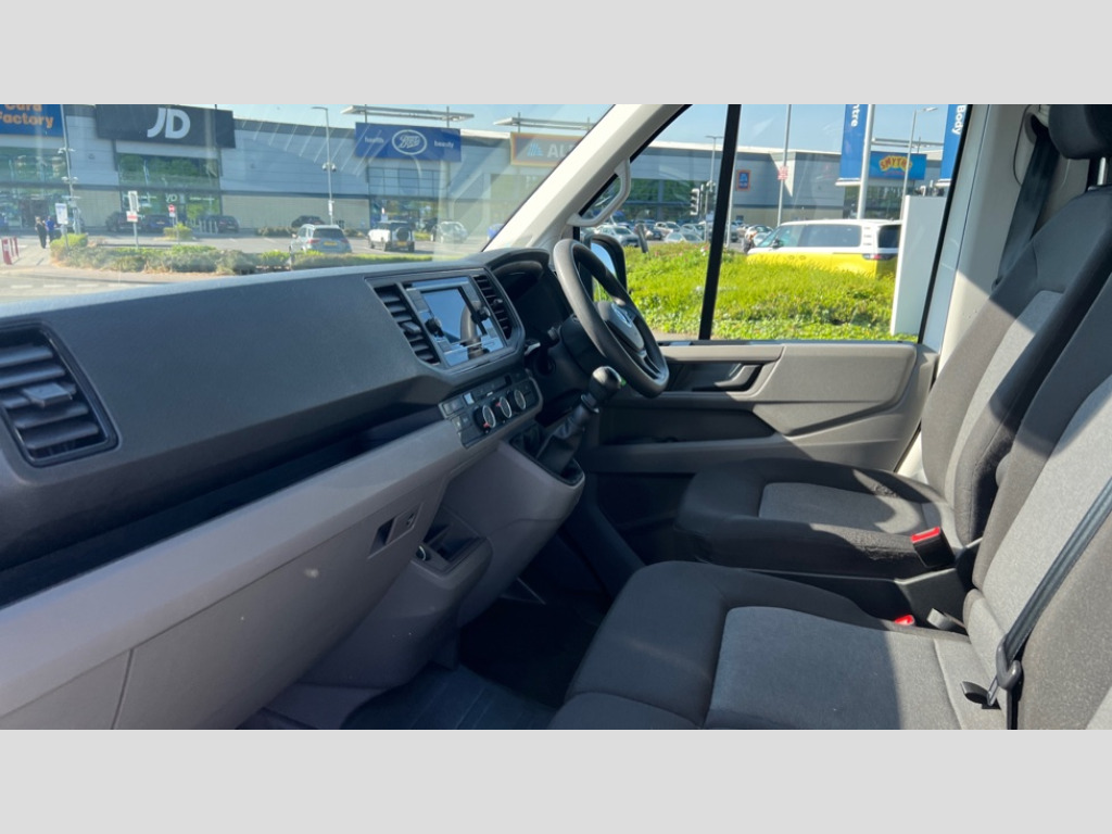 Volkswagen Crafter 2.0 TDI 140PS Trendline High Roof Van Digital clock, Driver alert system, Instrument cluster, Lights on warning buzzer, Locking fuel cap, Rev counter, Service indicator, Speedometer, DAB Radio, Body colour roof, Cab doors, Convex and wide angle mirror, Driver seatbelt warning light, Electric windows, Heat insulating glass, Indicators in front door mirrors, Integral step in front bumper, One towing eye in front, Rear wing doors with 270 degree hinges, Special identification plate, Unpainted radiator grille, Air recirculation system, Ashtray, Centre console storage tray, CFCU preparation, Charcoal filter, Document holder on centre console, Drinks holders, Electromechanical Servotronic steering, Electronically controlled heating system, Fully adjustable suspension type driver seat, Grab handles on rear entry pillars, Height adjustable head restraints, Height and reach adjustable steering wheel, Illuminated glove compartment with lockable lid, Interior light, including 2 reading lights, Interior light, switchable by door, Jack and tool kit, Preparation for interface for external use with terminal block, Storage compartments in doors and in step, right, Storage tray on dashboard, Two 12V outlets in the cab (in the dashboard), Without rear side trim panel passenger load compartment, Non-smokers pack - Crafter, 3 point inertia reel belt on all seats, Automatic hazard light with emergency braking, Crosswind assist, Height adjustable seatbelts for outer cab seats, 1 rigid key, Engine immobiliser, ABS, Automatic post collision braking system, EBA, EBD, EDL, ESP, Front disc brakes, HBA, Hill start assist, Parking brake - hill hold control, Start and stop system with regenerative braking, TCS, Hub cap covers