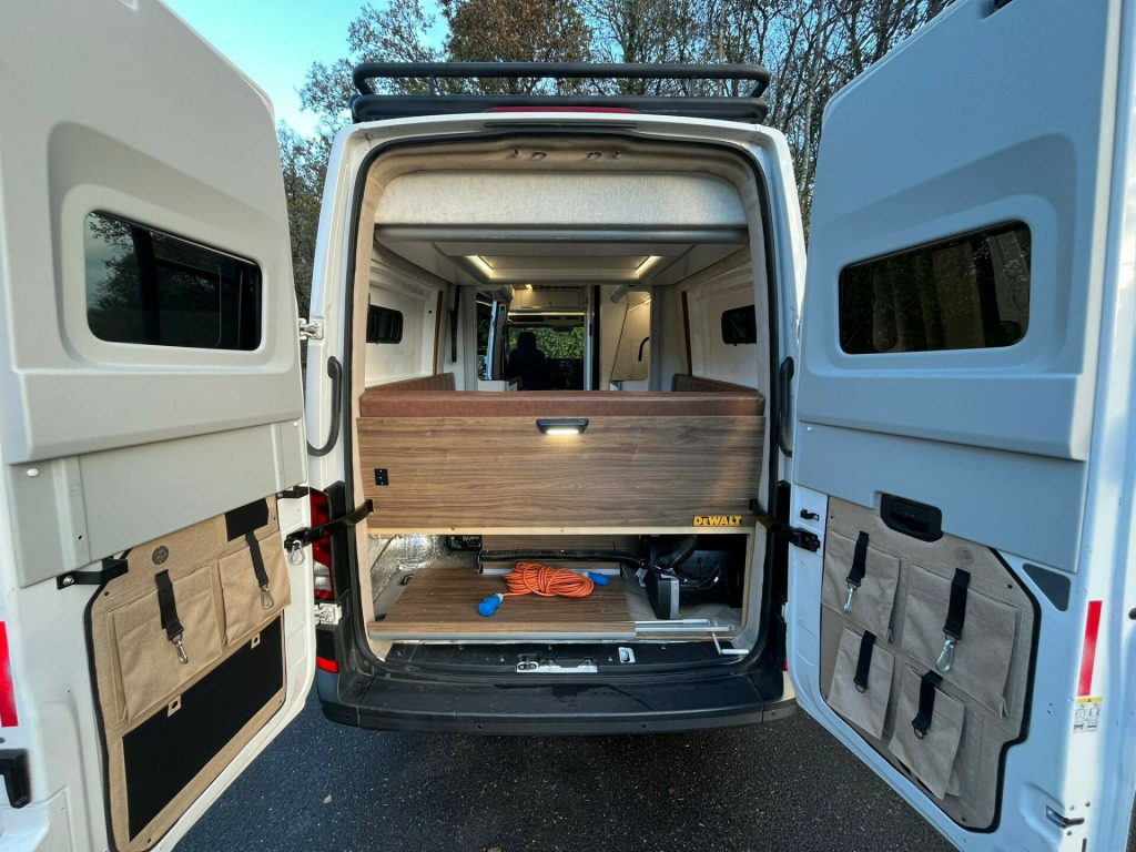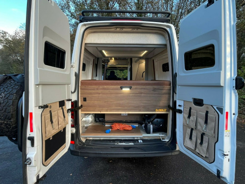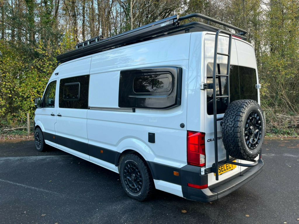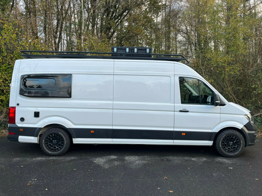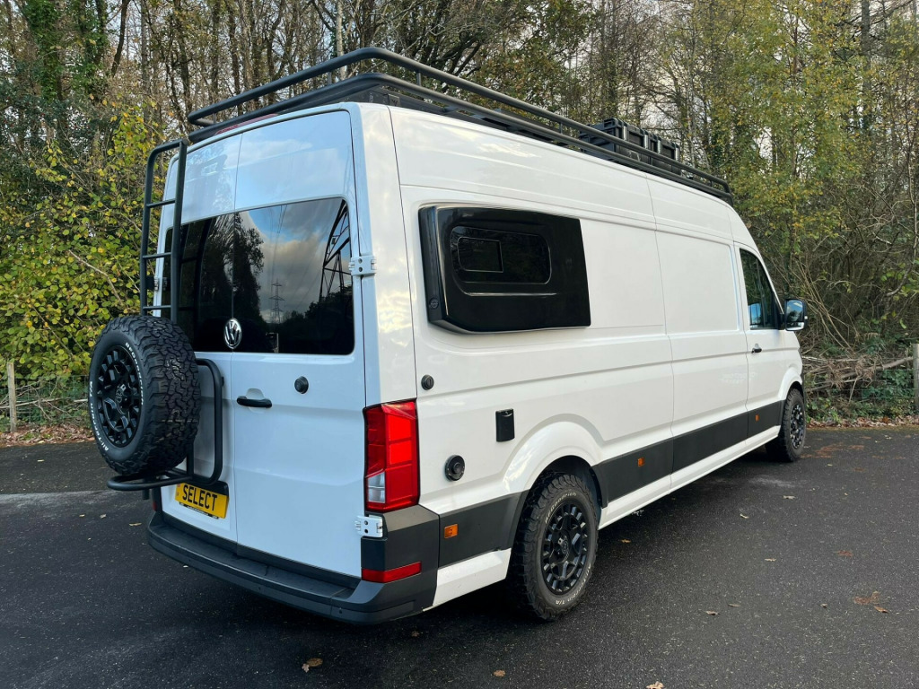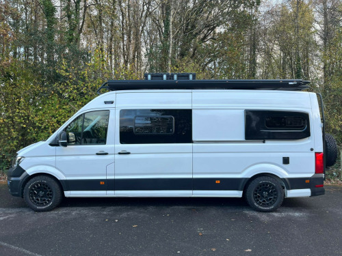 This stunning 2021 VW Crafter CR35 Trendline LWB is the ultimate modern off-grid campervan, engineered for adventure and designed to outperform anything in its class. With just 42,676 miles, Euro 6 efficiency, and a fully gasless power system, it delivers next-level capability wherever you roam. A powerful lithium battery, 4kW inverter, and a huge 600W solar array run everything effortlessly from the air fryer oven and induction hob to the electric drop-down bed, TRUMA diesel combi boiler, and underfloor heating. This is true freedom: silent, clean, reliable, and ready for year-round travel.Outside, the Crafter looks every bit the adventure machine it is, with BFGoodrich All-Terrain tyres, a custom roof rack with extra storage, and a full spare wheel mounted on the rear door. The massive 180L fresh water tank means longer stays off-grid, while the LWB layout provides a spacious, premium interior that feels more boutique apartment than campervan. Whether you're chasing mountain trails, coastal sunsets, or extended remote trips, this Crafter is fully equipped, meticulously built, and waiting for a new owner ready to explore without limits. eering wheel rake adjustment, traction control, abs, air bag, central locking, electric windows, radio, steering wheel audio controls, television, front head restraints, colour coded body, electric hook up, long wheel base, sink, 240v hookup, alloy wheels, avtex tv and soundbar, barn doors, cab air conditioning, compressor fridge, cruise control, diesel heating, electric drop down bed, hot and cold water, induction hob, lithium leisure battery, maxifan, off road tyres, onboard water tank, parking sensors, roof rack, spare wheel, steering wheel with radio control, swivel captain chairs, toilet & shower, truma diesel central heating, u-shaped lounge, 4000w inverter, victron electric set up, composting toilet, air fryer oven, 600w solar panel set up, completely gasless, under floor heating, 180l fresh water tank, 90l waste tank, off grid victron set up, 5x black ryno wheels with bfg all terrain tyres