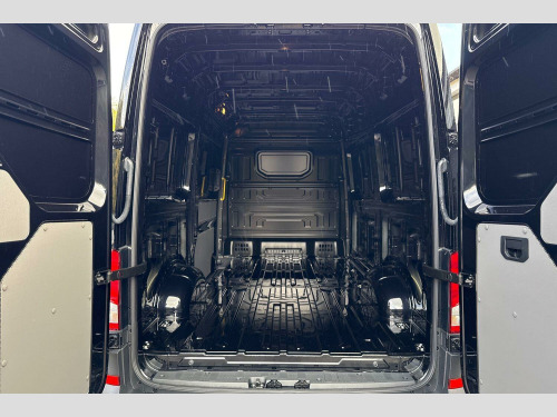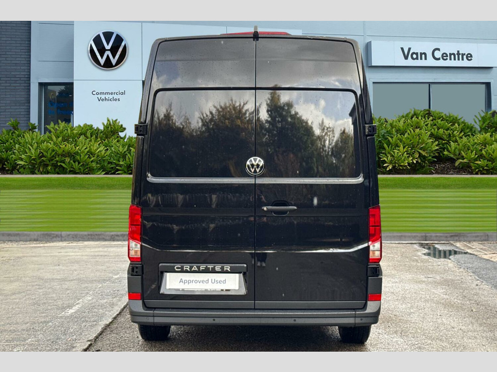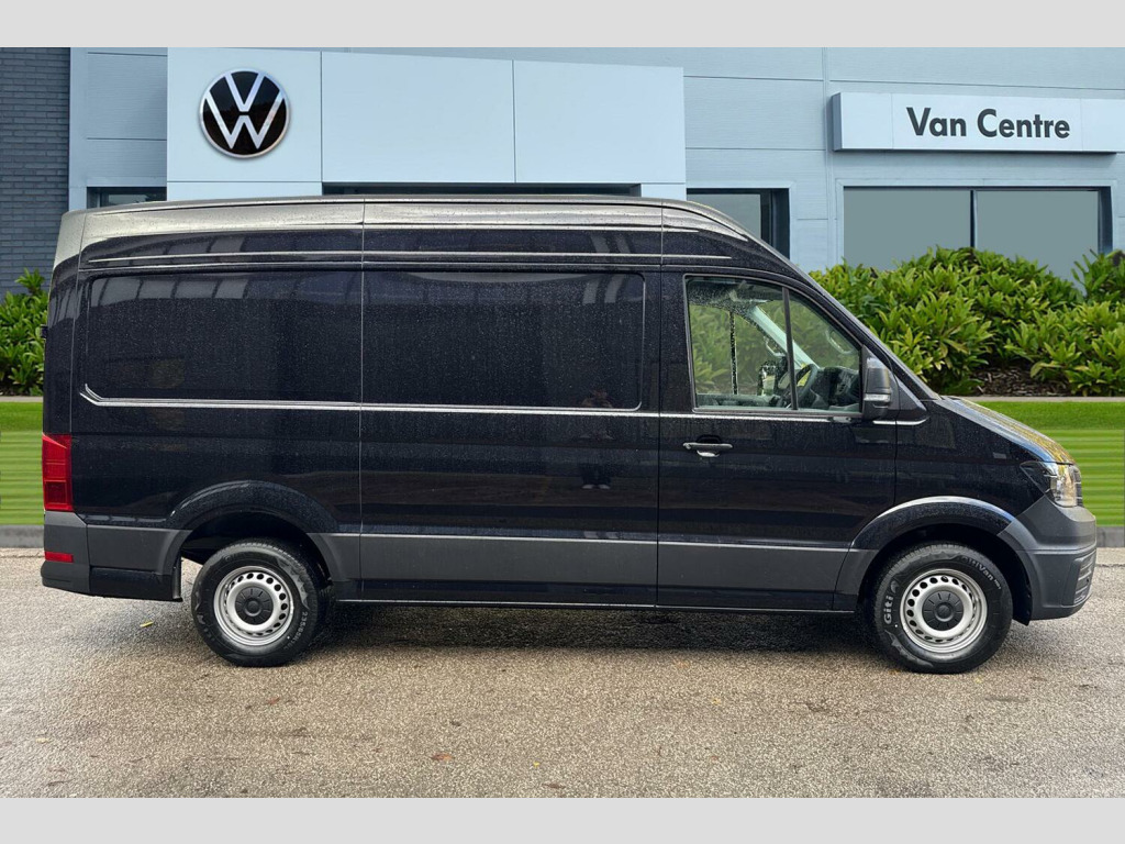 Pearl - Deep black, Electric windows, Heat insulating glass, Black unpainted plastic front bumper, Special identification plate, Unpainted radiator grille, Auto low beam mode, Leaving home function and manual coming home function, Driver seatbelt warning light, Indicators in front door mirrors, ABS, Automatic post collision braking system, EBA, EBD, EDL, ESP, Front disc brakes, HBA, Hill start assist, Parking brake - hill hold control, Start and stop system with regenerative braking, TCS, Convex and wide angle mirror, Manually adjustable door mirrors, 3 point inertia reel belt on all seats, Automatic hazard light with emergency braking, Crosswind assist, Driver and front passenger airbag with front passenger airbag deactivation, Height adjustable seatbelts for outer cab seats, Bluetooth, E-call + We connect basic preparation, Voice control system, Composition media with 6.5" with we connect plus prep, 4 speaker, multifun display plus, USB, mob interface, app con, "We connect function", DAB Radio, Cab doors, Driver alert system, Front and rear parking sensors, Lane keeping assist, Locking fuel cap, Digital clock, Instrument cluster, Lights on warning buzzer, Multi-function Display Plus, Rev counter, Service indicator, Speedometer, Air recirculation system, Charcoal filter, Electronically controlled heating system, Ashtray, Centre console storage tray, CFCU preparation, Document holder on centre console, Drinks holders, Electromechanical Servotronic steering, Height and reach adjustable steering wheel, Illuminated glove compartment with lockable lid, Jack and tool kit, Multifunction steering wheel, Preparation for interface for external use with terminal block, Storage compartments in doors and in step, right, Storage tray on dashboard, Two 12V outlets in the cab (in the dashboard), Interior light, including 2 reading lights, Interior light, switchable by door, Without rear side trim panel passenger load compartment, Non-smokers pack - Crafter, Fully adjustable suspension type driver seat, Height adjustable head restraints, 1 rigid key, Engine immobiliser, One towing eye in front, Hub cap covers