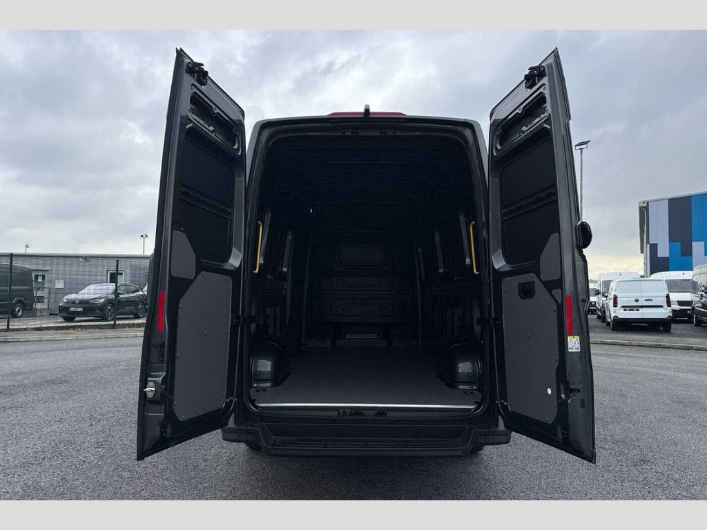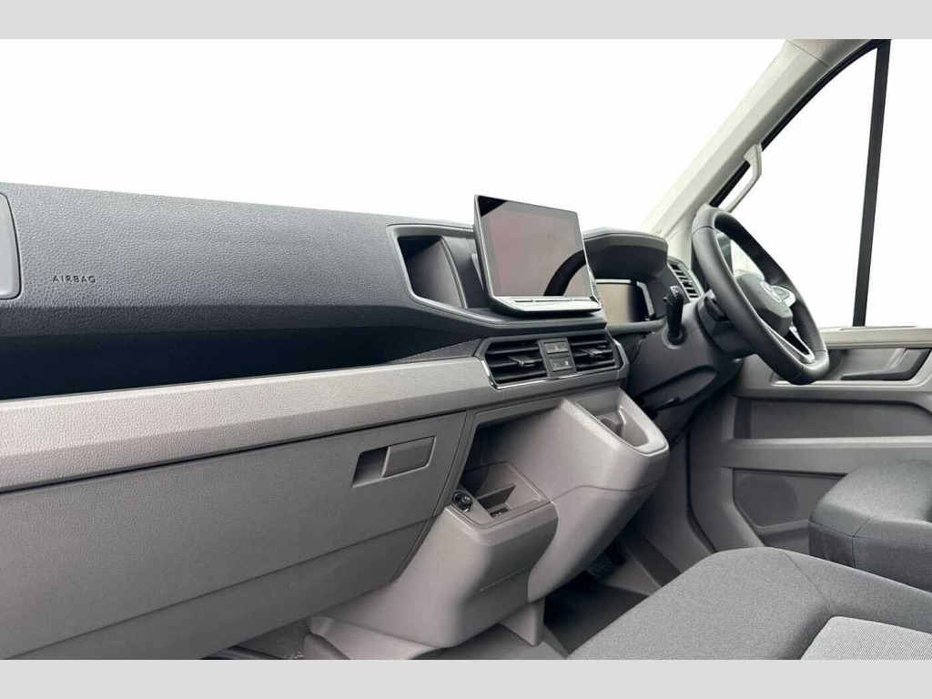 Indium Grey Metallic Paint, Rear-view camera system, LED headlights with seperate LED daytime running lights, Heated driver and front passenger seats, Heated windscreen, Light And Vision Pack B, Windshield wiper intermittent control with light/rain sensor, Seperate daytime running light with auto headlight control and auto Coming and Leaving Home feature, Rear step in rear bumper full, Wing mirrors: electrically heated and adjustable, Front axle - heavy duty (CR35 2.100kg), Anti-theft alarm system - with interior monitoring, backup horn and tow-away protection, Electronic cruise control system, Speed limiter and predictive speed limiter, Wired & Wireless App-Connect, Comfort single driver's seat, 10.4 inch infotainment system, Digital Dash, Electric windows, Body colour roof, Integral step in front bumper, Driver seatbelt warning light, Indicators in front door mirrors, ABS, Automatic post collision braking system, EBA, EBD, EDL, ESP, HBA, Parking brake - hill hold control, TCS, Cruise control with speed limiter, Front assist including city emergency braking, 3 point inertia reel belt on all seats, Automatic hazard light with emergency braking, Crosswind assist, Height adjustable seatbelts for outer cab seats, Driver alert system, Locking fuel cap, Lights on warning buzzer, Rev counter, Service indicator, Air recirculation system, Charcoal filter, Ashtray, Centre console storage tray, CFCU preparation, Document holder on centre console, Drinks holders, Electromechanical Servotronic steering, Grab handles on rear entry pillars, Height and reach adjustable steering wheel, Illuminated glove compartment with lockable lid, Storage compartments in doors and in step, right, Storage tray on dashboard, Two 12V outlets in the cab (in the dashboard), Interior light, including 2 reading lights, Interior light, switchable by door, Without rear side trim panel passenger load compartment, Fully adjustable suspension type driver seat, Height adjustable head restraints, 1 rigid key, Engine immobiliser, Remote central/dead locking